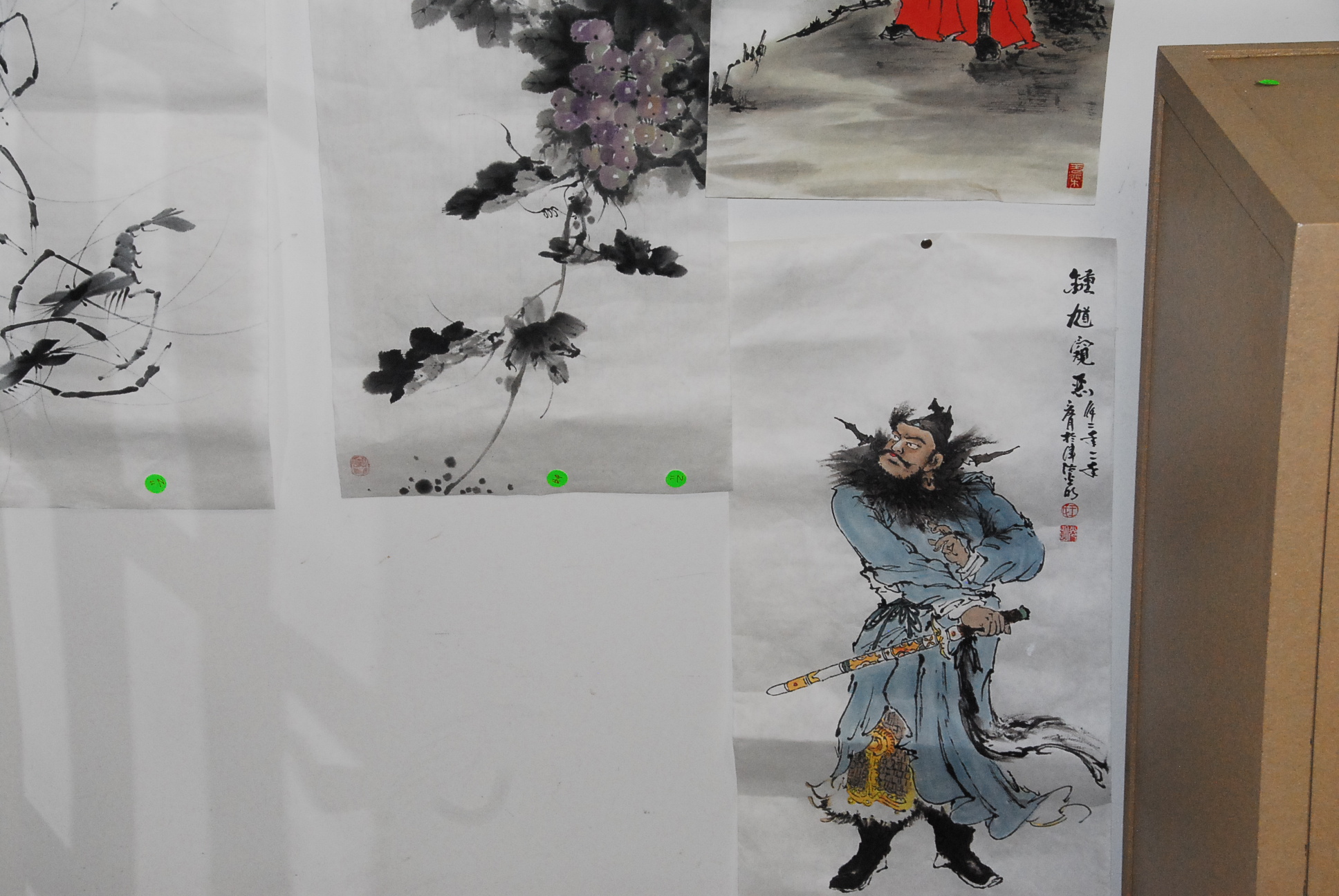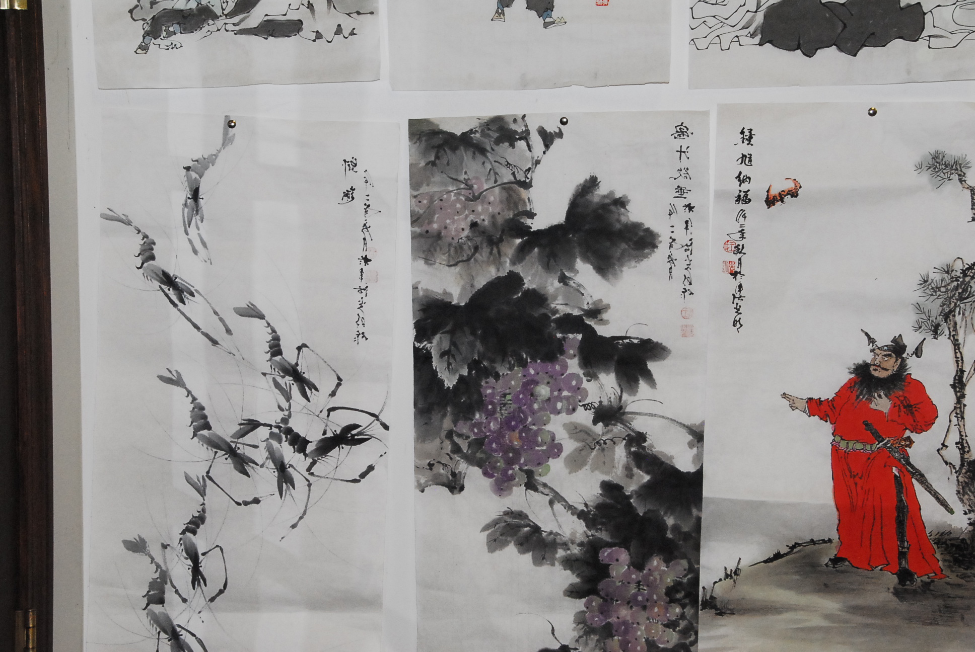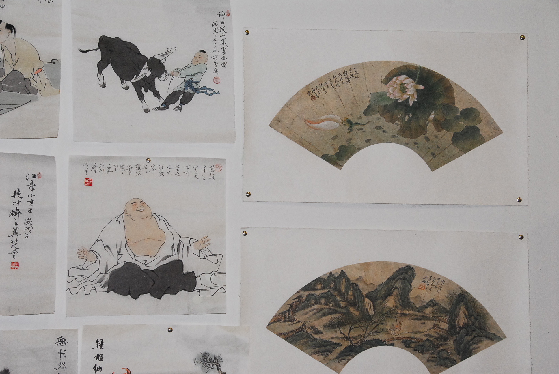 Lot 479: Group of twelve watercolors ten are watercolors on tissue paper of various sizes and two are watercolors fans mounted on paper.