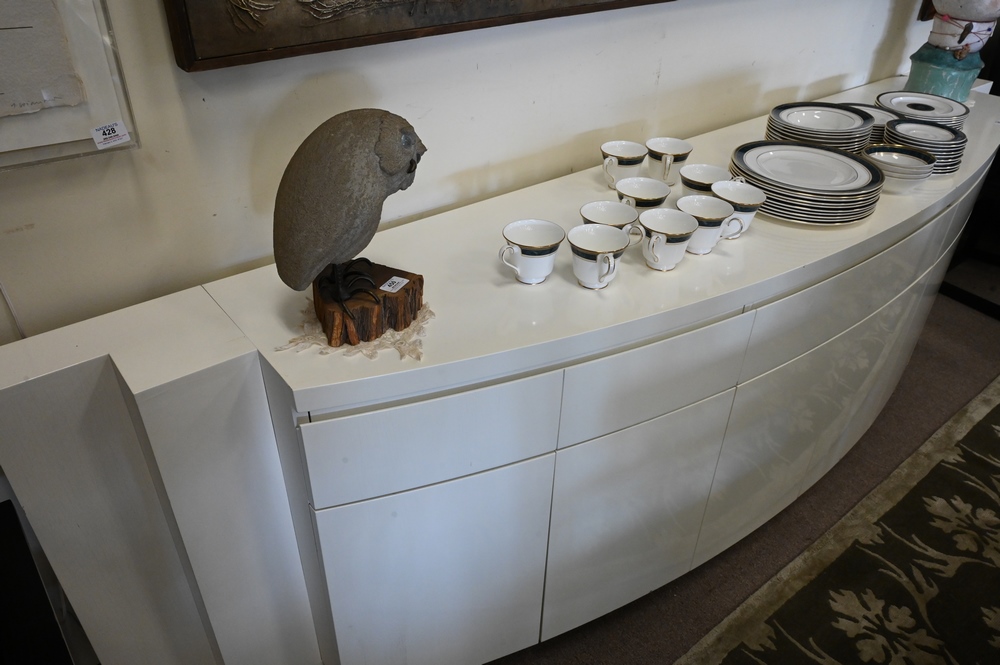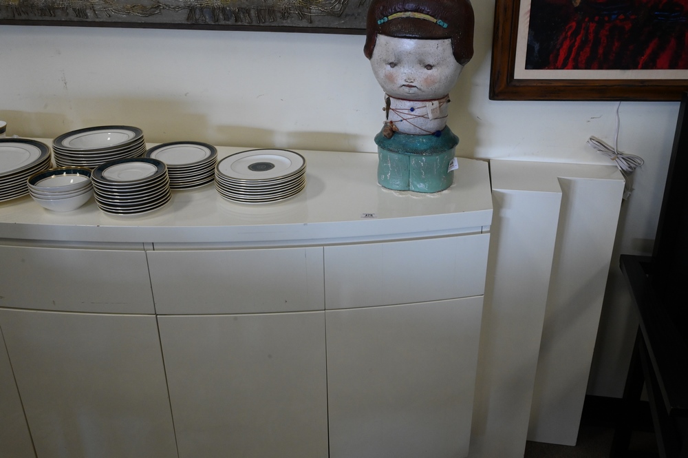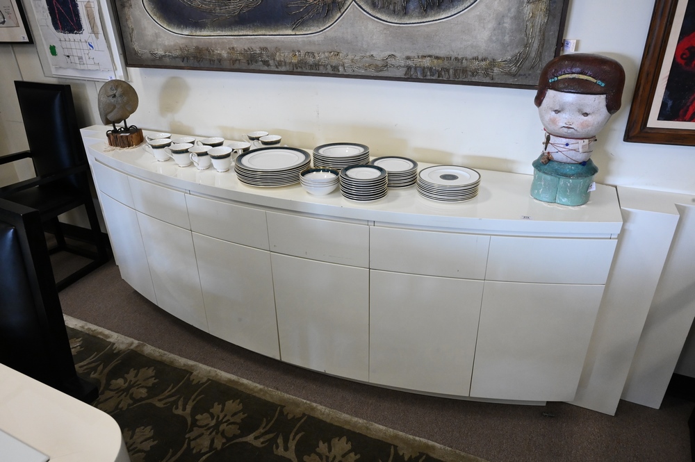 Lot 479: Large Contemporary Custom Ivory Lacquered Sideboard, having three drawers over six doors, similar to Enrique – Garcel, height 32 inches, length 108 inches.