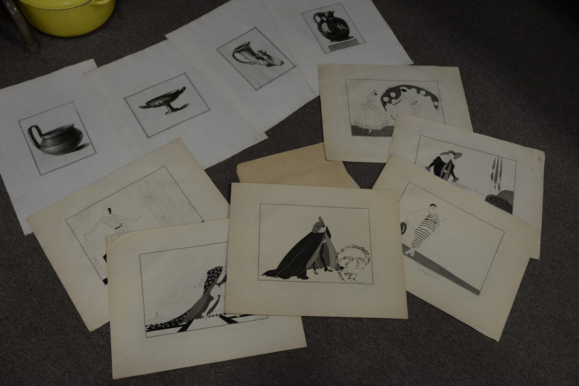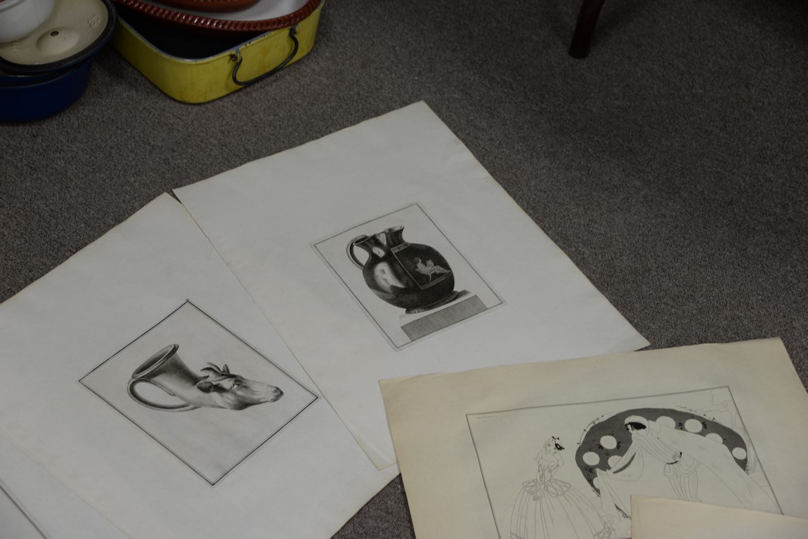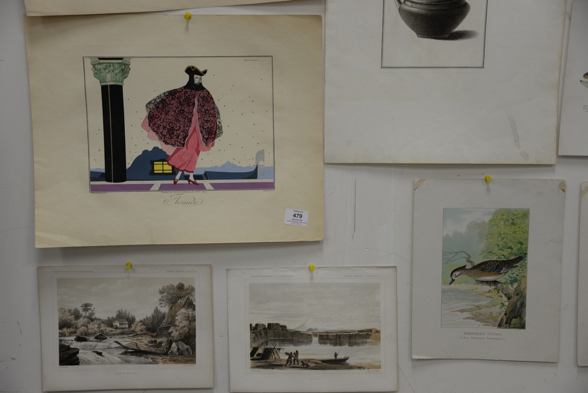 Lot 479: Large grouping of 86 engravings, prints, and watercolors to include a group of six engravings of vessels, group of ten colored surve…