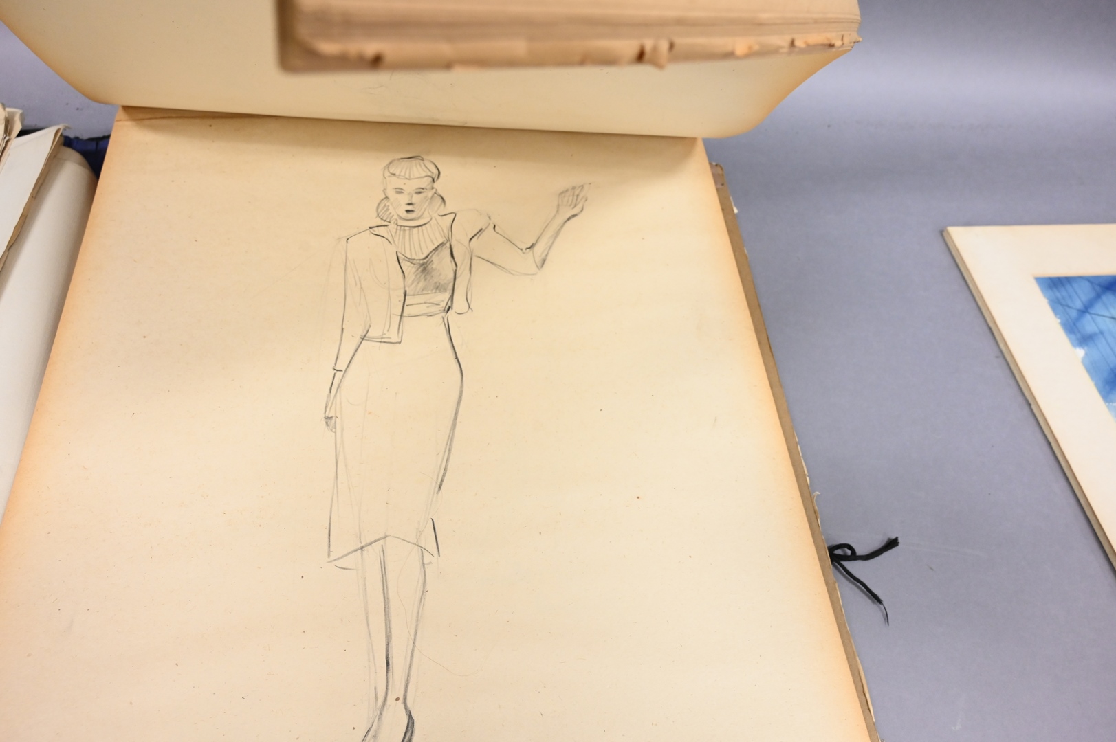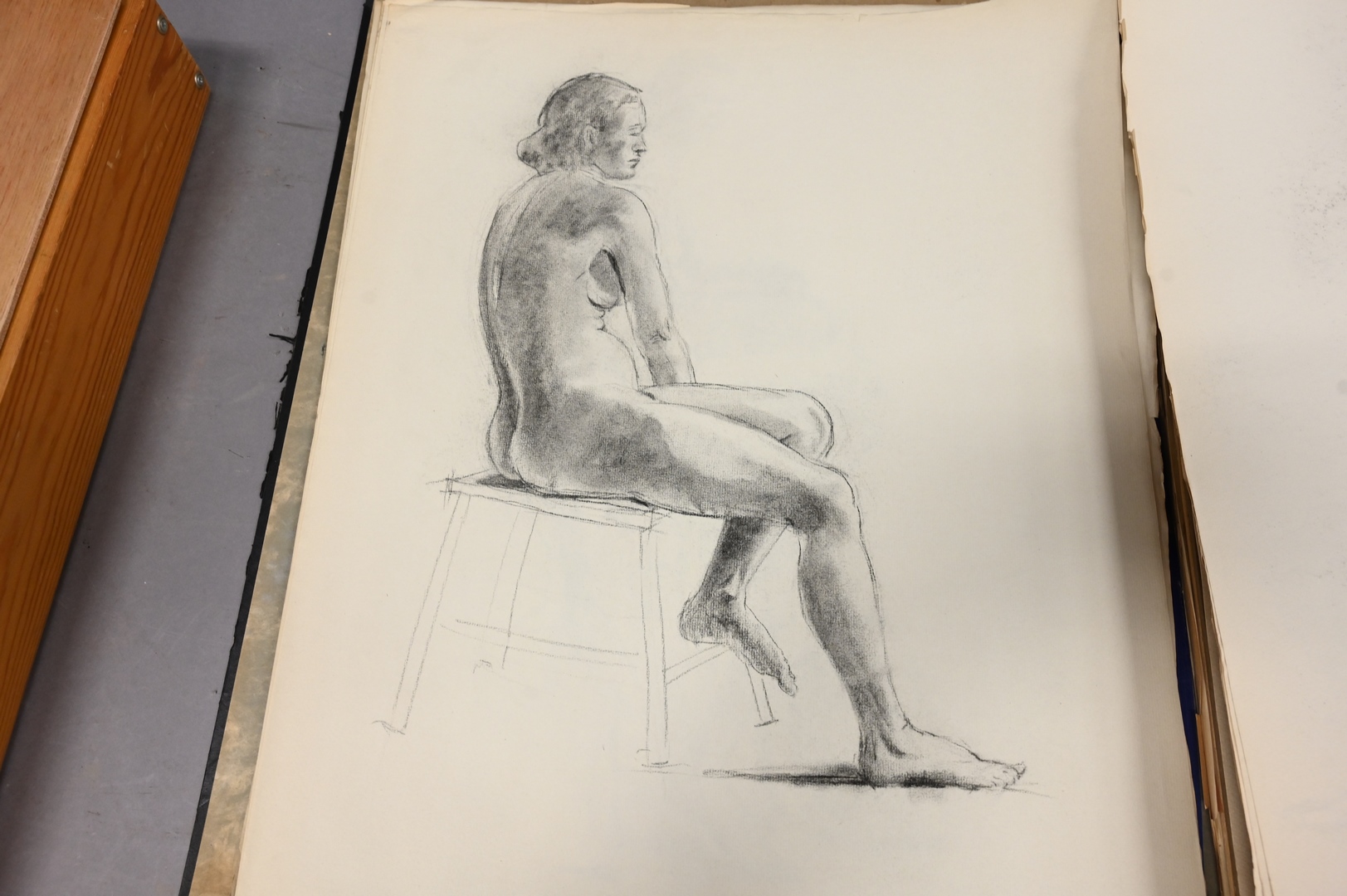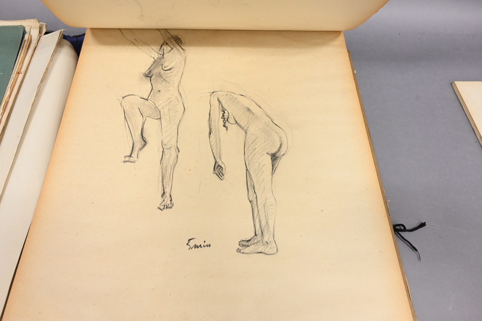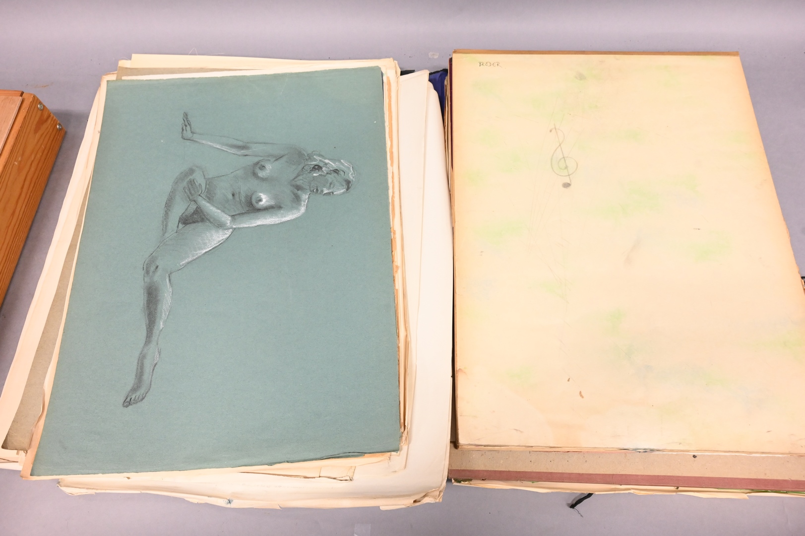 Large Portfolio of Sketches, mostly drawn by Broder, dated from 1940’s and 1950’s, to include watercolors, charcoal pencil, etc.