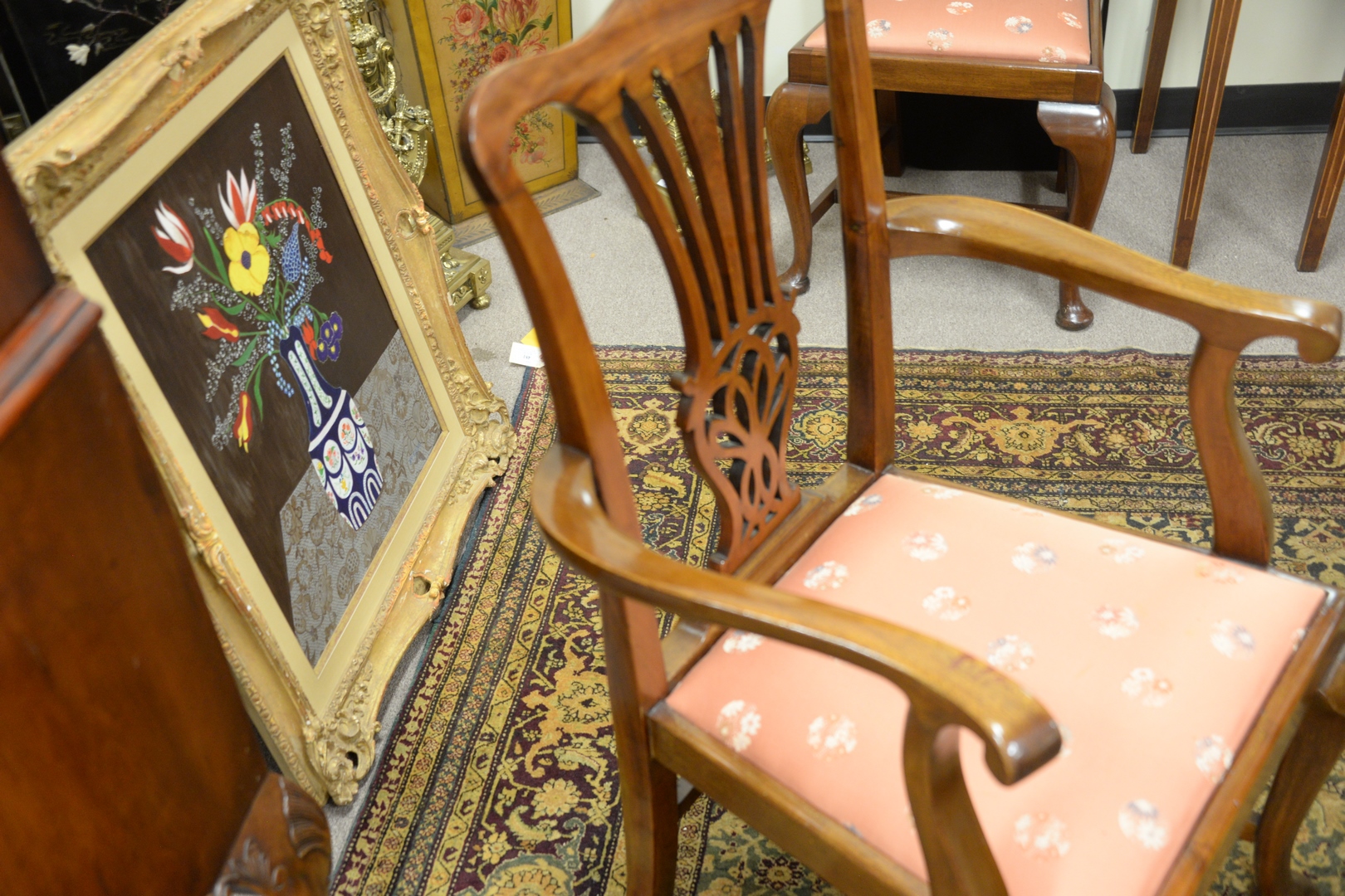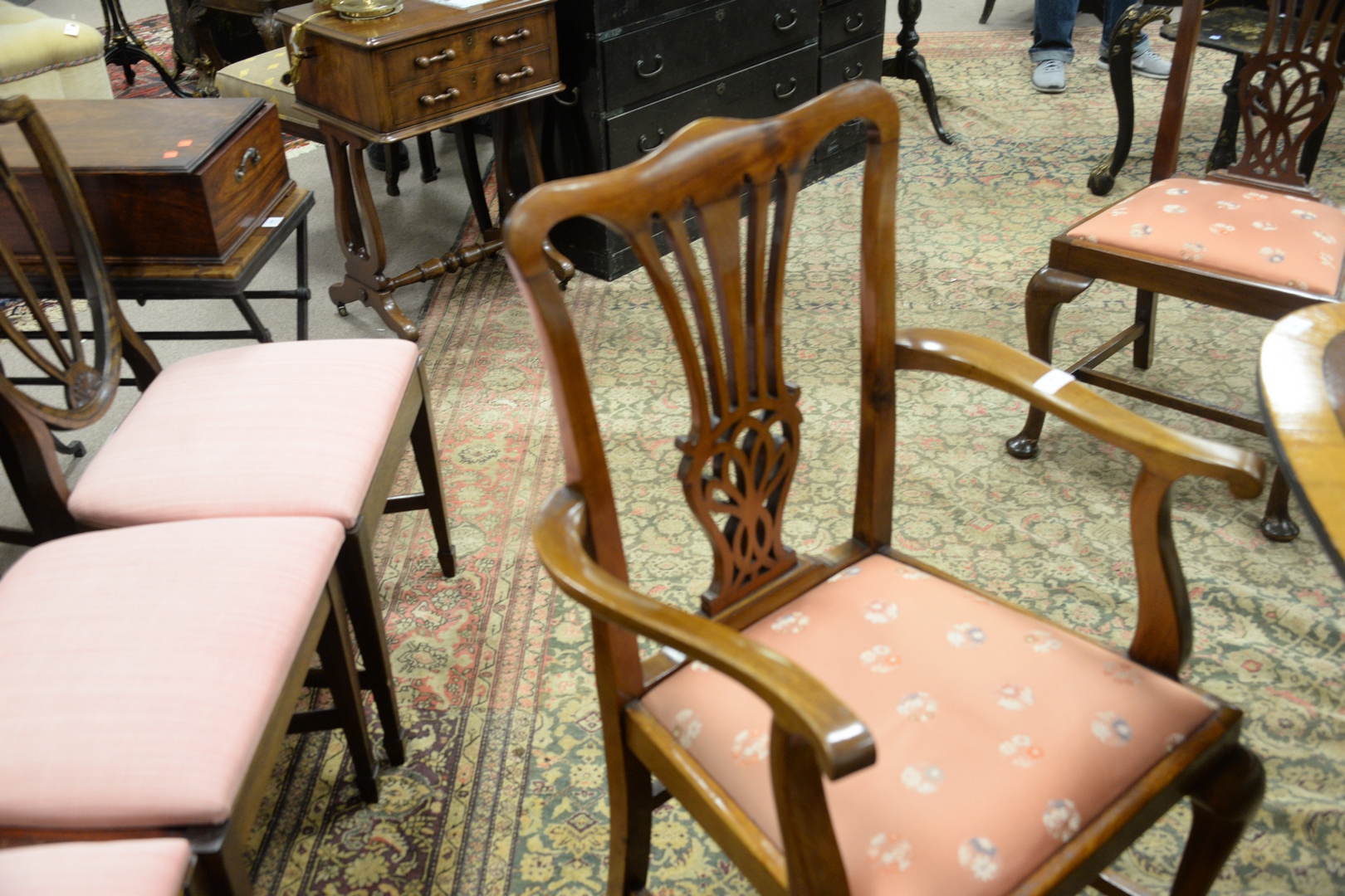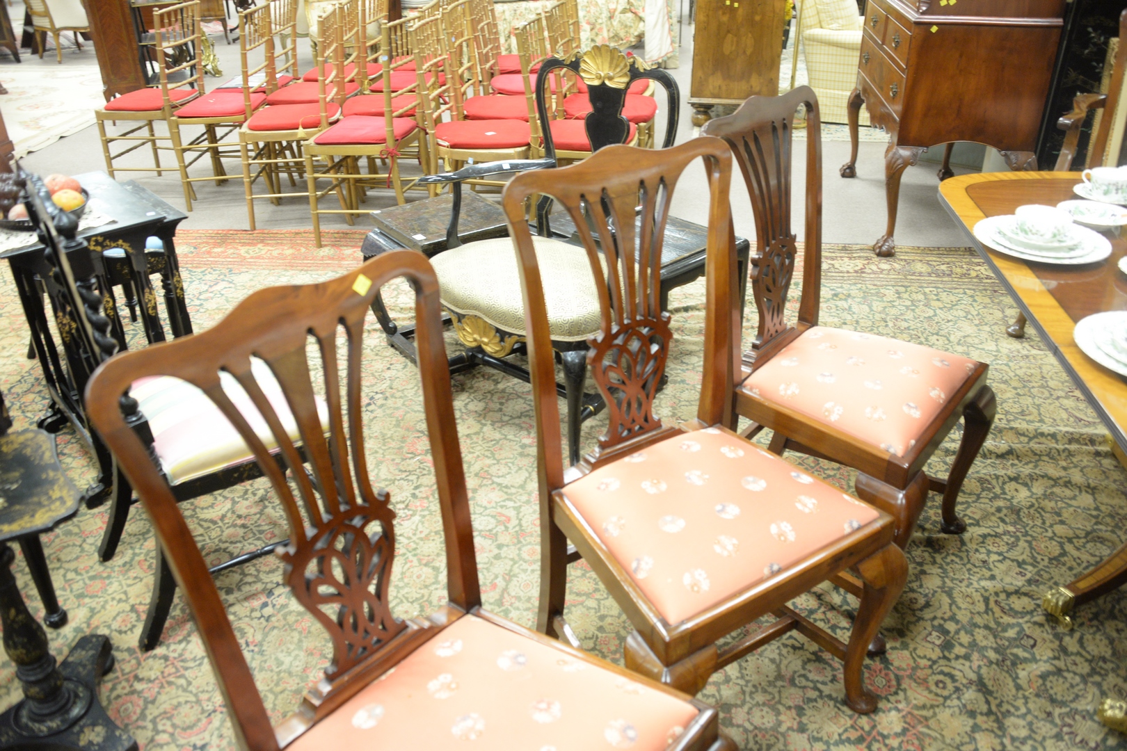 Lot 479: Set of Ten Queen Anne Style Mahogany Dining Chairs, with upholstered slip seats, seat height 42 1/2 inches.
