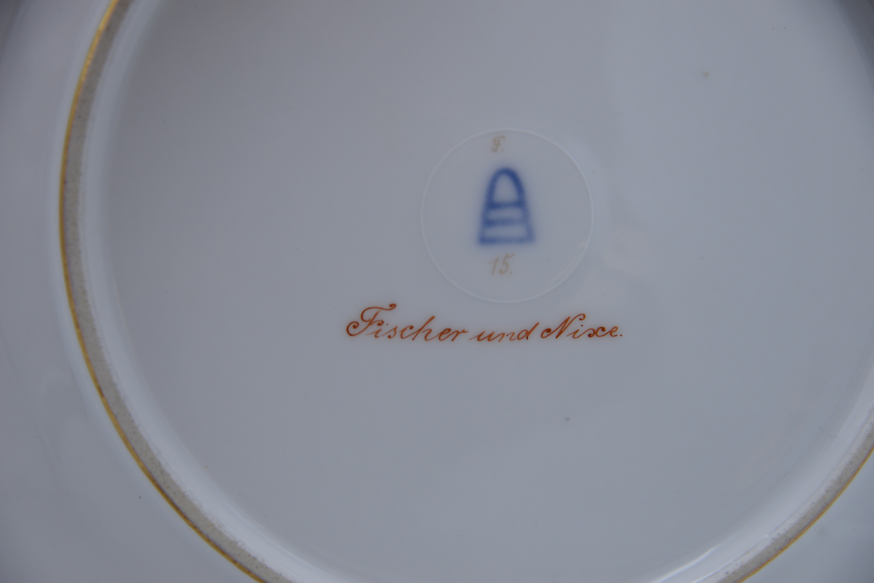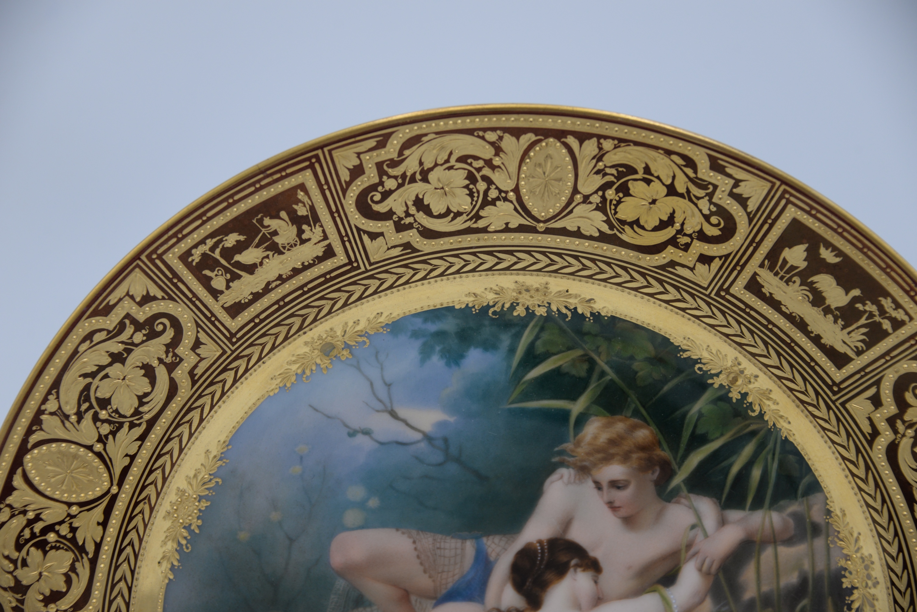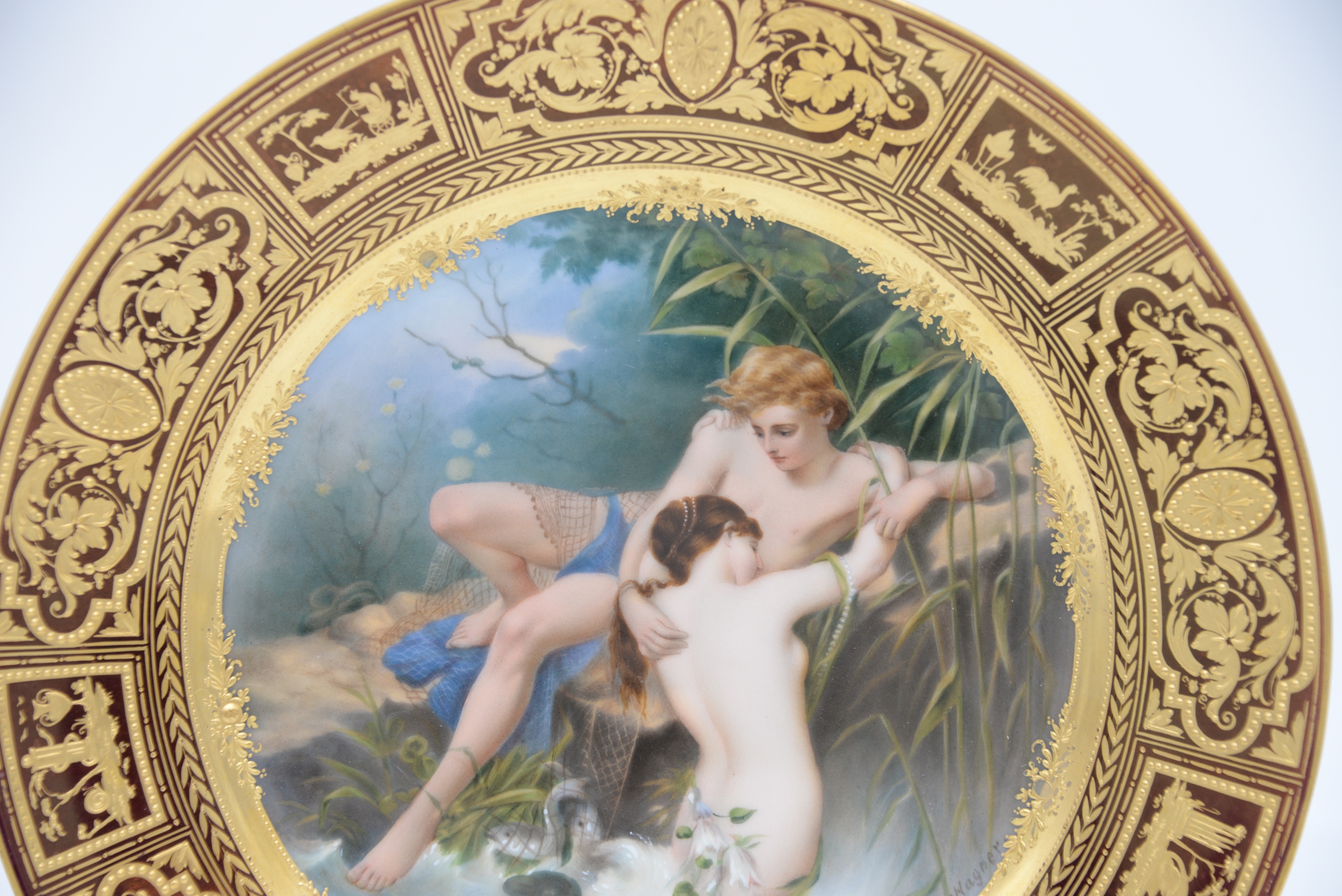 Wagner Royal Vienna Portrait Plate, “Fischner und Nisce”, having high relief gold border with birds and carriage, signed Wagner, diameter 9 1/2 inches.