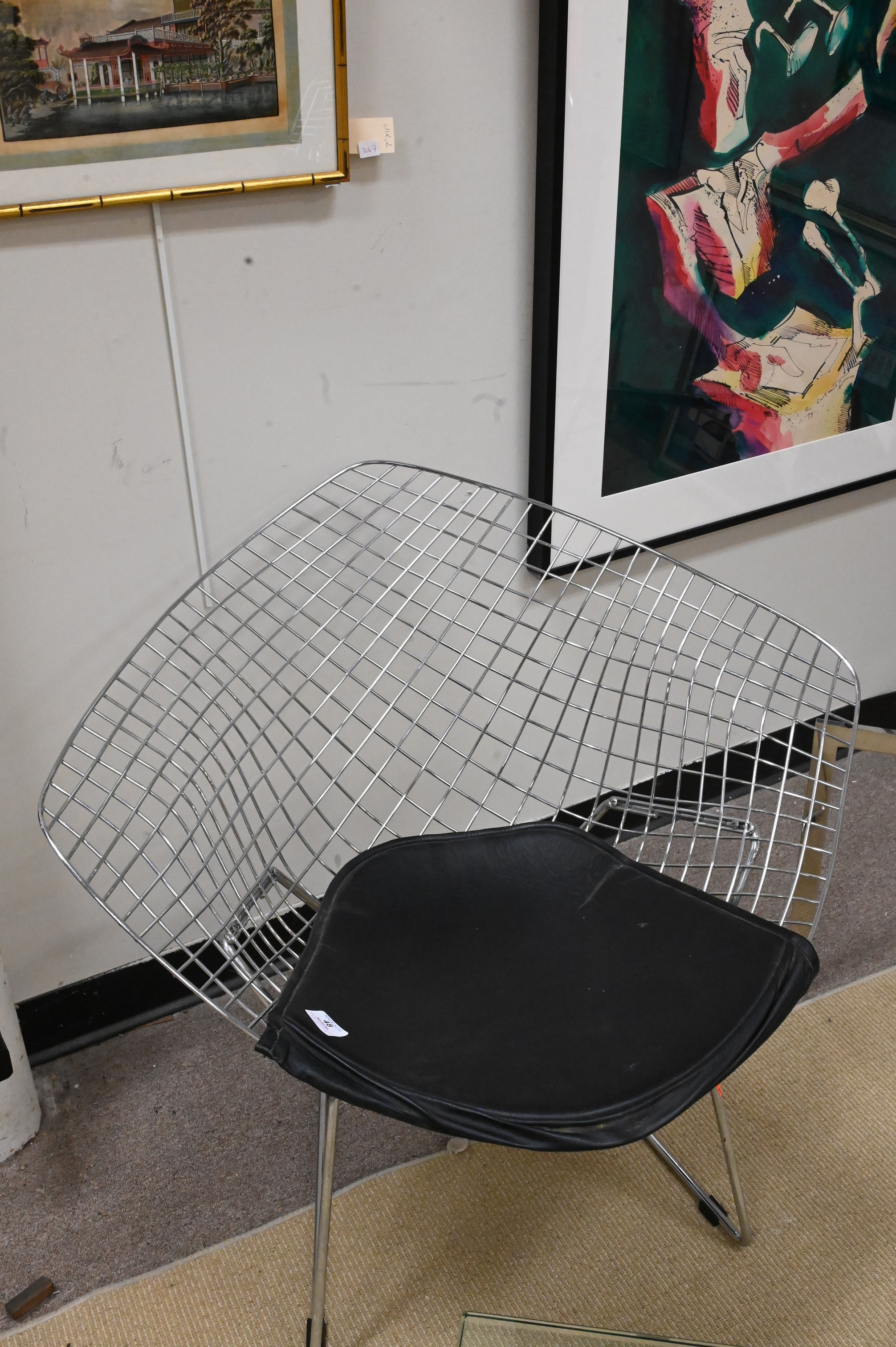 A Pair of Bertoia Style Metal Tub Chairs, height 29 1/2 inches, width 32 1/2 inches.