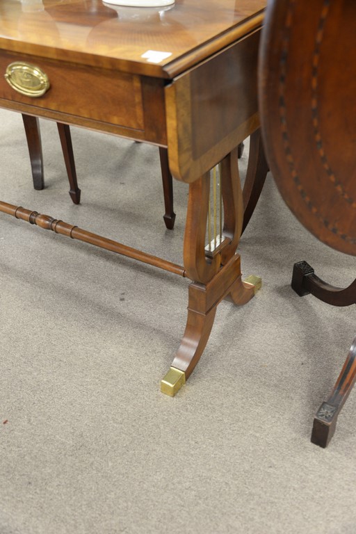 Lot 48: Baker Duncan Phyfe style mahogany banded inlaid sofa table with two drawers. ht. 28in., lg. 44in., dp. 16in.