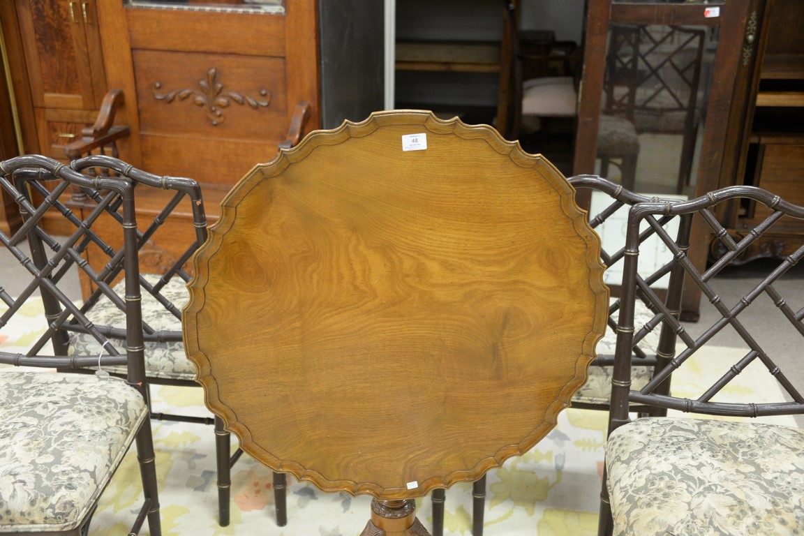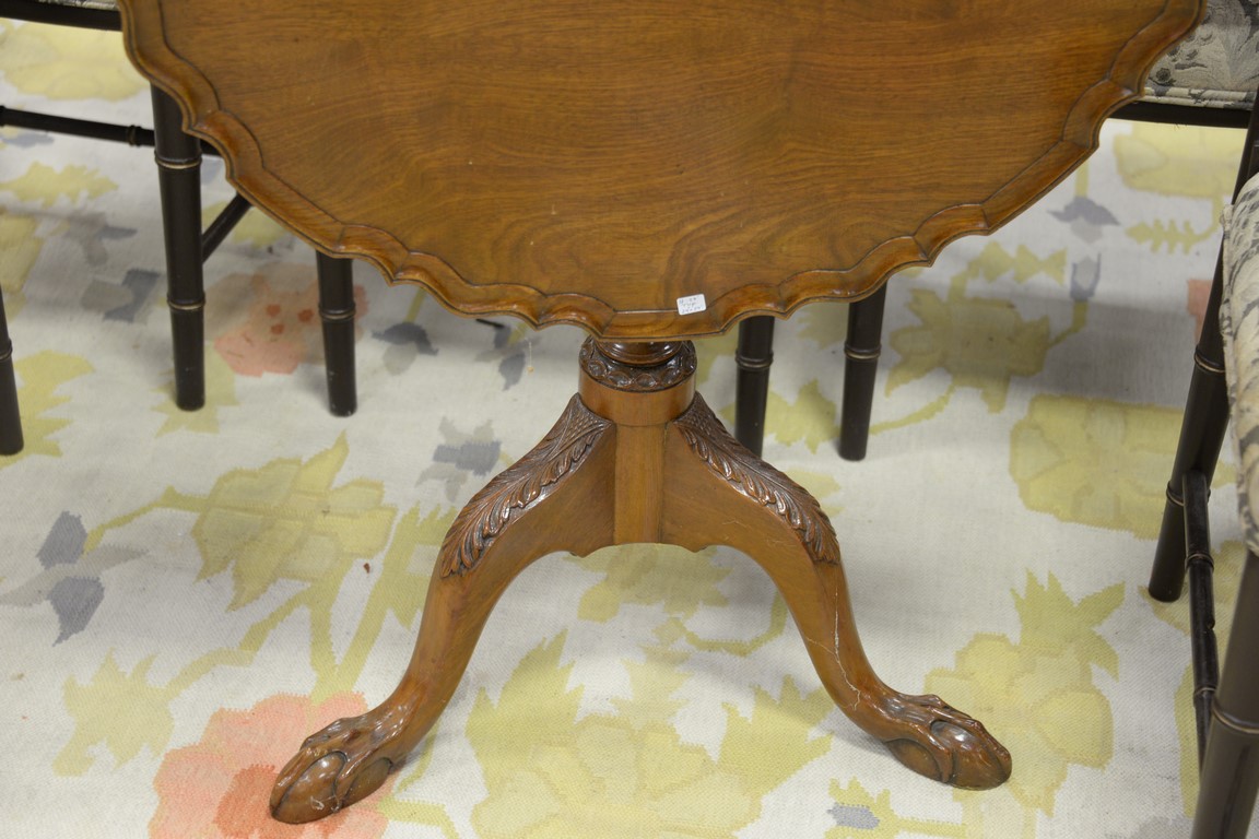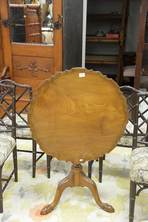Custom mahogany pie crust tip table. ht. 28in., dia. 29in.