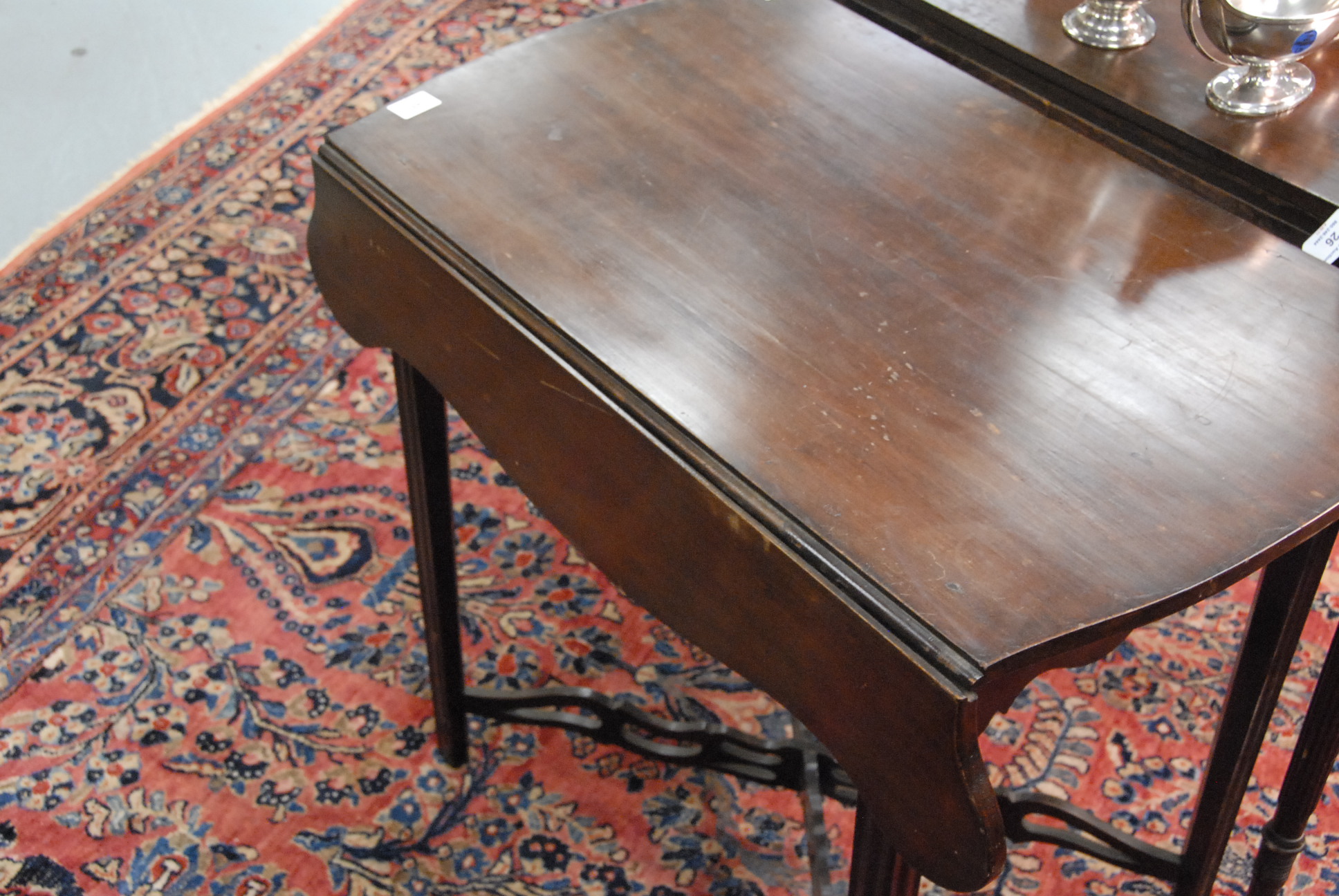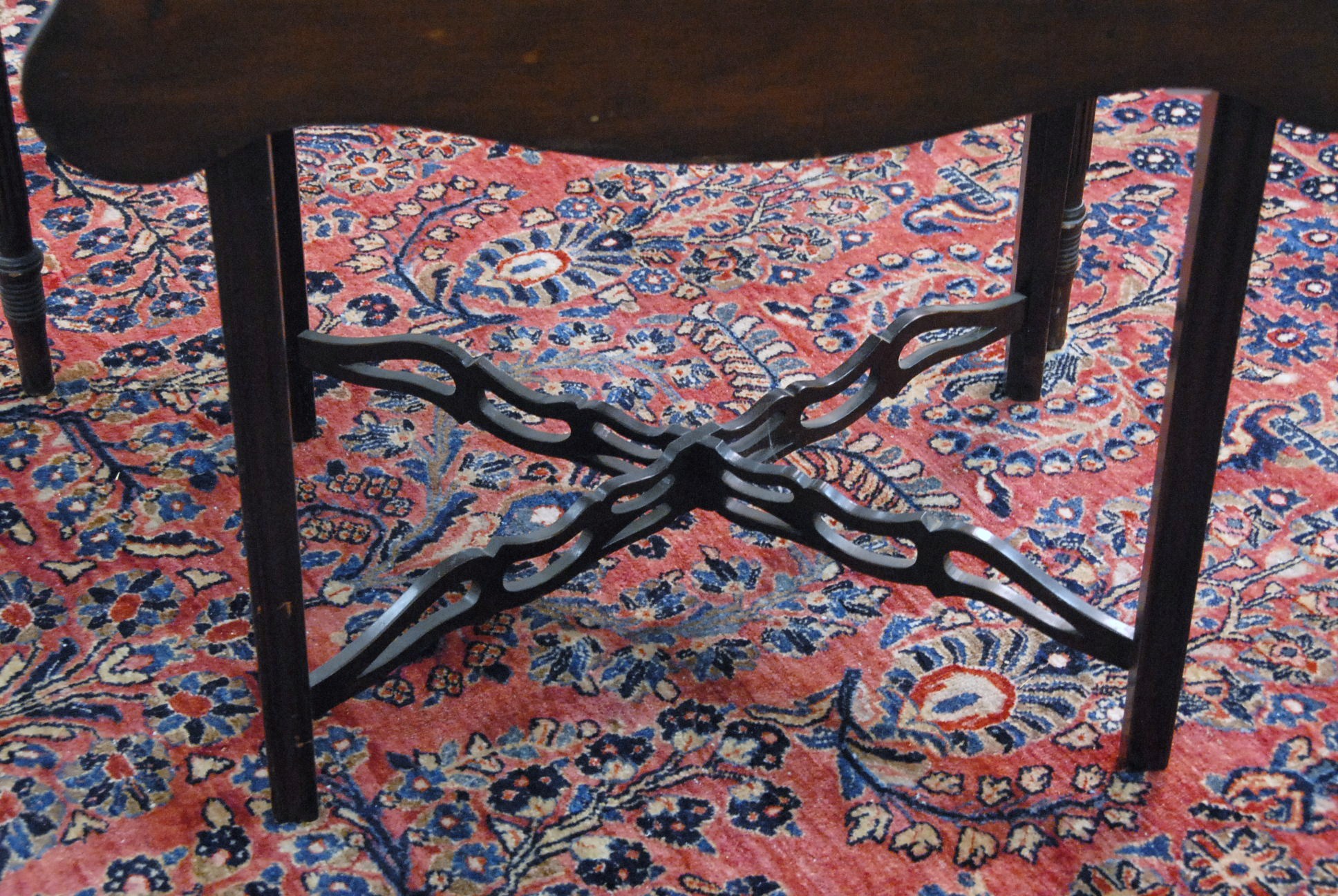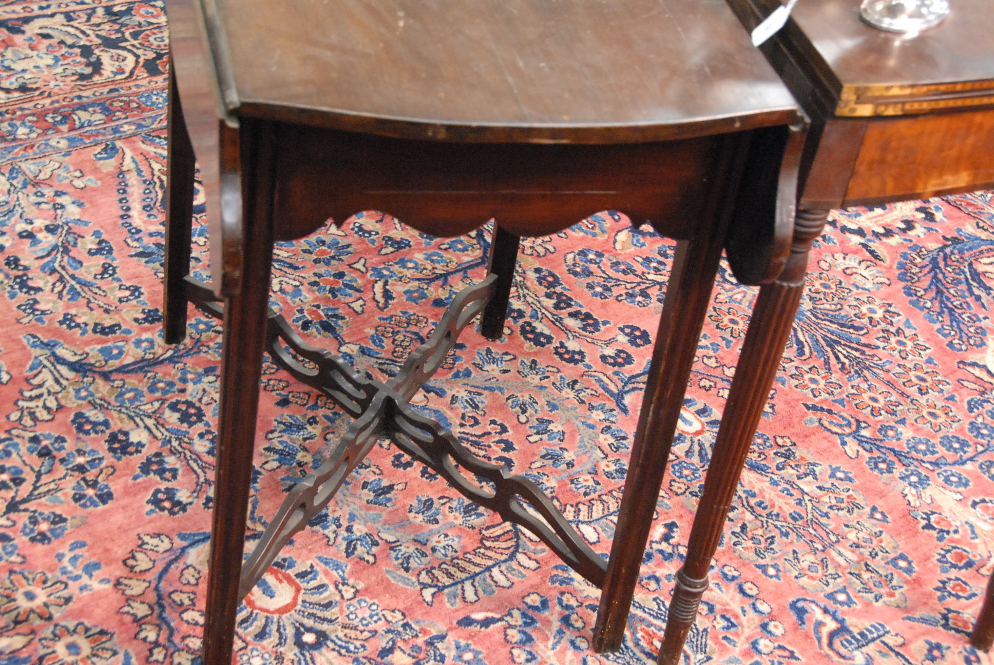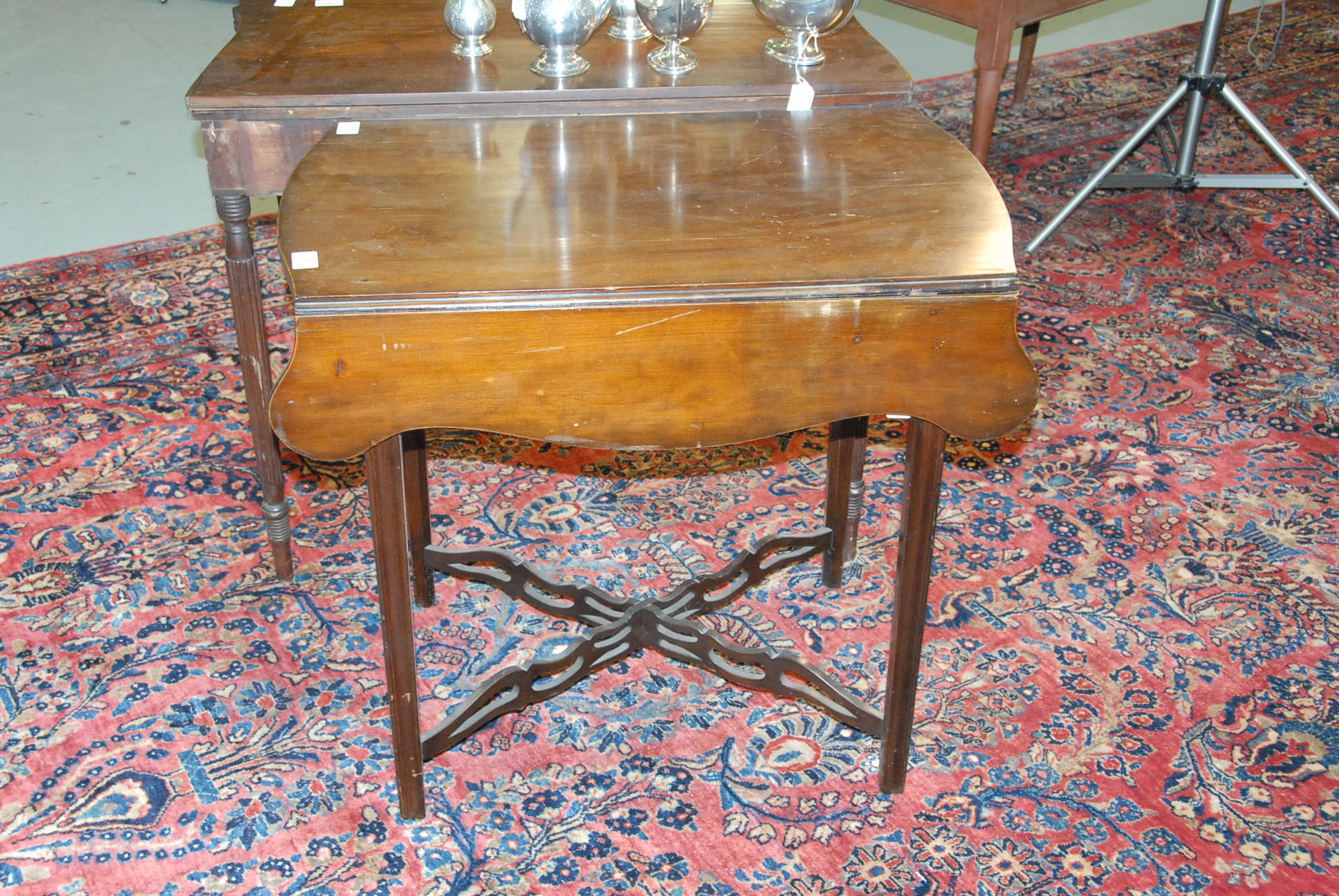 Federal drop leaf table with pierced stretcher base.