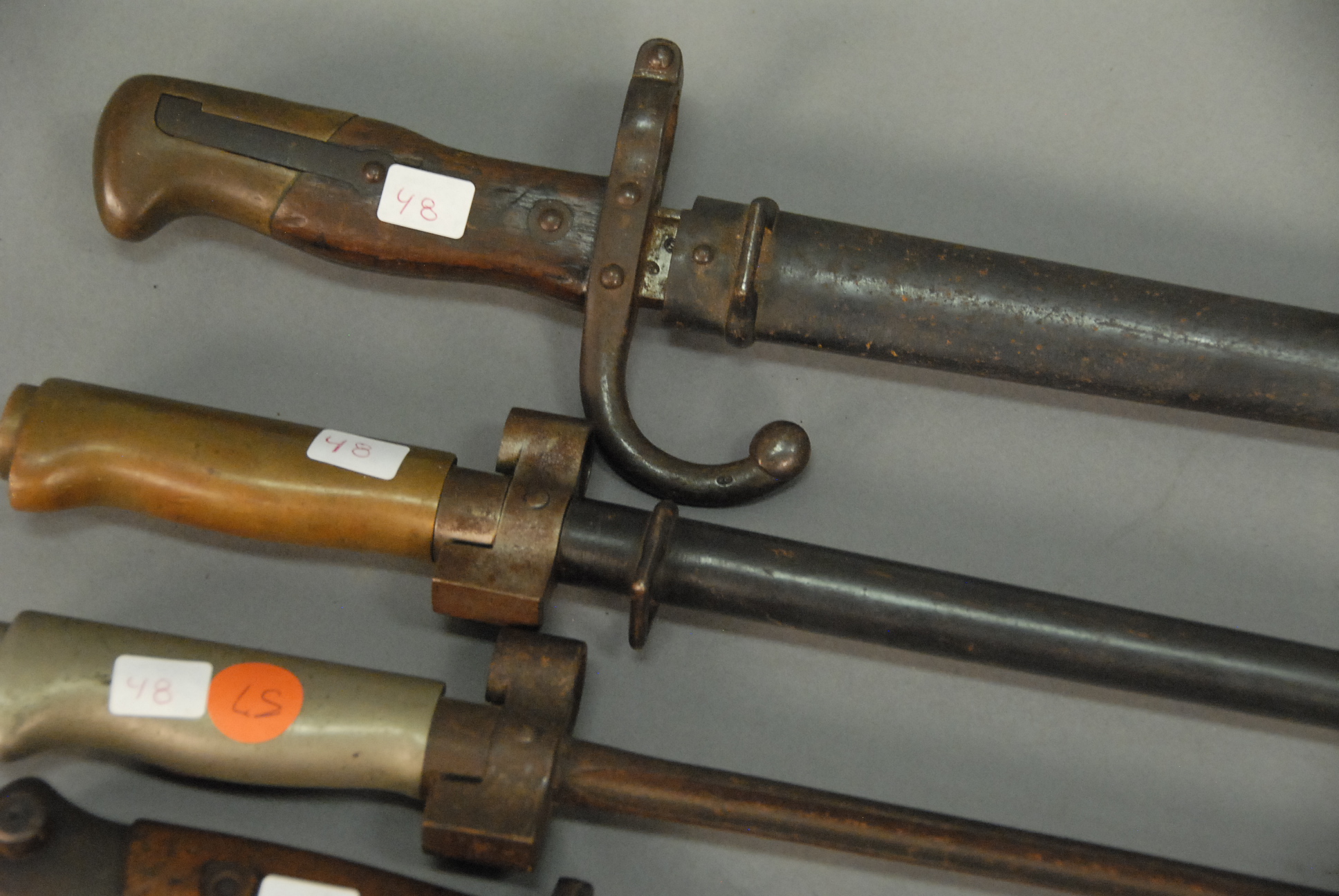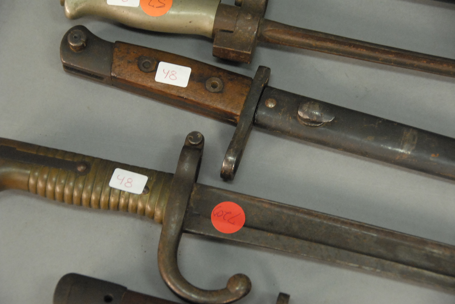 Lot 48: Group of six bayonets, on marked 1907, one marked Icha 1887, another 20 1/2 spike not marked, 20 1/4: spike with brass handle not …