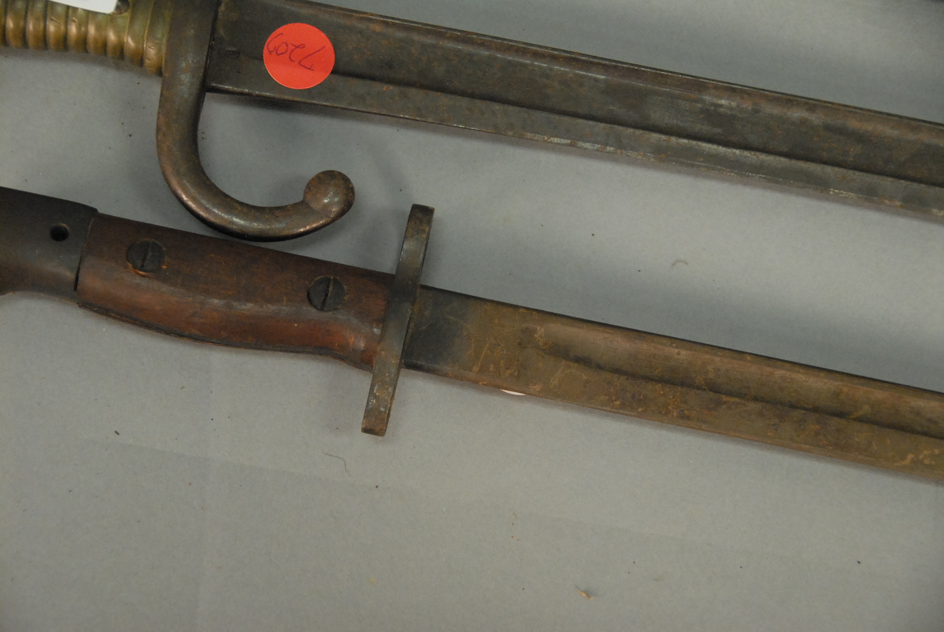 Group of six bayonets, on marked 1907, one marked Icha 1887, another 20 1/2 spike not marked, 20 1/4: spike with brass handle not marked, and two French bayonets both marked De St. Ztienne and one dated 1874.