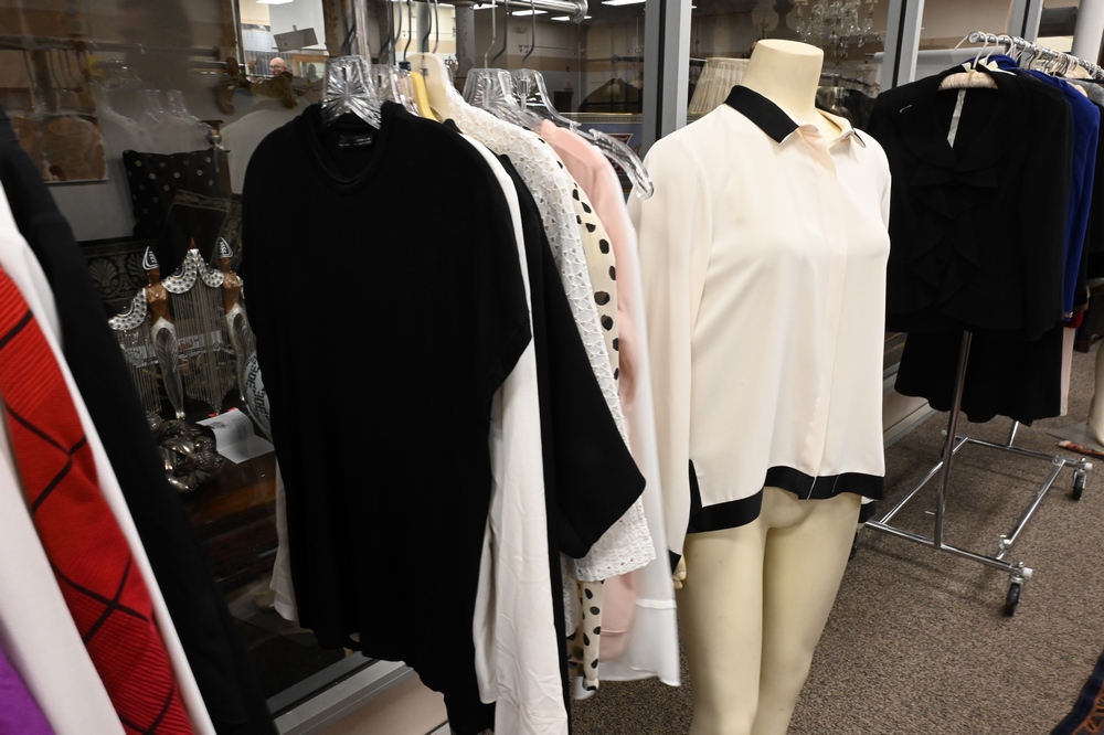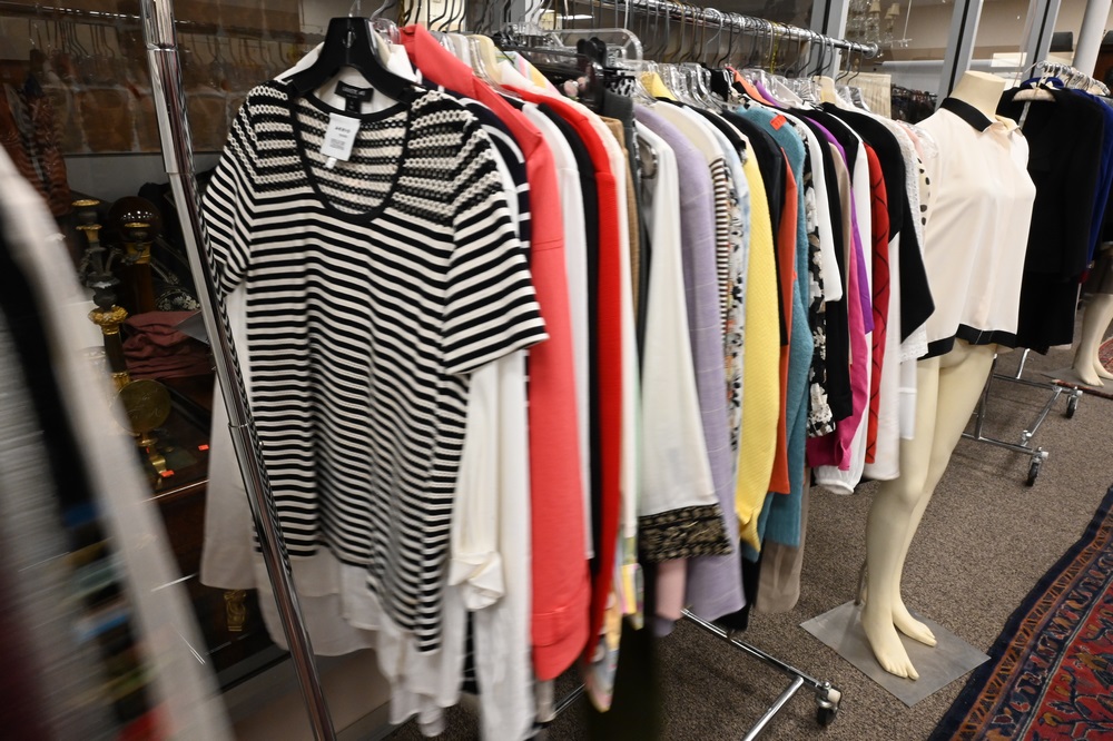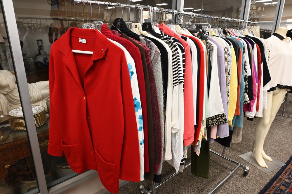 Lot 48: Large Lot of Designer Clothing, approximately 60 pieces, to include shirts, blouses, tops, sweaters, skirts, designers include Delle…
