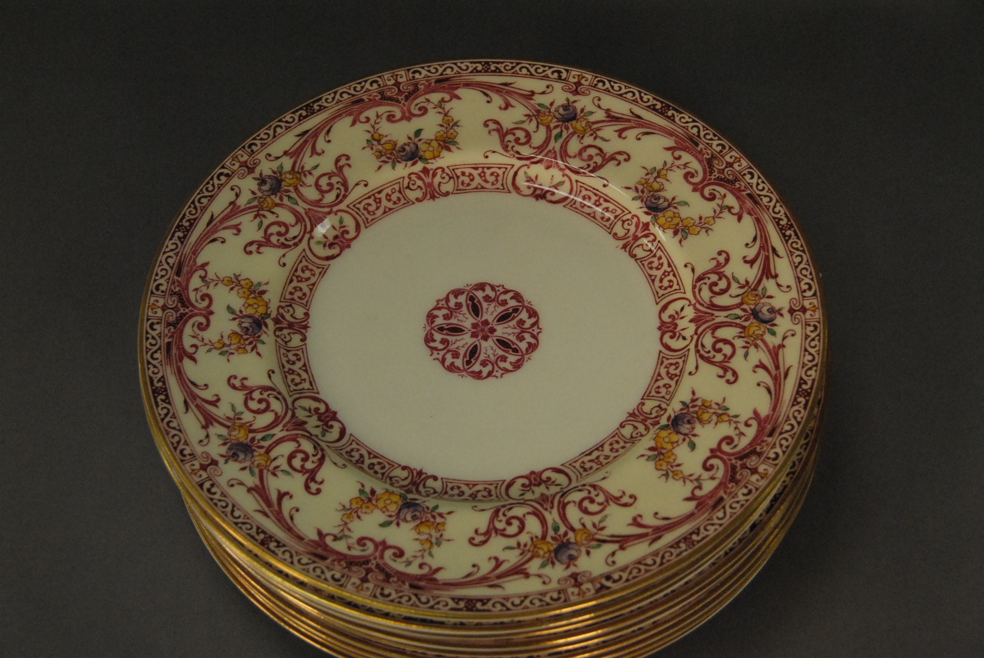 Set of nine Royal Worcester service plates, dia. 11in.
