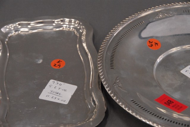 Sterling silver round plate and a small shaped tray.