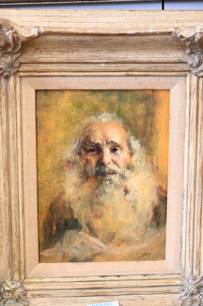 Two Piece Lot, to include Cydney Grossman (American, 1909 – 2000), portrait of a man, oil on masonite, signed lower right “Cydney”; …