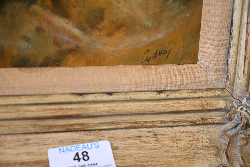 Lot 48: Two Piece Lot, to include Cydney Grossman (American, 1909 – 2000), portrait of a man, oil on masonite, signed lower right “Cydney”; along with a portrait of a girl, oil on masonite, signed lower right “Dore”, 8 1/2″ x 6 1/2″.
