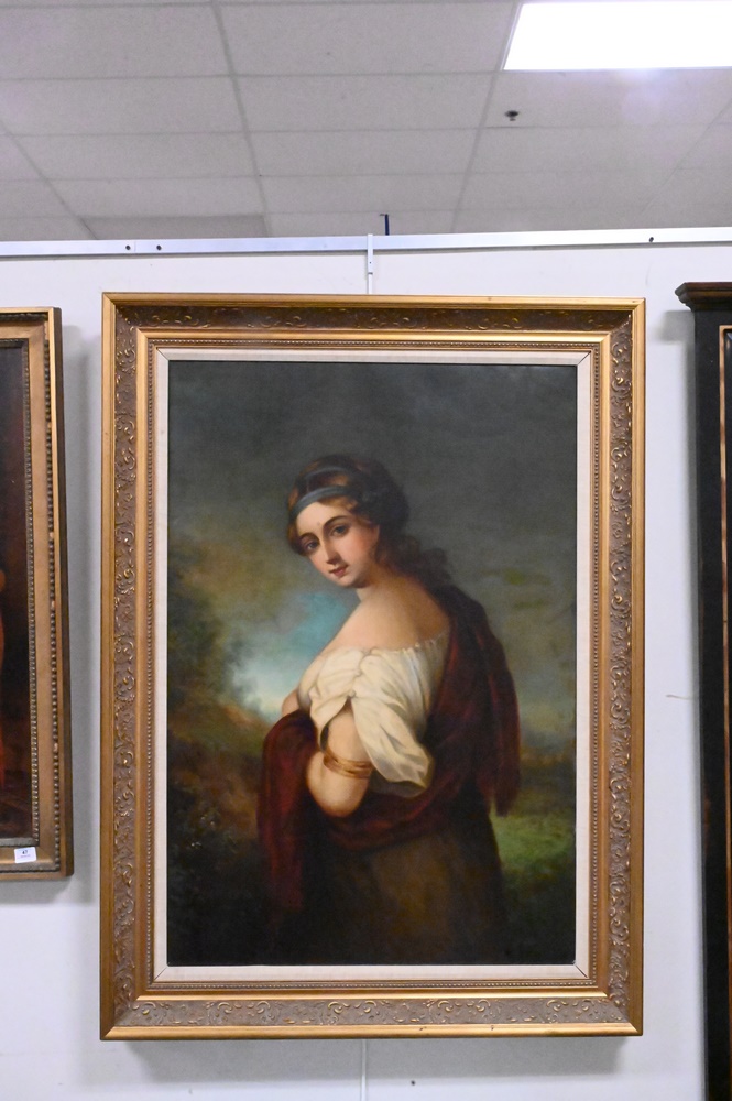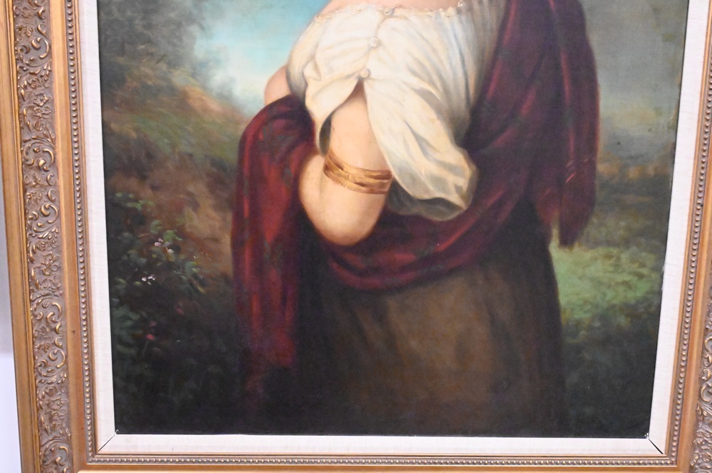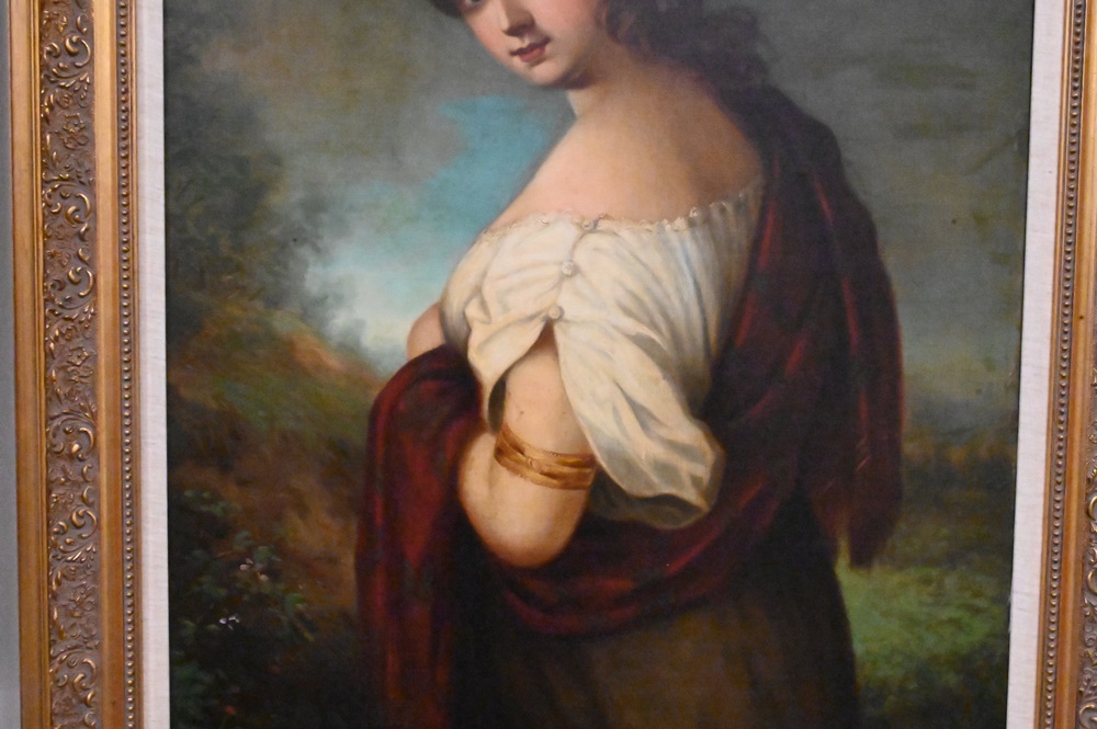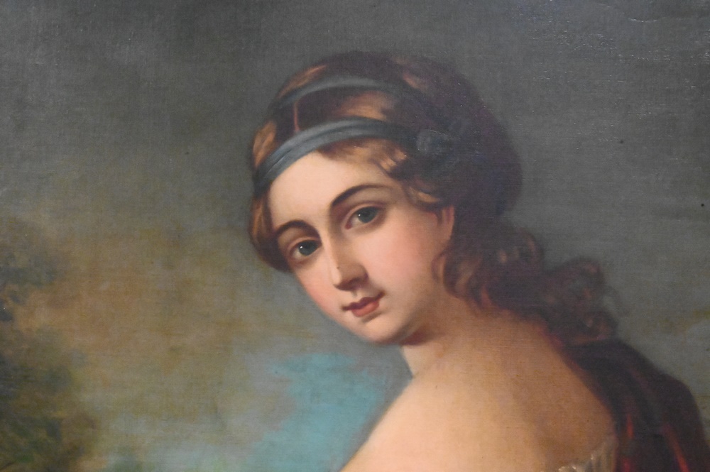 Victorian Portrait, oil on canvas, young woman, relined, unsigned, 44″ x 30″.