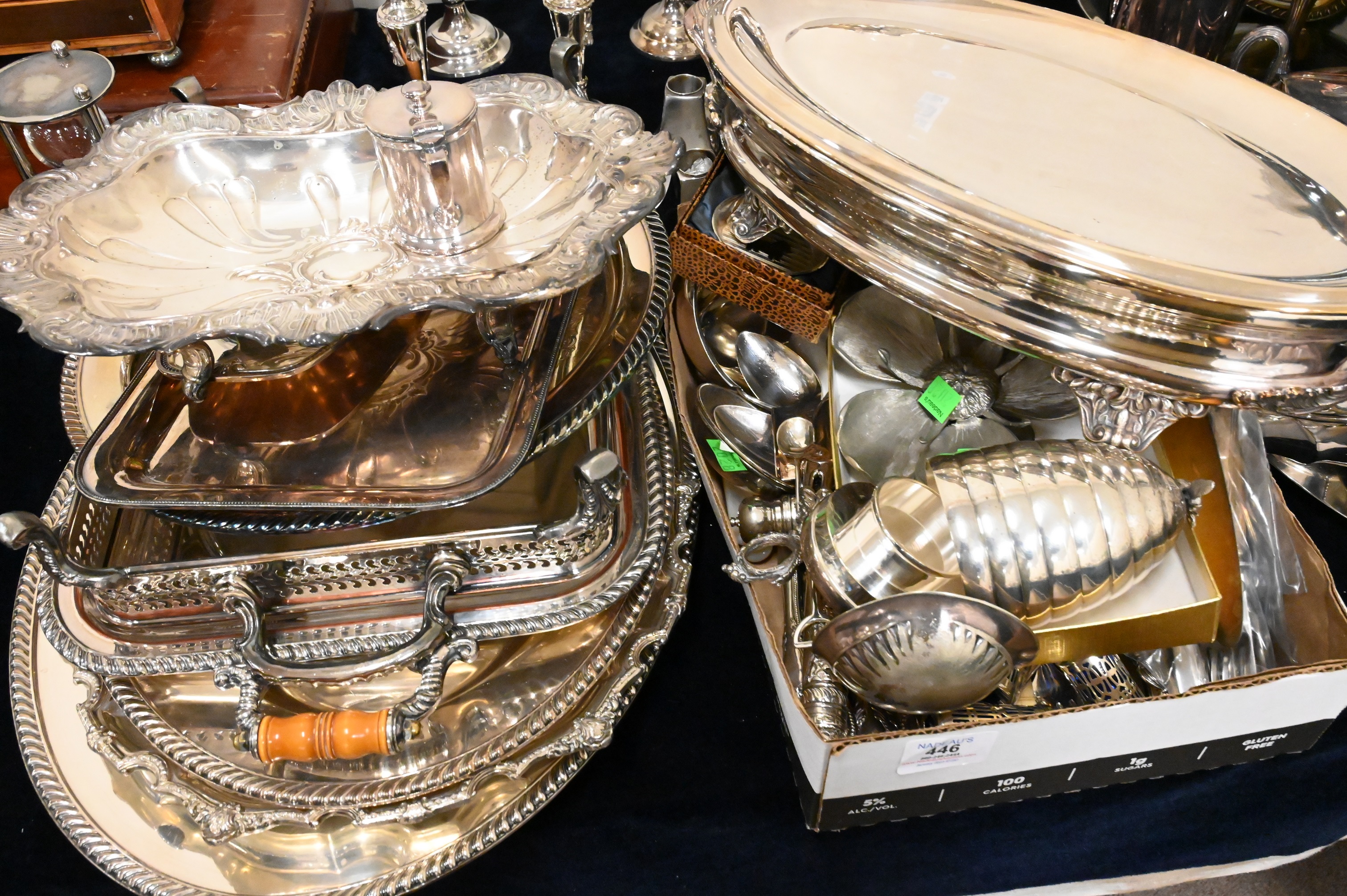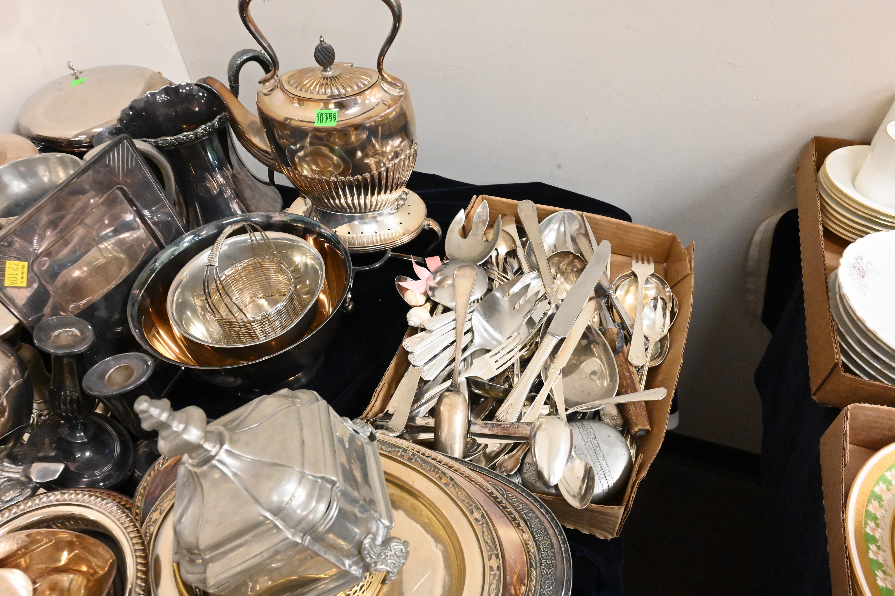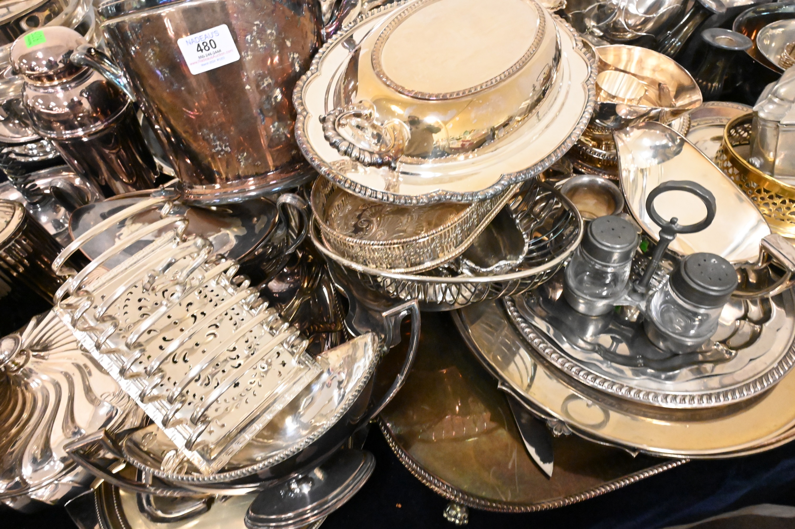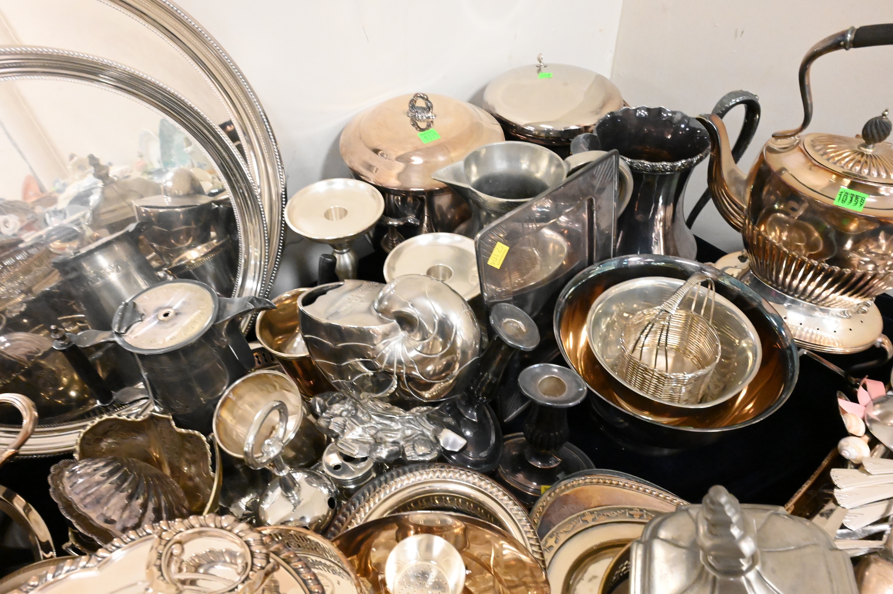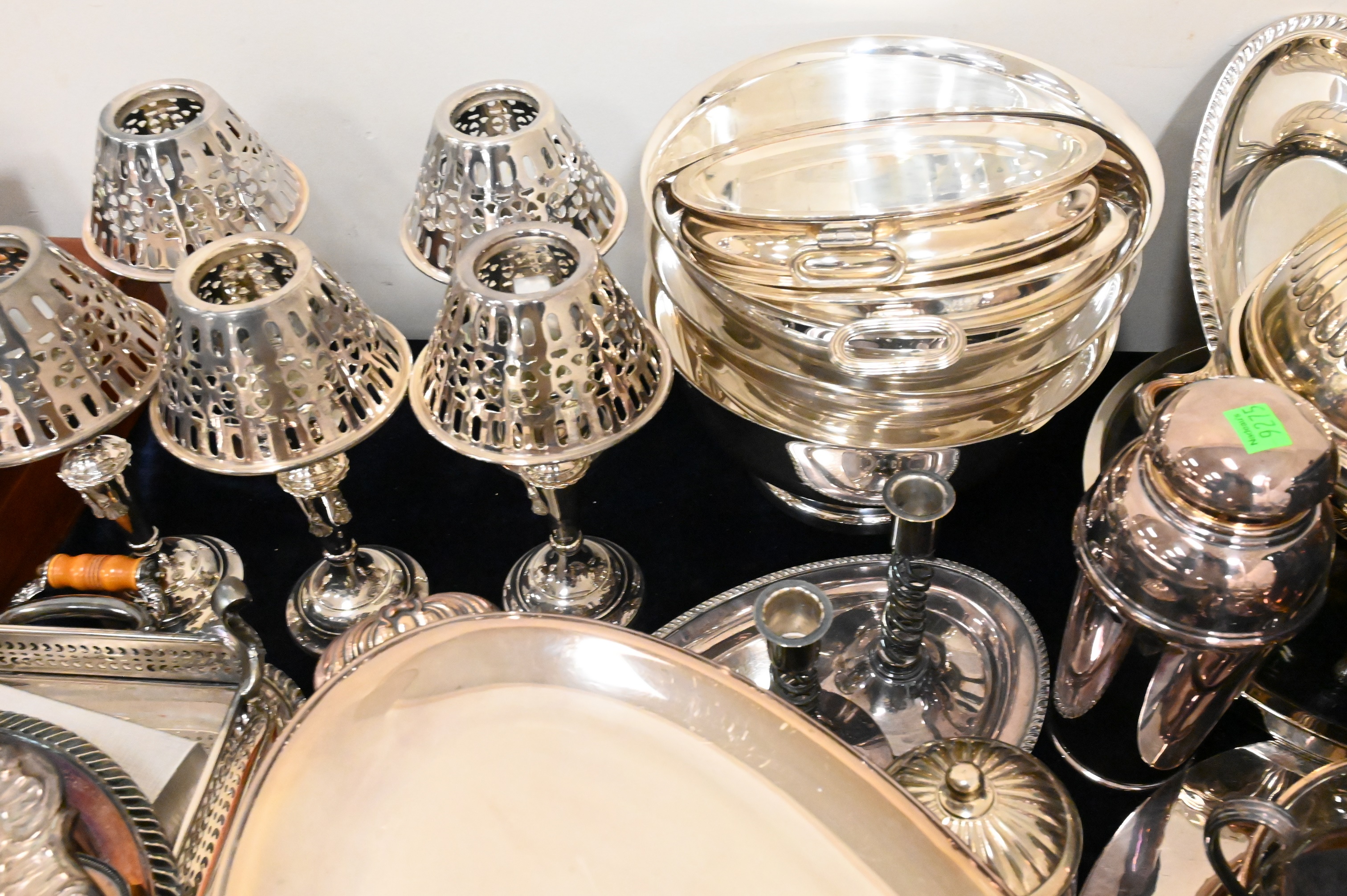 including five candle lamps, hourglass, pair of Sheffield silver plate covered gravy bowls, warmers, etcetera
