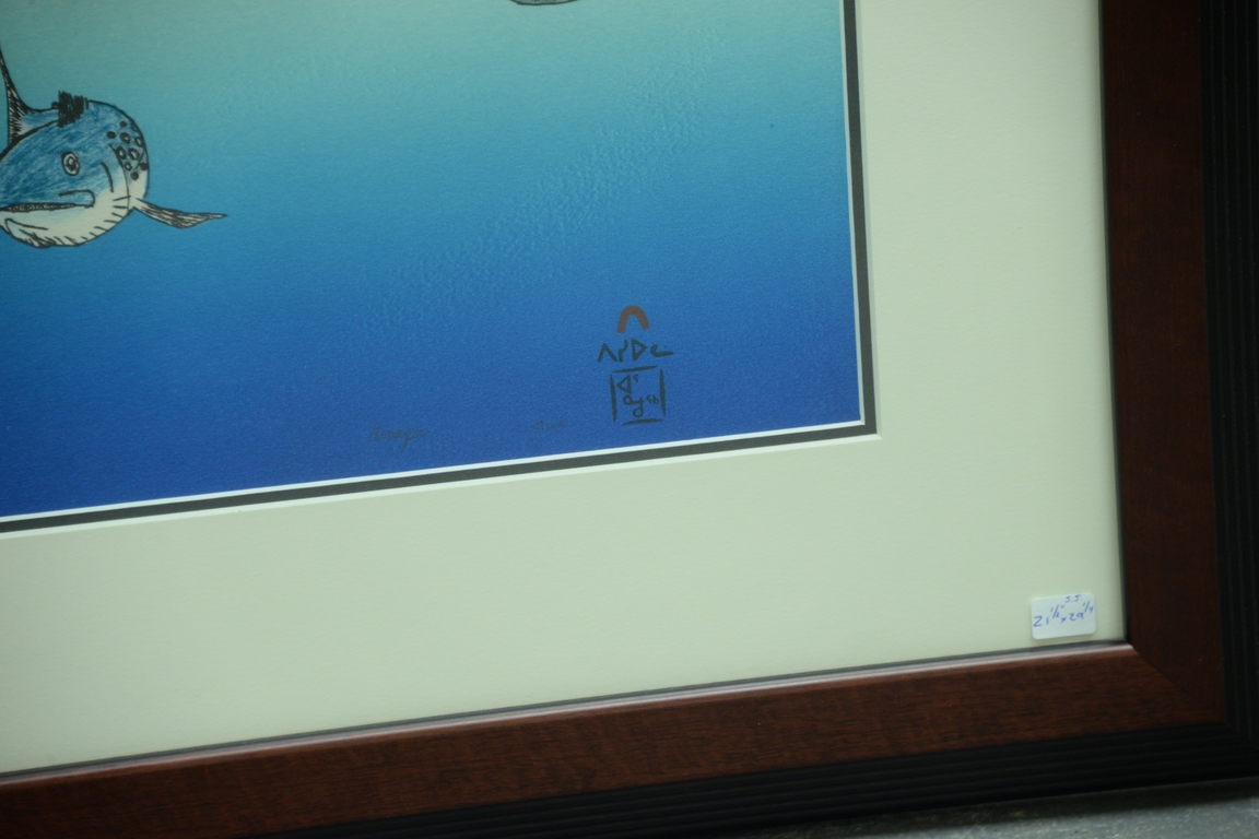 Lithograph and stencil Springtime Fishing signed lower right Dorset 1994 25/50. 21 1/2 x 29