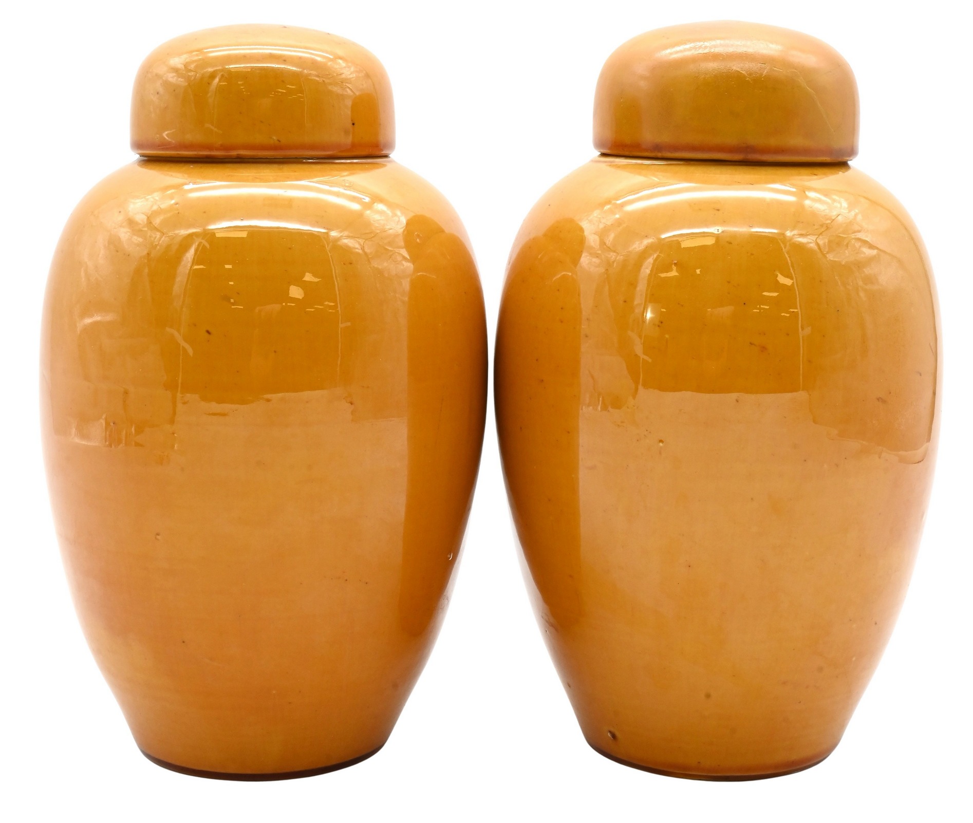 Pair of Yellow Glazed Ovoid Jars and Covers