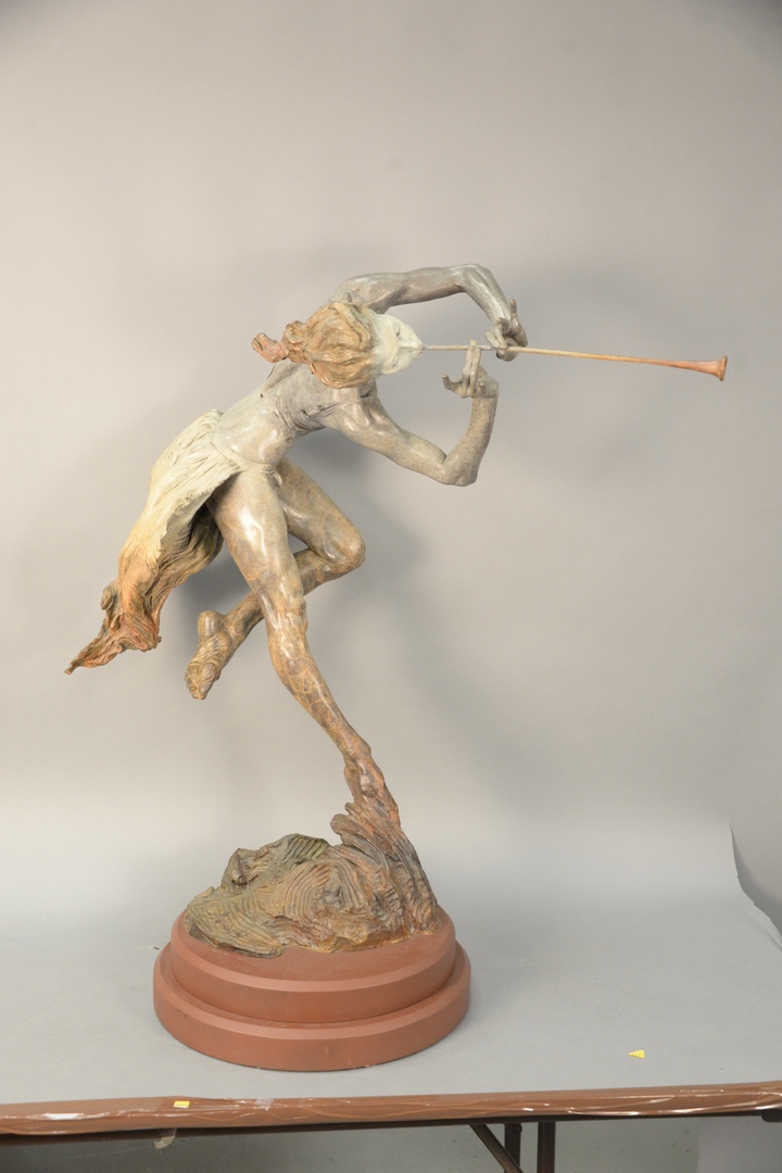 Lot 480: Richard MacDonald American, born 1946 Trumpeter, Draped half life size bronze with polychrome inscribed on the base and numbere…