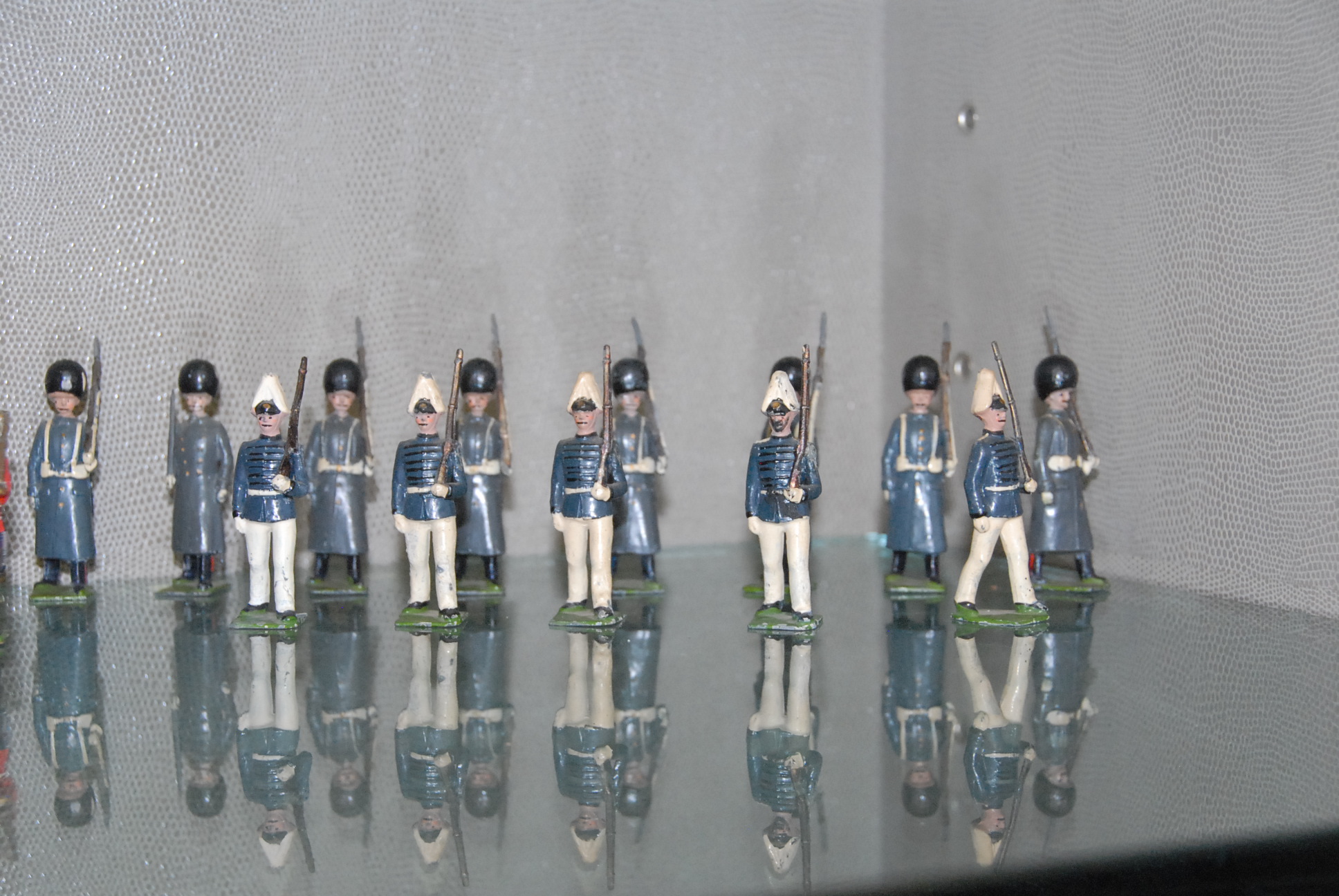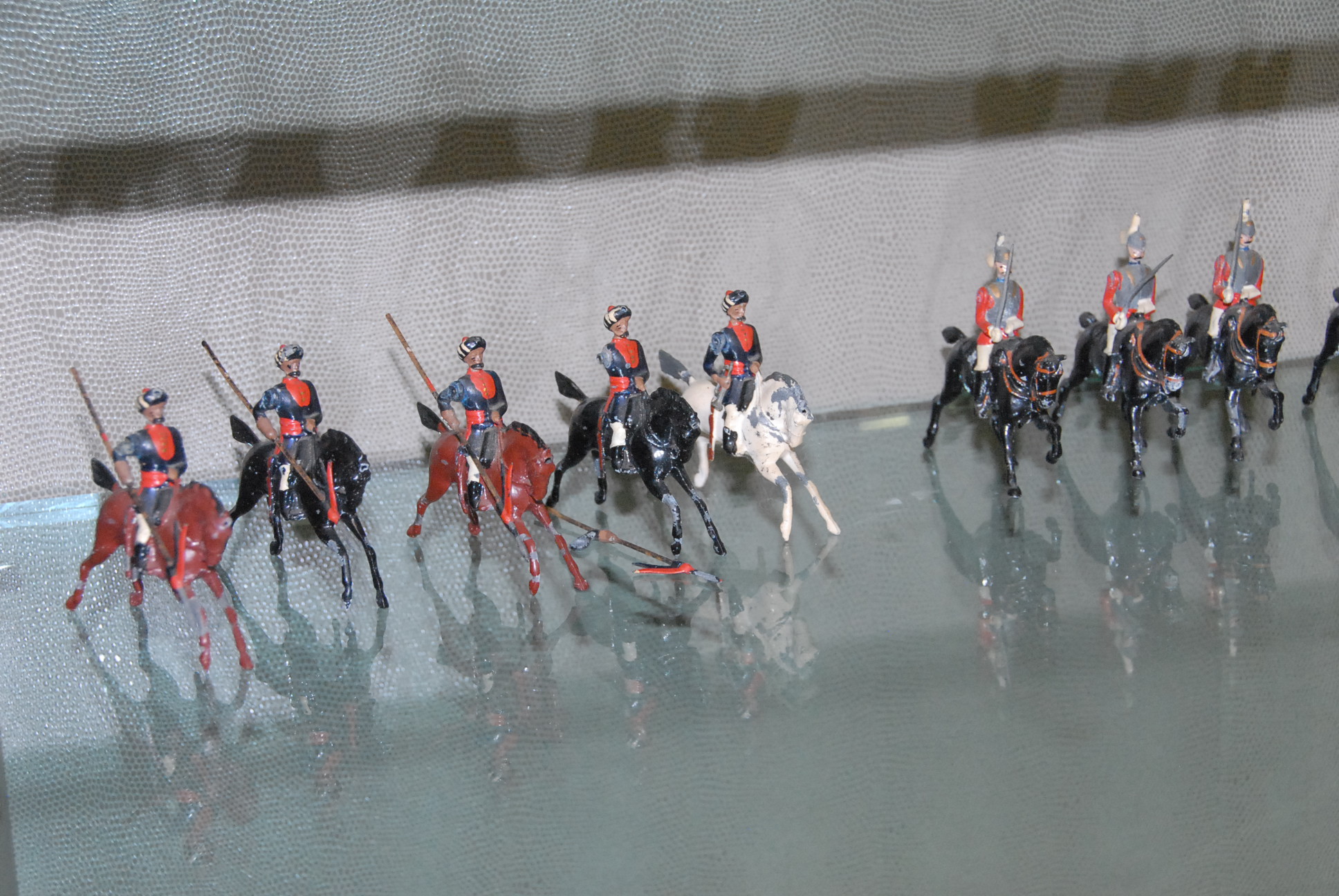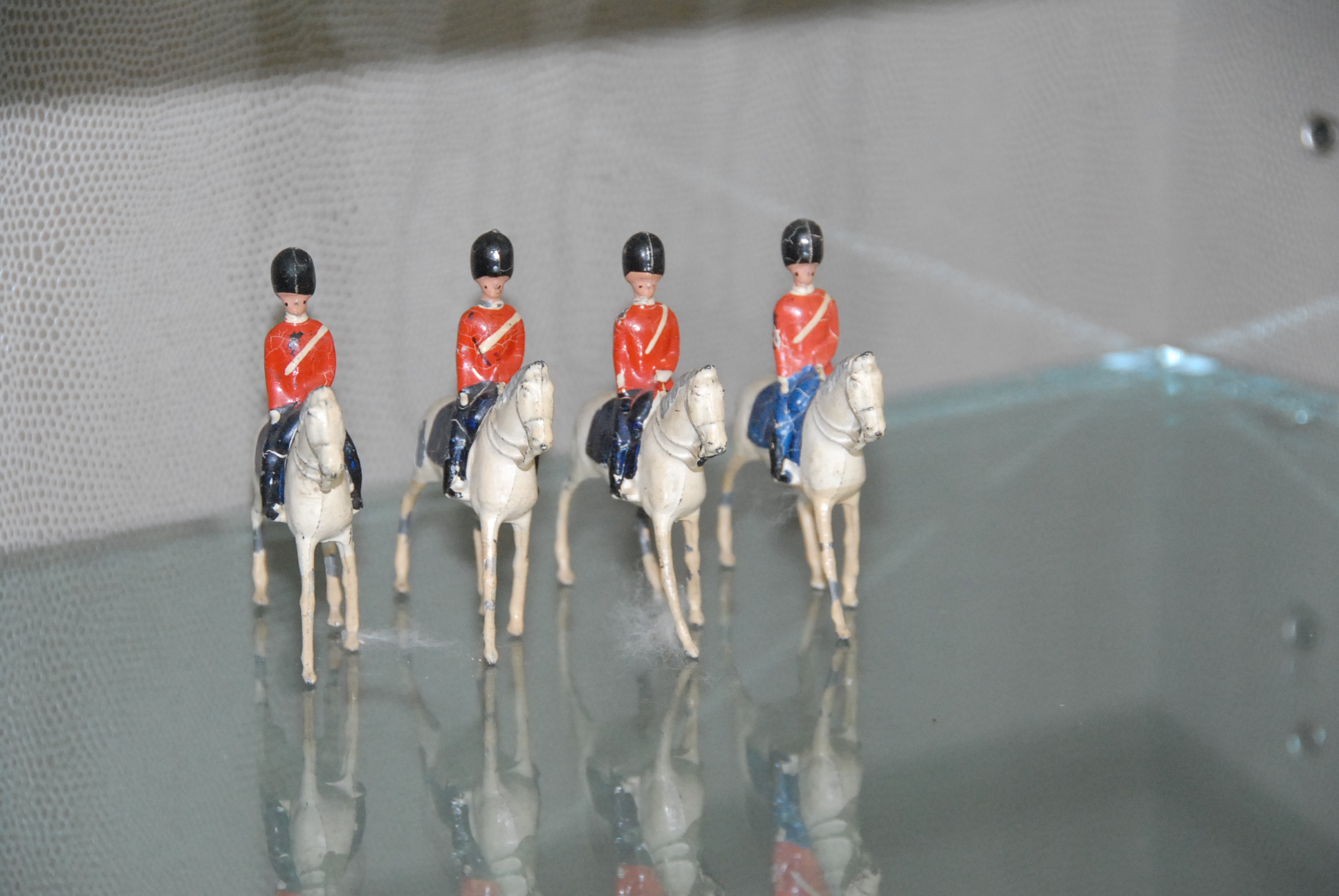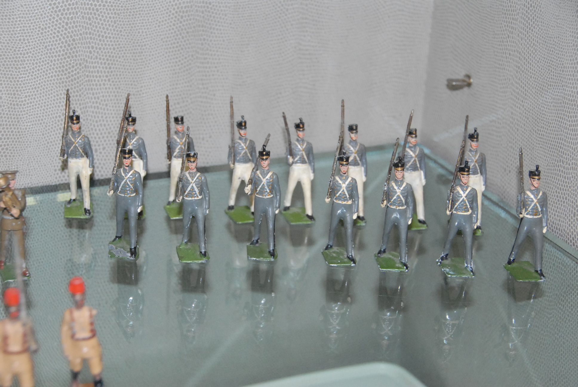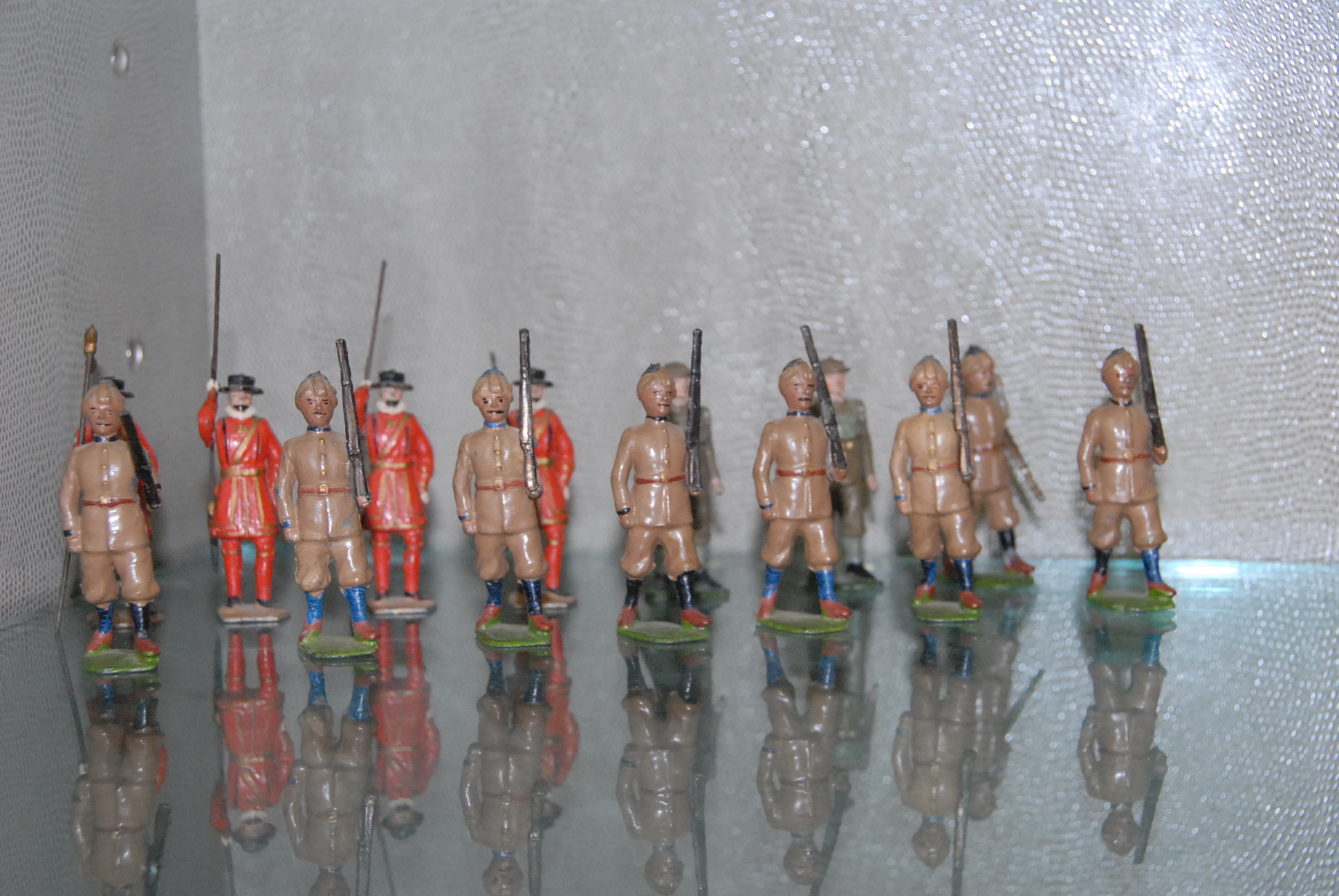 Vintage lead soldiers U. S. Marines Reg. Band 1939, Life Guards Britain 1939, Bengal Lancers, U. S. Military Academy and more, 109 pieces in all.