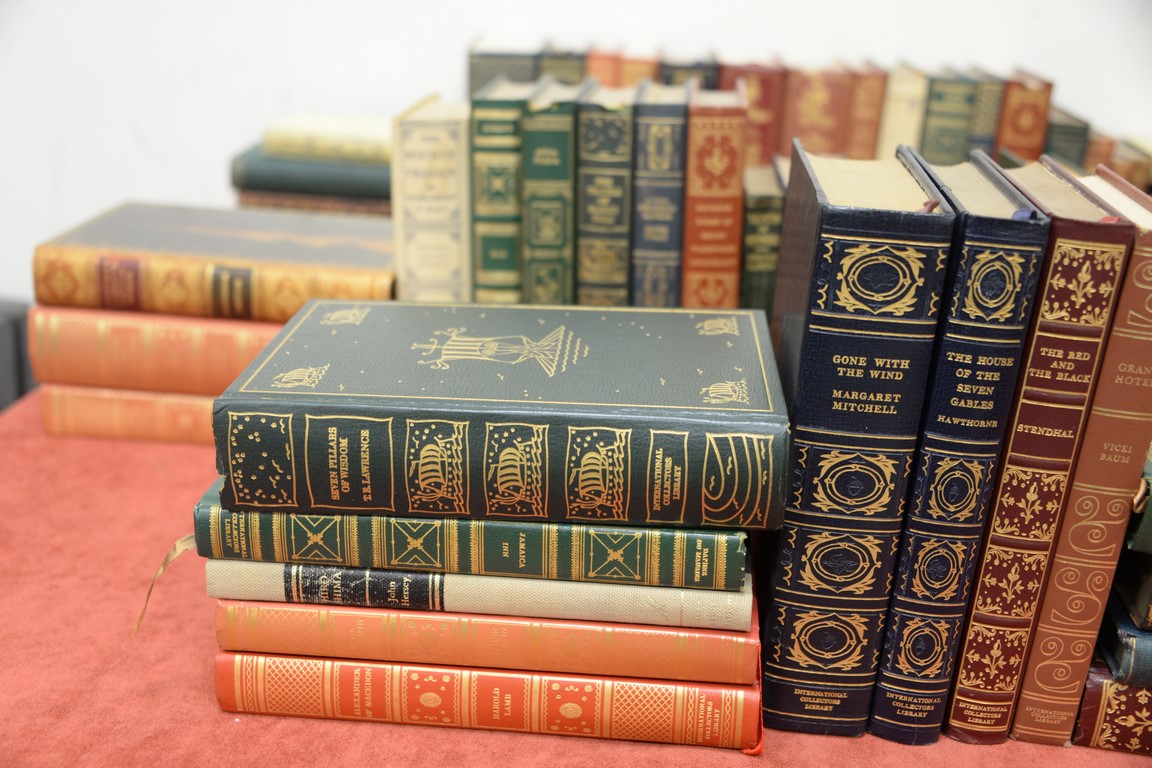 Book lot, leather bindings, 71 total books.