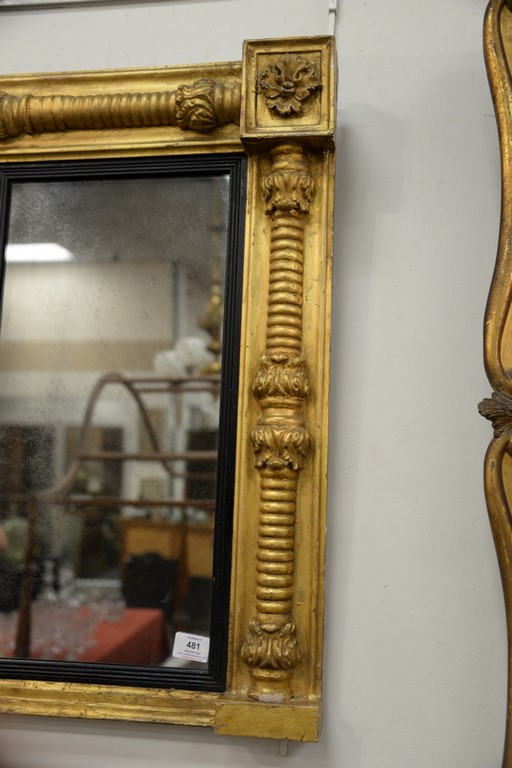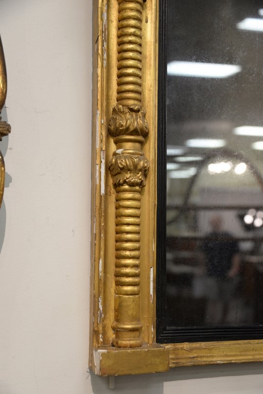Lot 481: Federal three part over the mantle mirror with column turned top over three part mirror flanked by columns and flowers. ht. 29in., w…