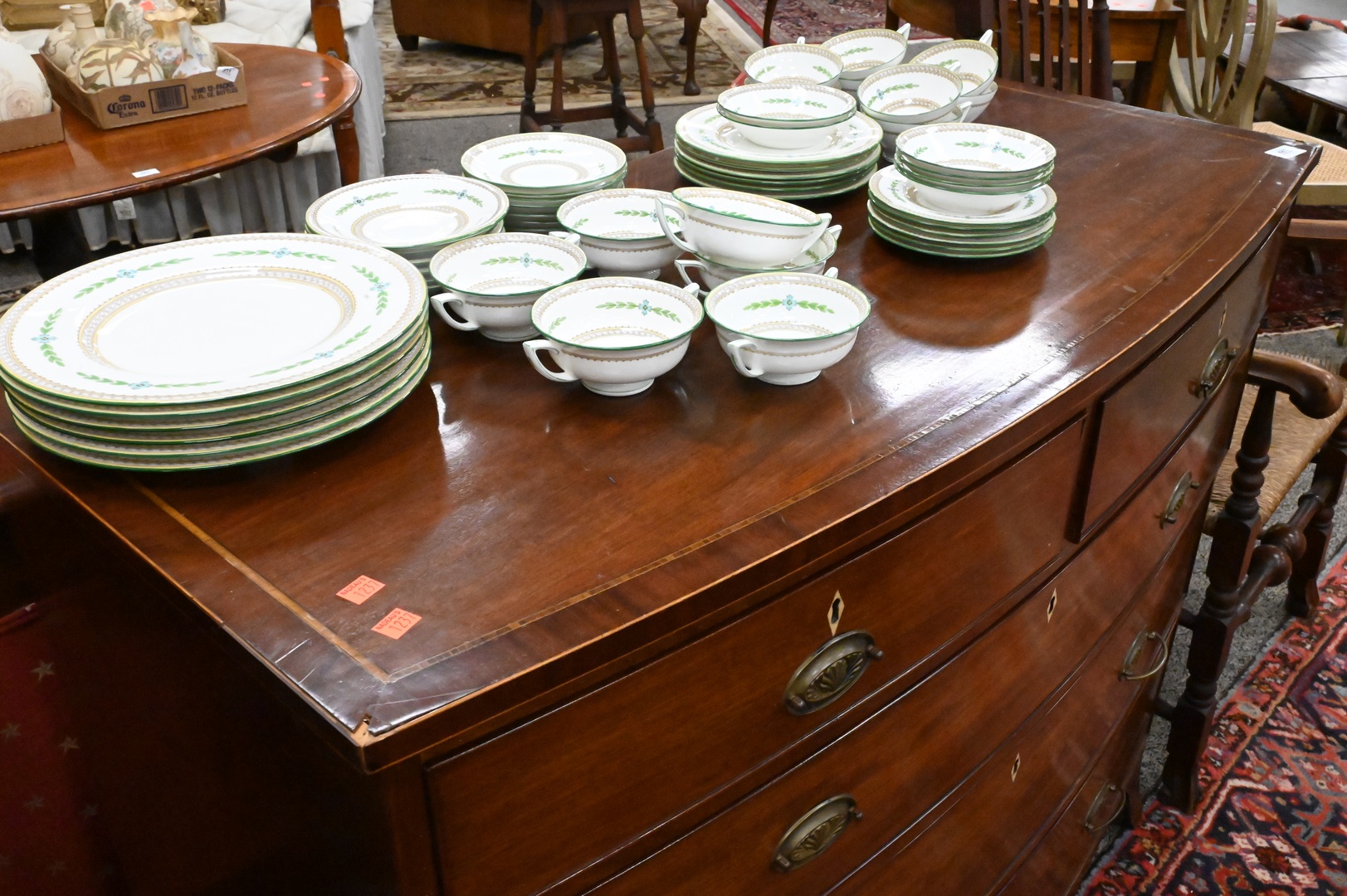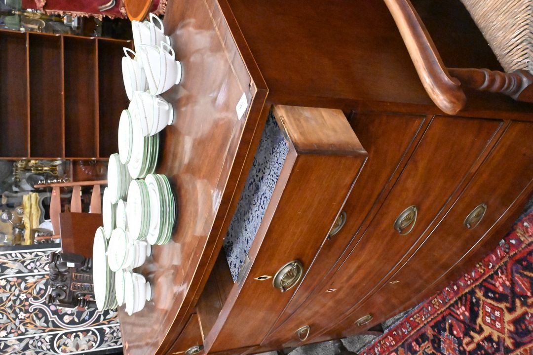 George III Mahogany Swell Front Chest, circa 1800, (two small chips in top), height 39 inches, top 22″ x 47″.