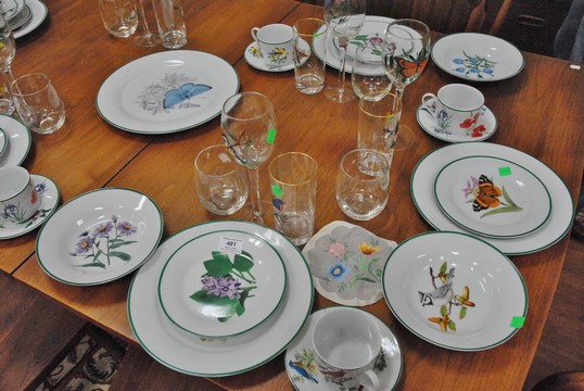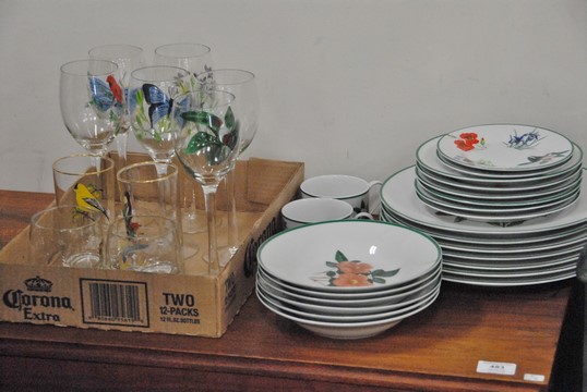 National Wildlife Federation china set along with hand painted glasses. 81 total pieces