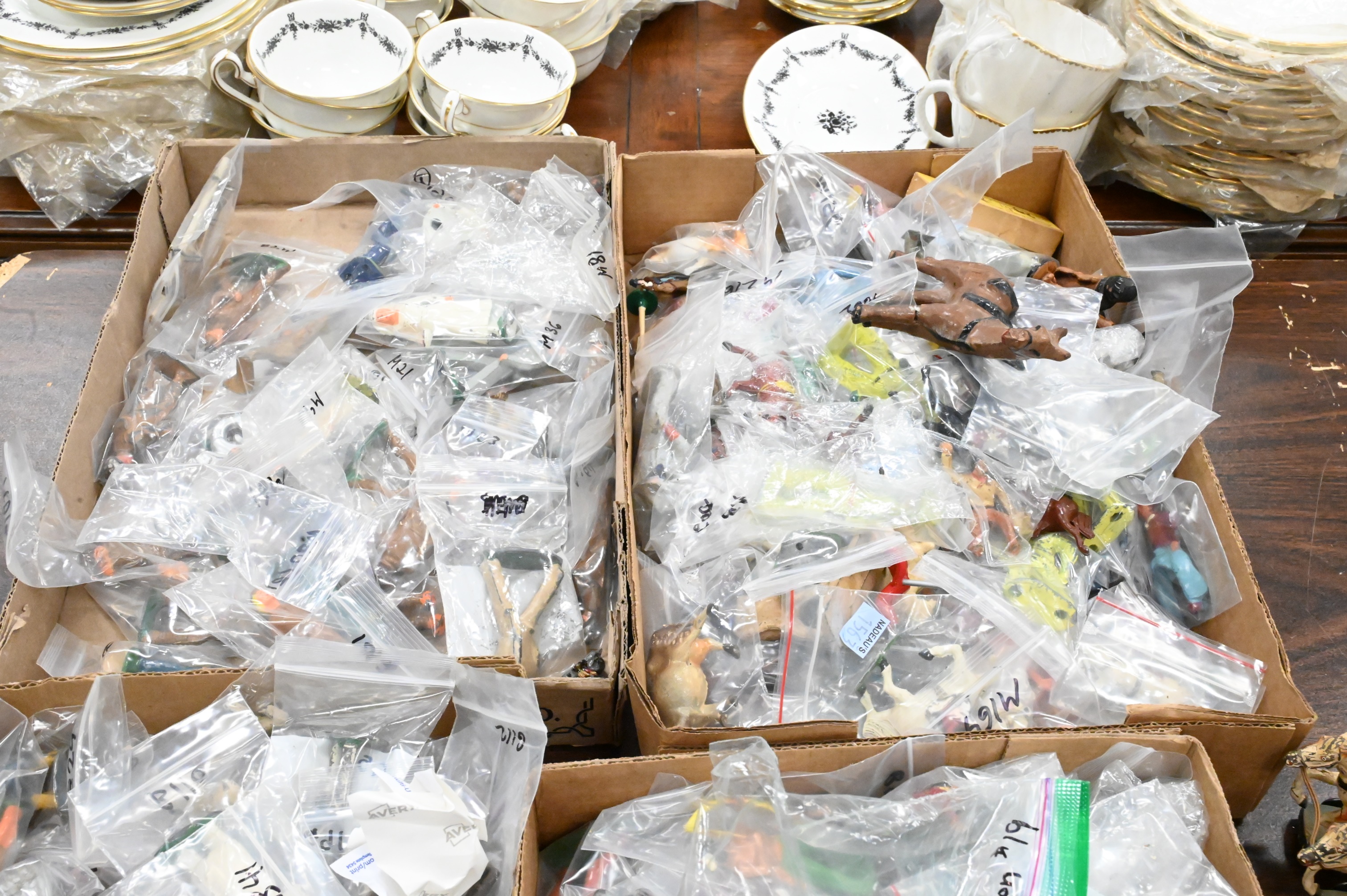 Lot 482: Four Box Lots of Plastic and Lead Toy Figurines