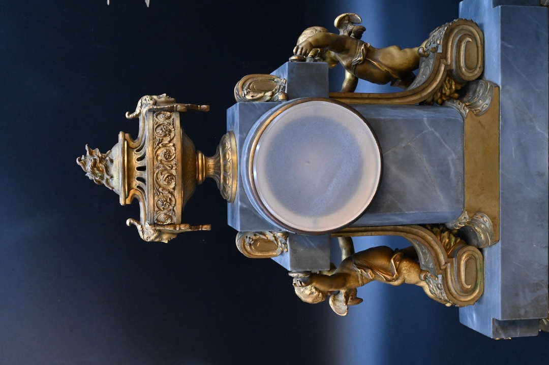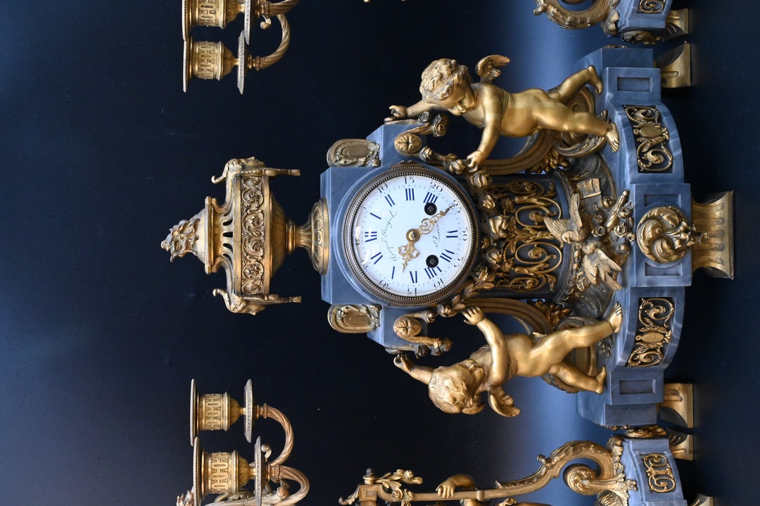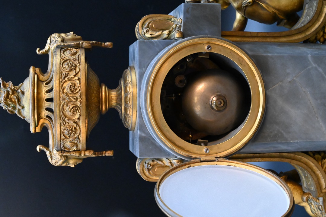 Lot 482: French Grey Marble and Gilt Bronze Figural Three-Piece Clock Set