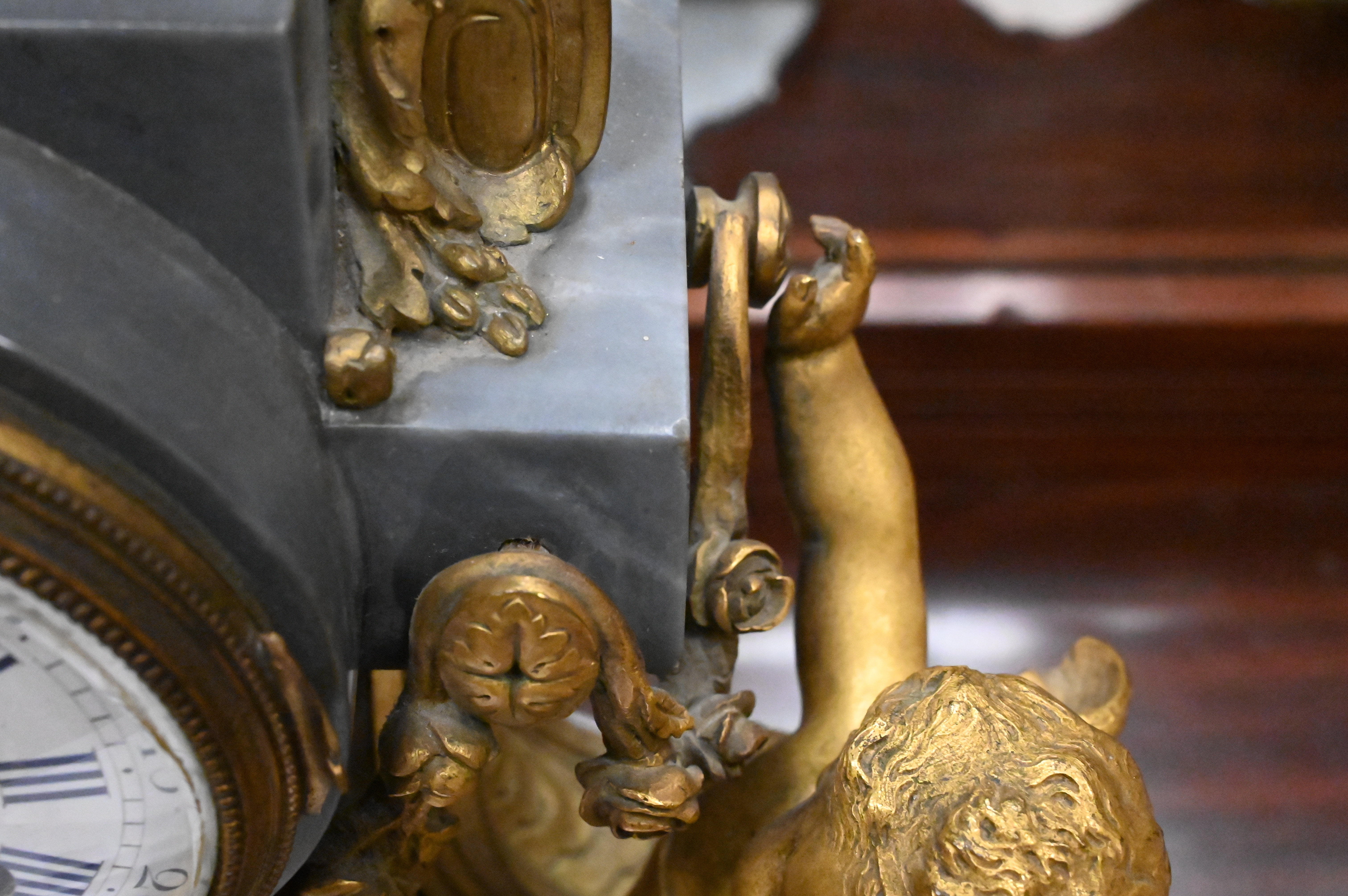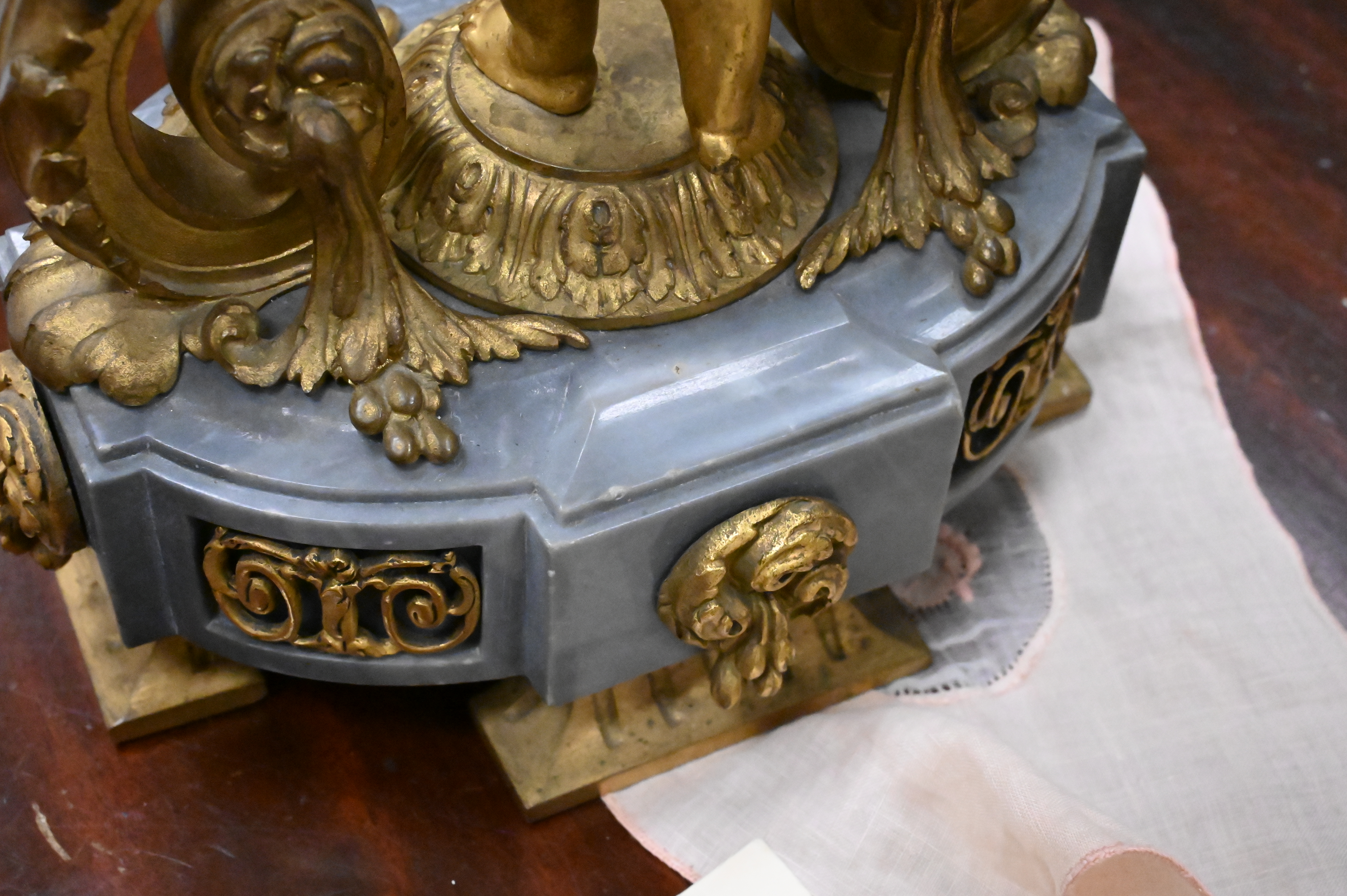 flanked by bronze putti figures