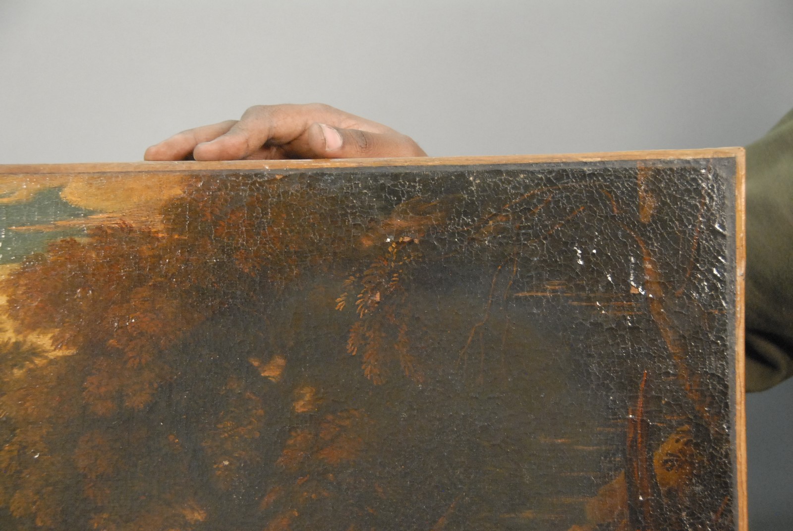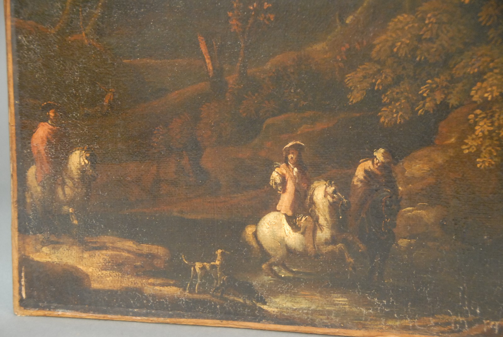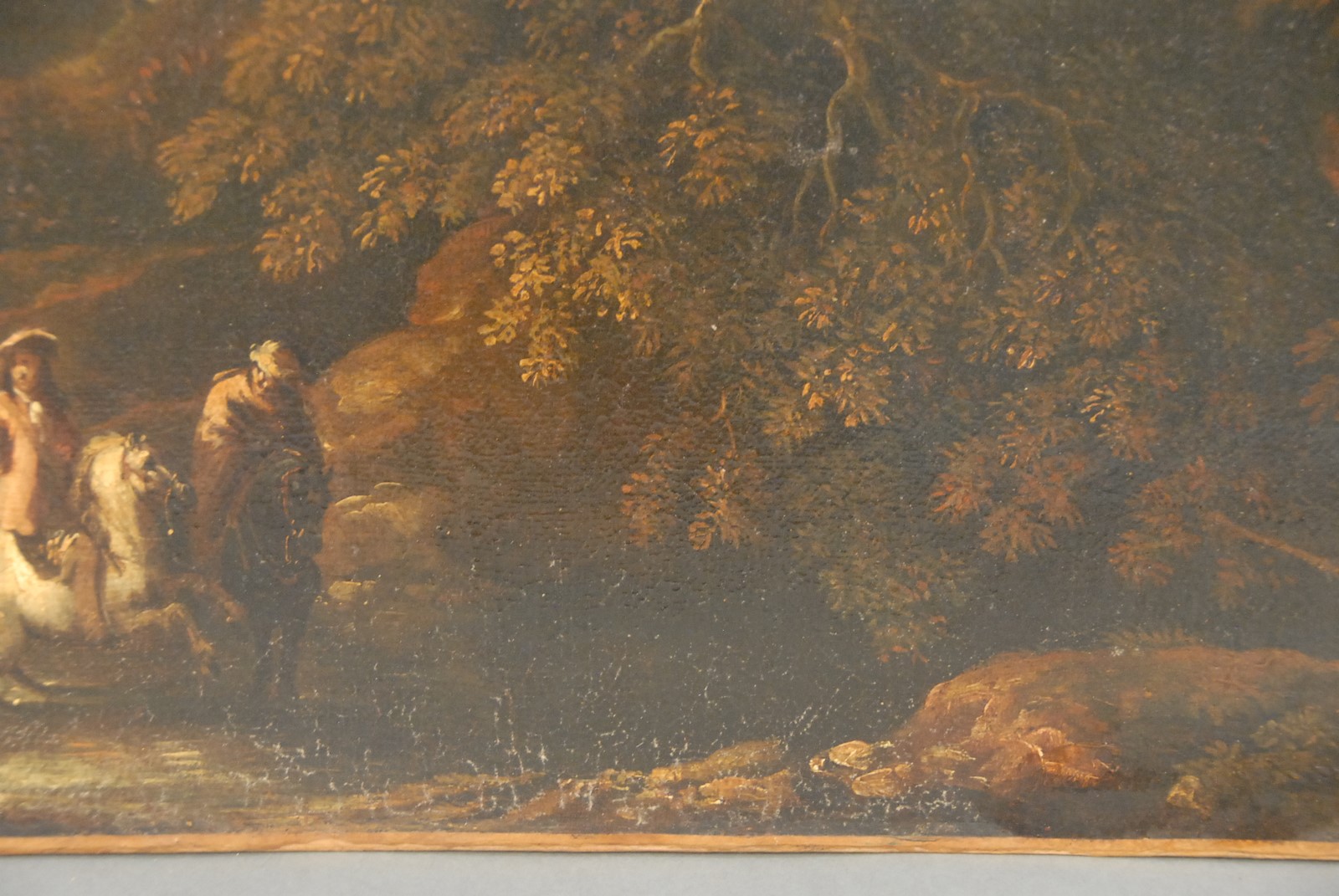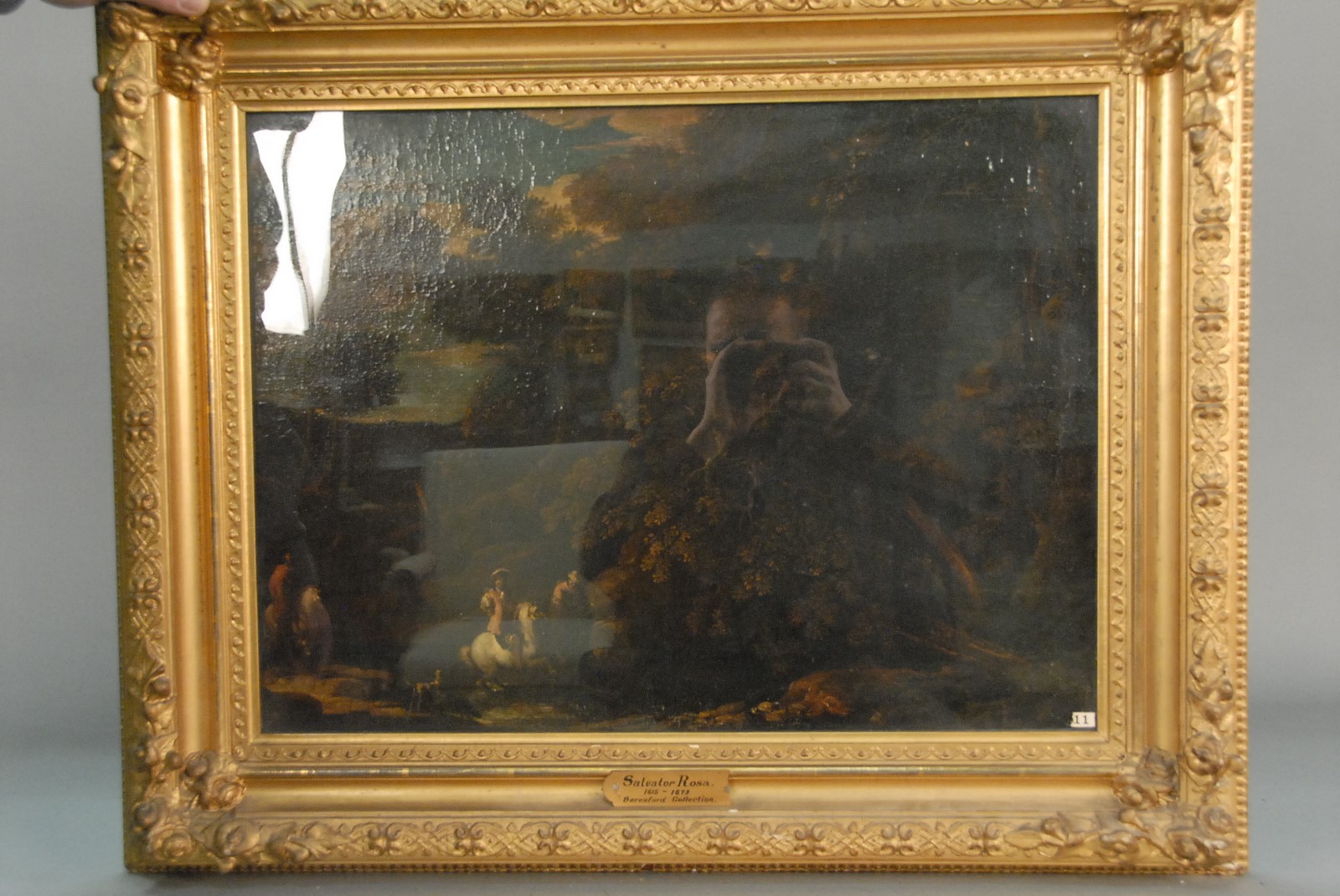 Lot 482: Old Master Circle of Salvator Rosa 1615-1673 LANDSCAPE WITH CAVALIERS ON HORSEBACK oil on canvas unsigned restretched and relined 19 x 26 Provenance: Originally from Beresford Collection