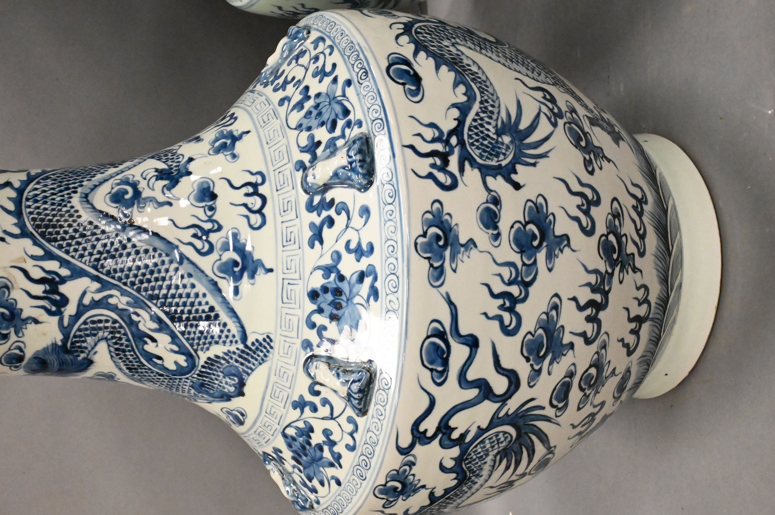 Pair of Large Palace Blue and White Chinese Porcelain Urns/Vases