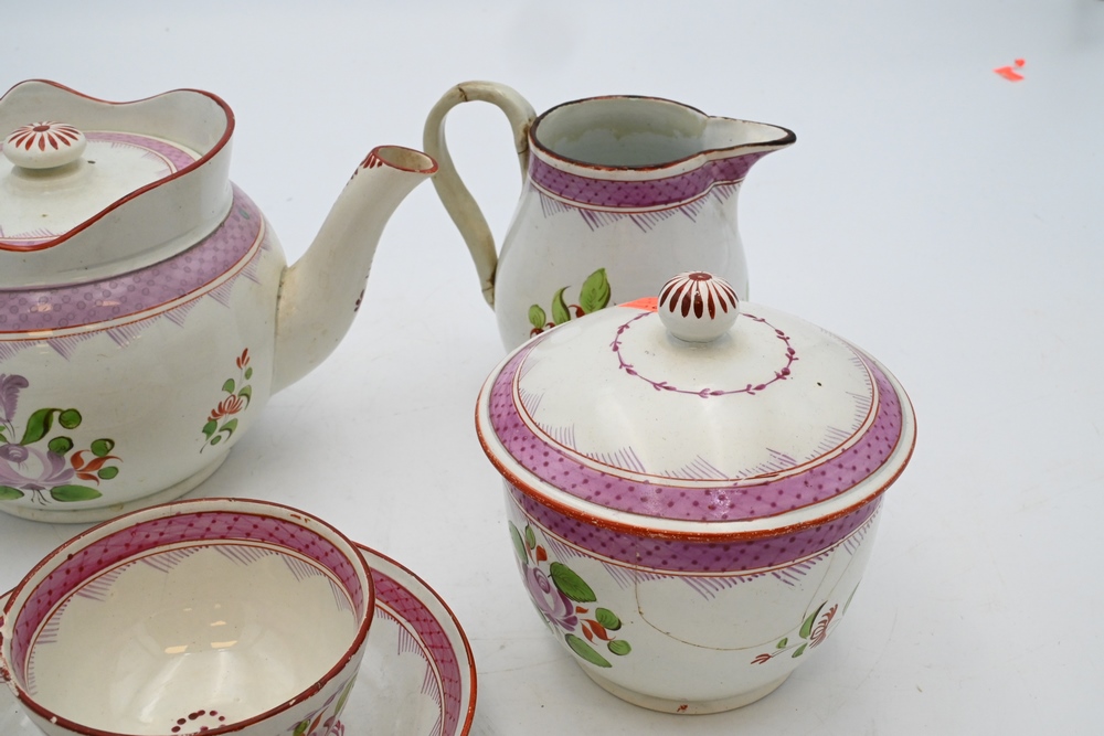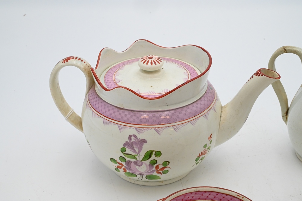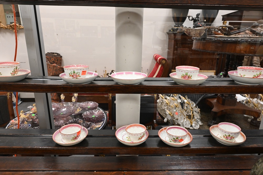 to include teapot, creamer, covered sugar bowl, ten saucers, and nine cups,