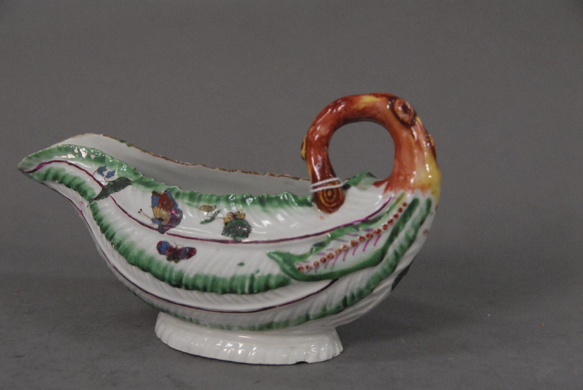 Lot 483: A Worcester cos lettuce sauceboat, molded with