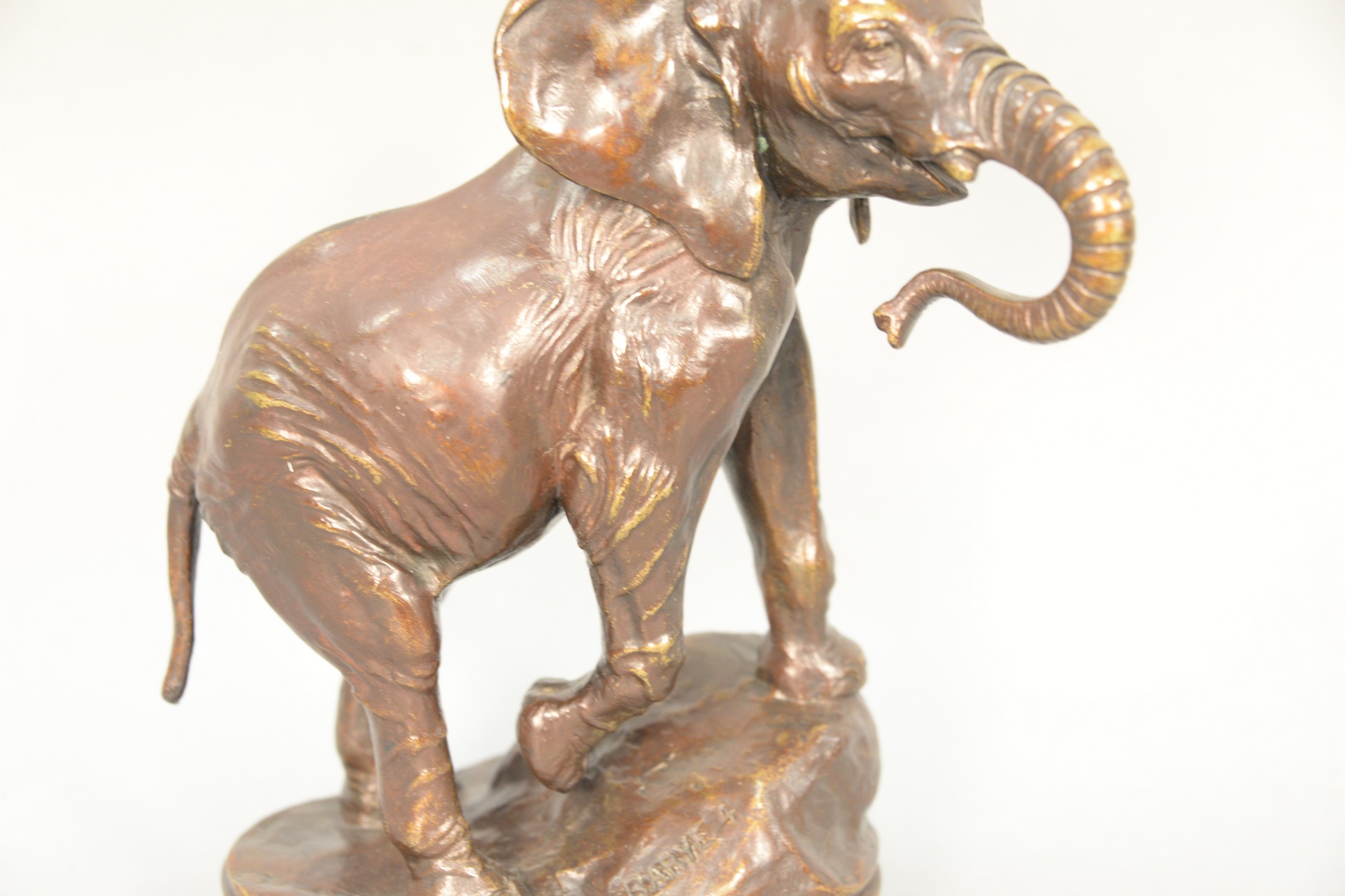 Lot 483: After Antoine-Louis Barye French, 1796 – 1875 climbing elephant bronze with brown patina inscribed on the base, Barye 4 he…