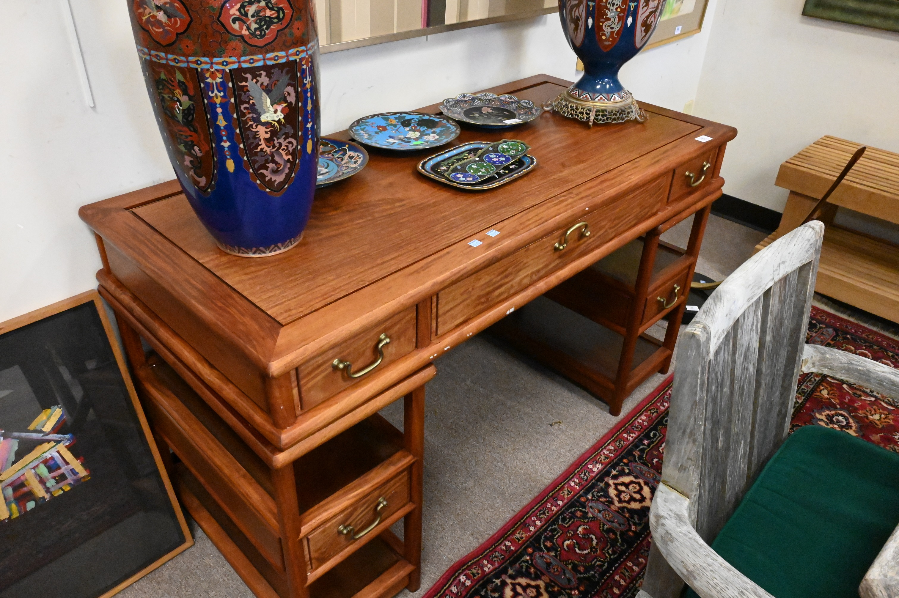 Lot 483: Chinese Hardwood Desk in Three Parts