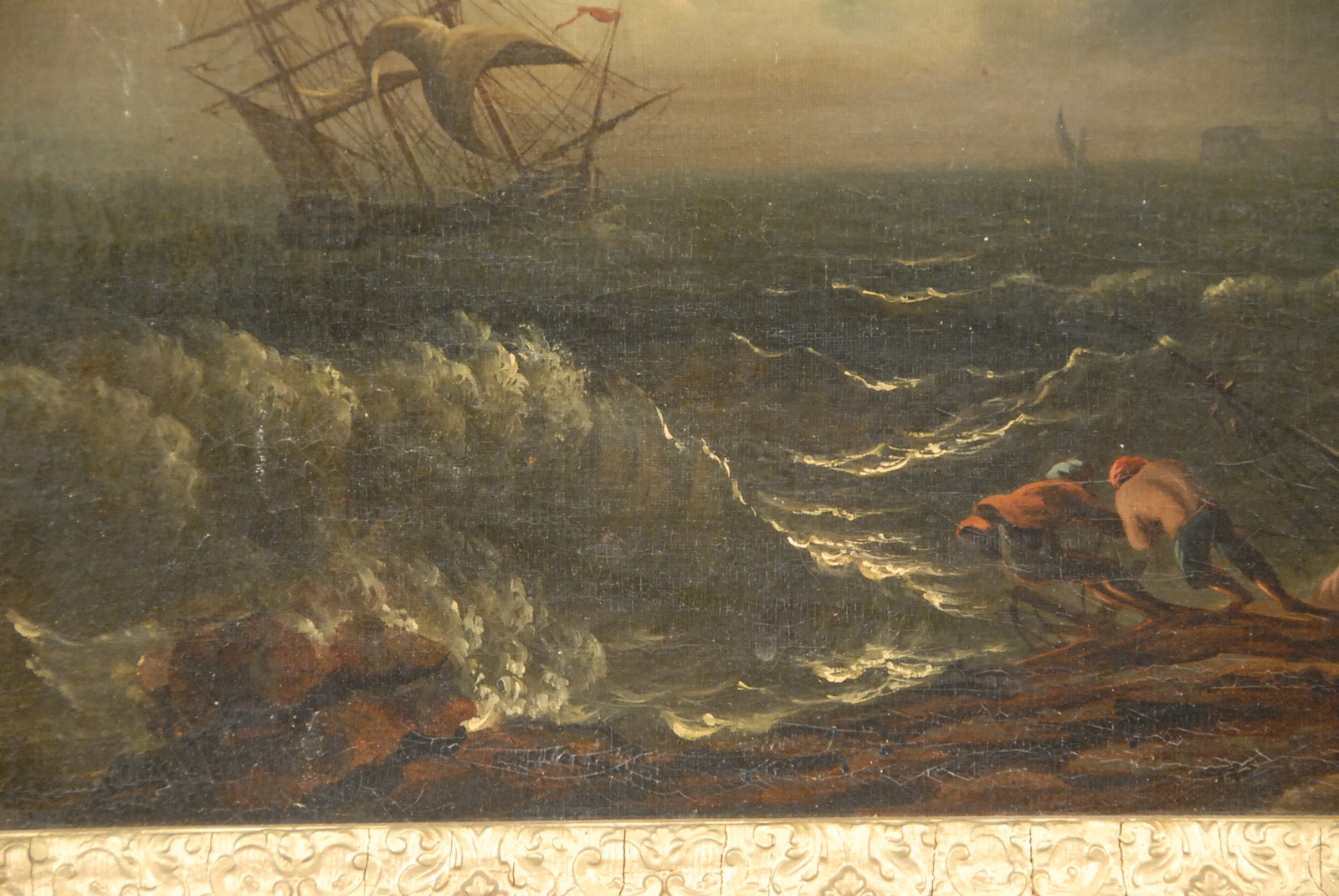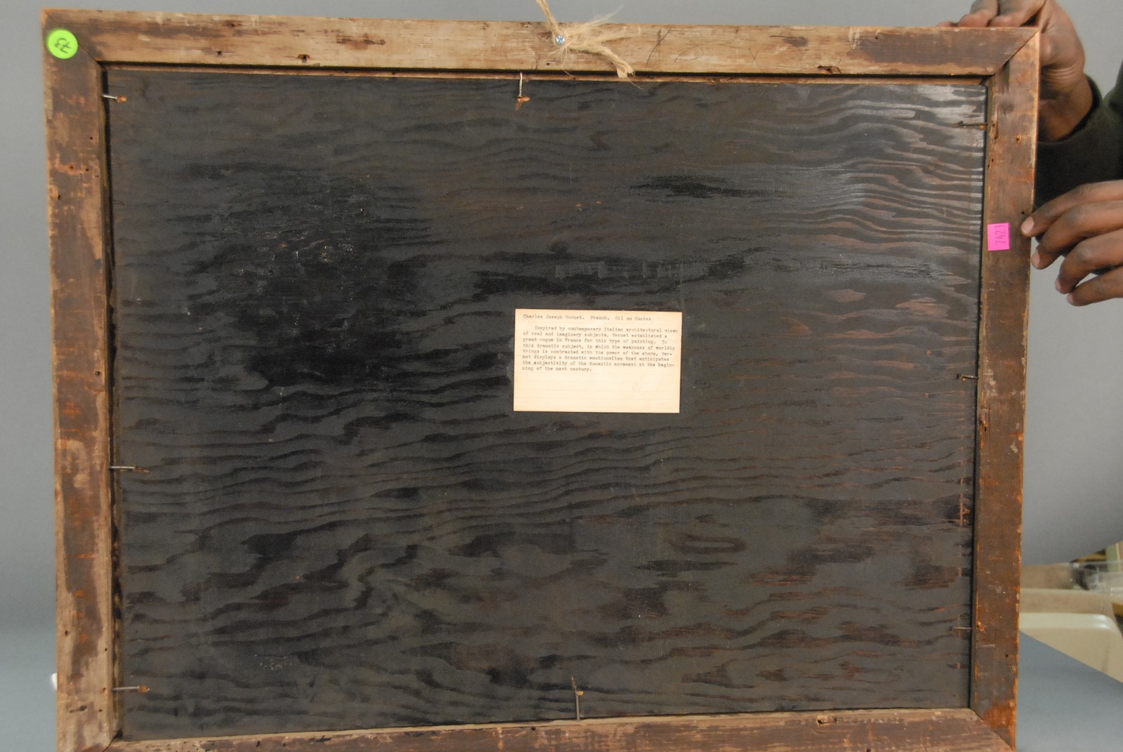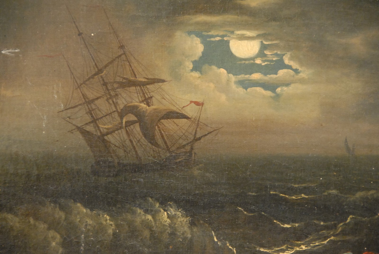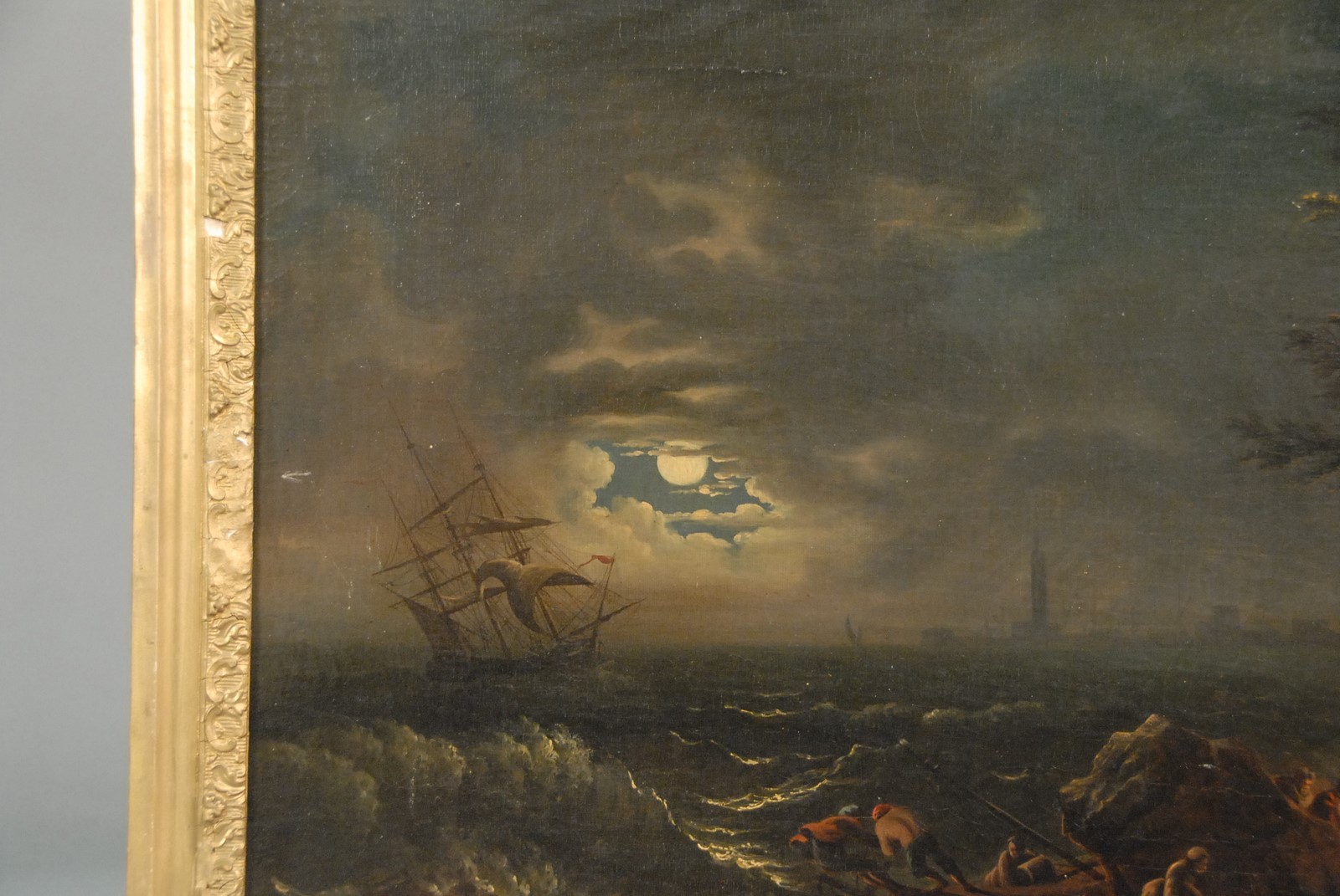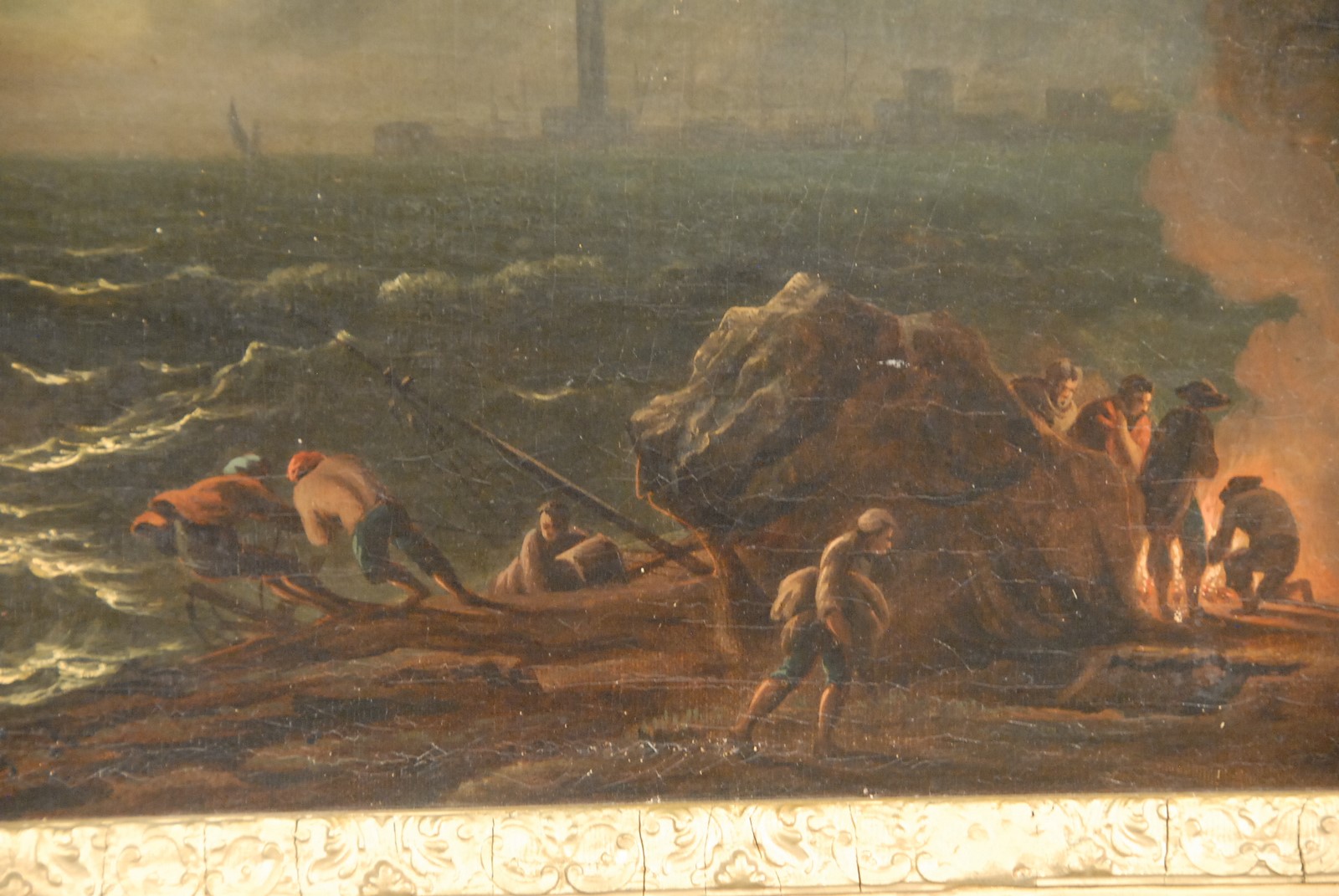 Lot 483: Circle of Claude-Joseph Vernet 1714-1789 STORMY NIGHT SHIPWRECK oil on canvas mounted on plywood unsigned 19 x 25 1/2