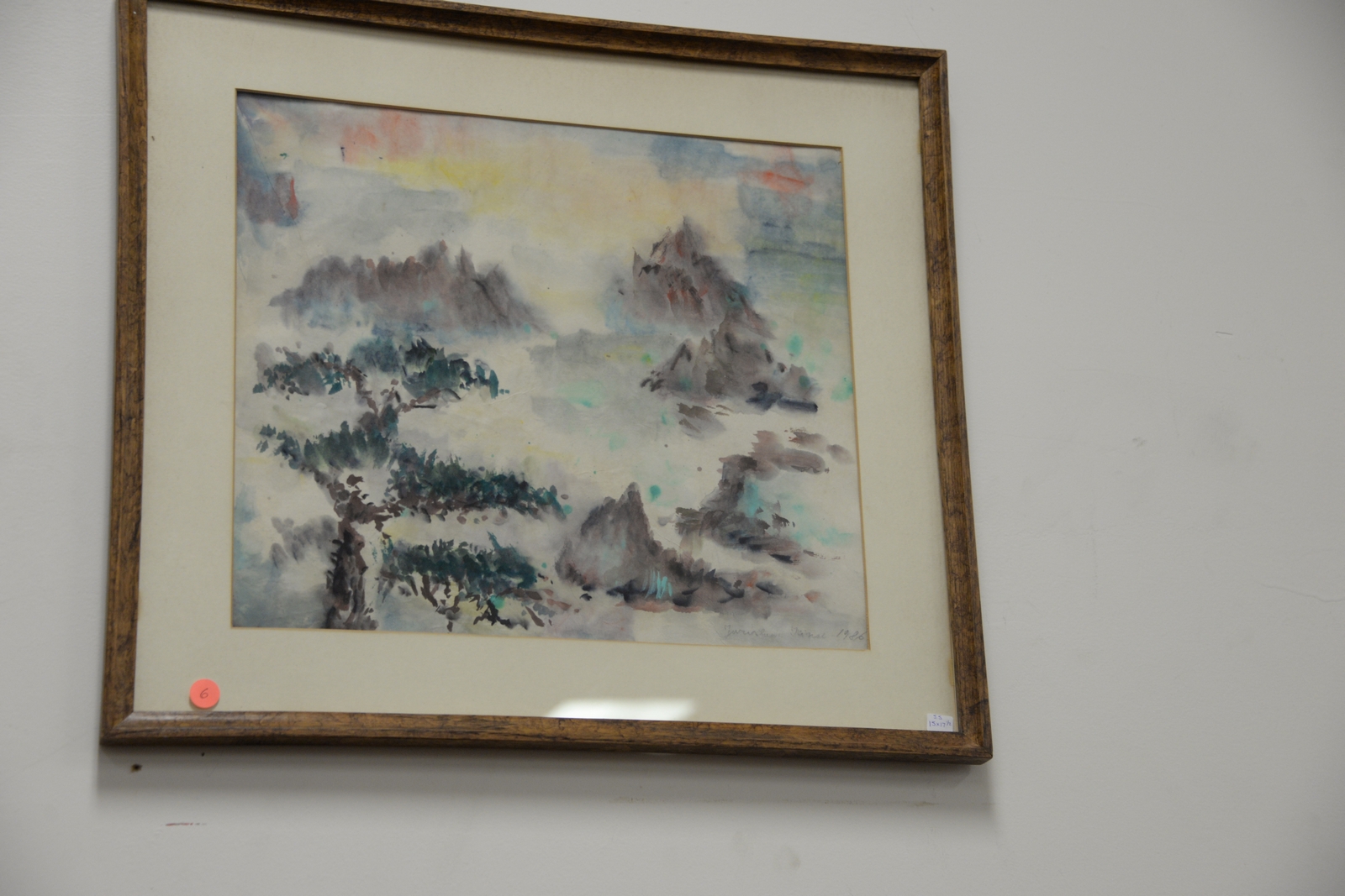 Group of six Russian watercolors and prints to include Mykola Vasyl Krychevsky 1898-1961 canal scene, watercolor of scrolling pine tree, two sunset landscapes signed V. Krychevsky, mountainous landscape watercolor signed lower right Jaroslava Kinal, and print of flowers after Mock. sight sizes 12 x 10 to 15 x 20