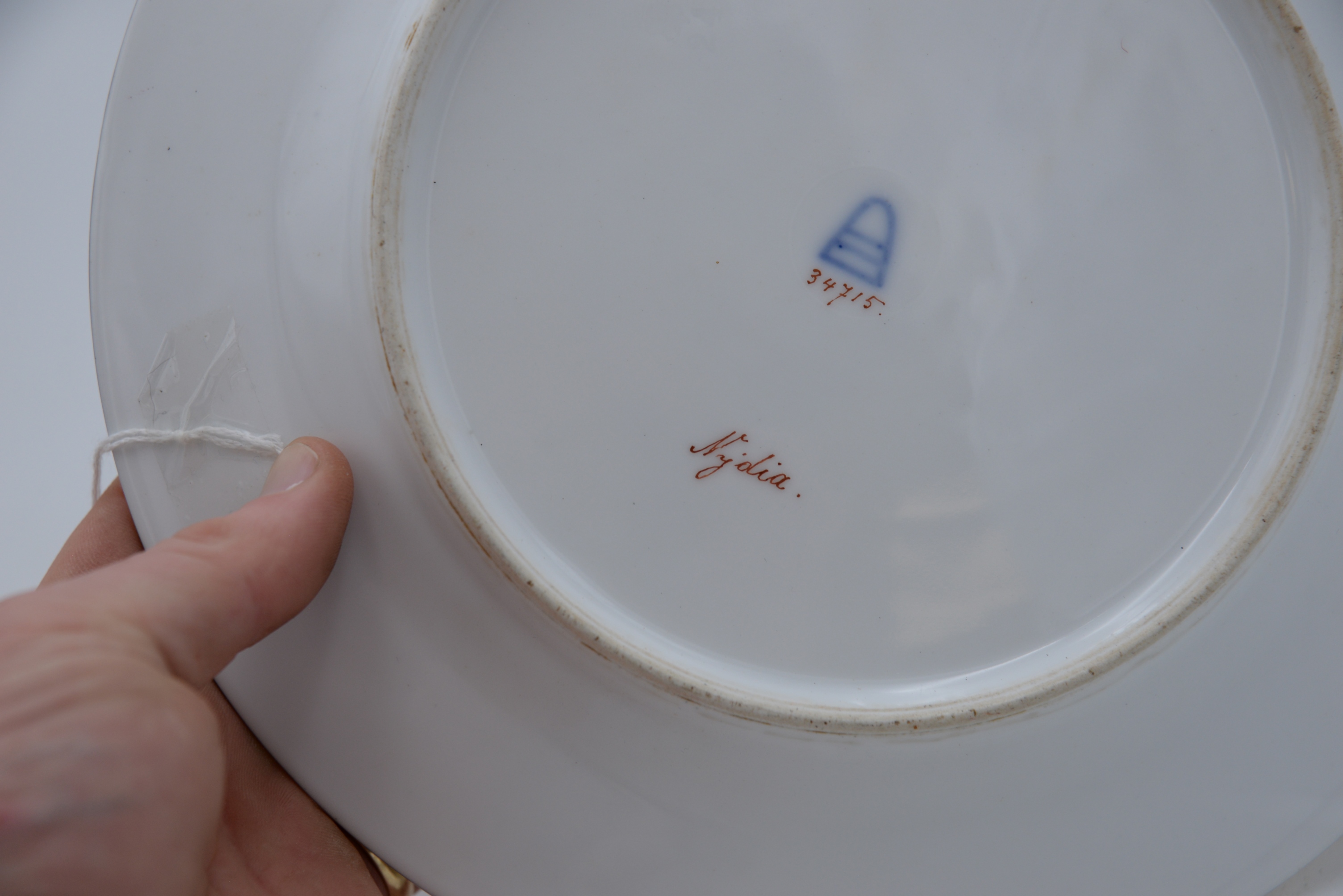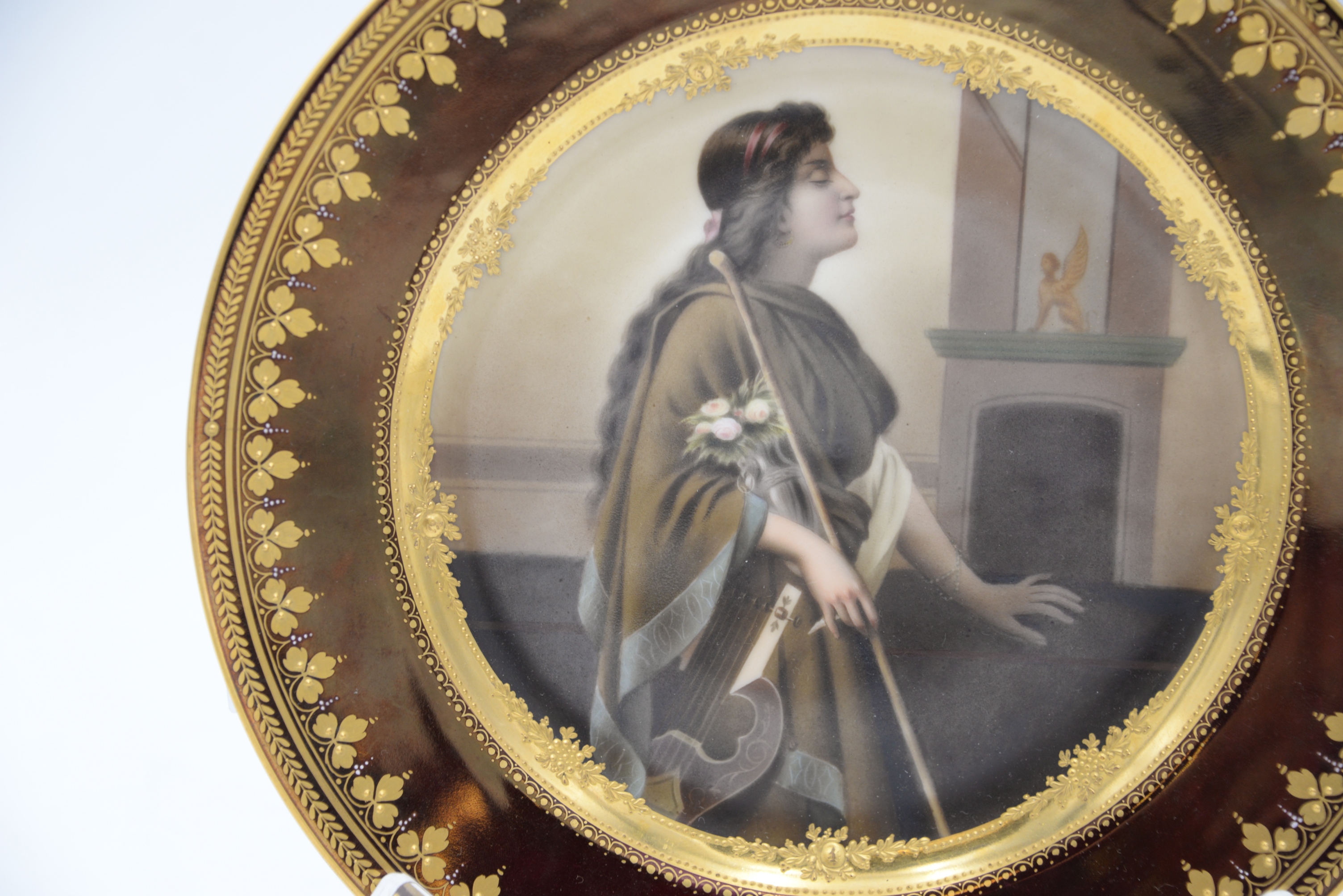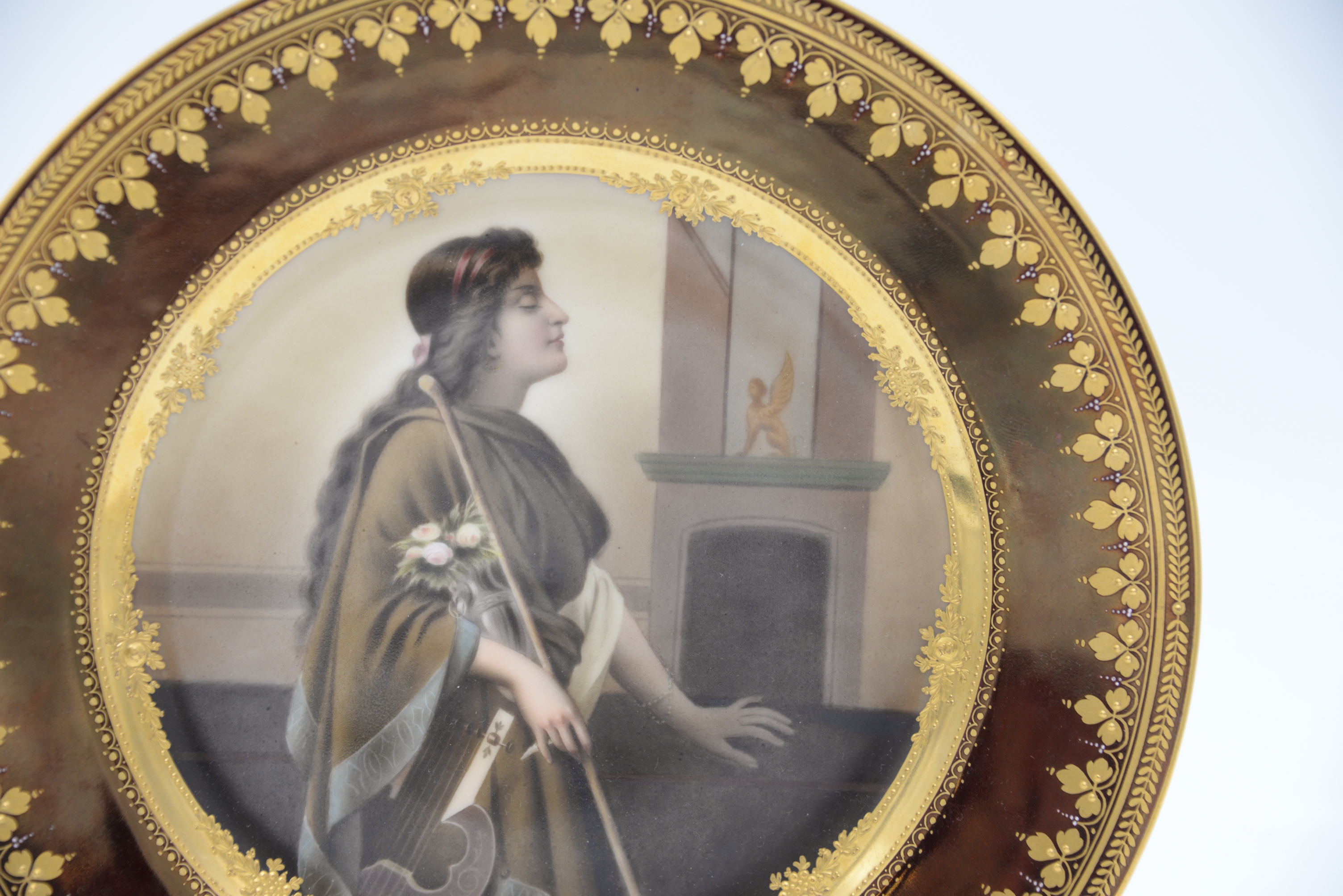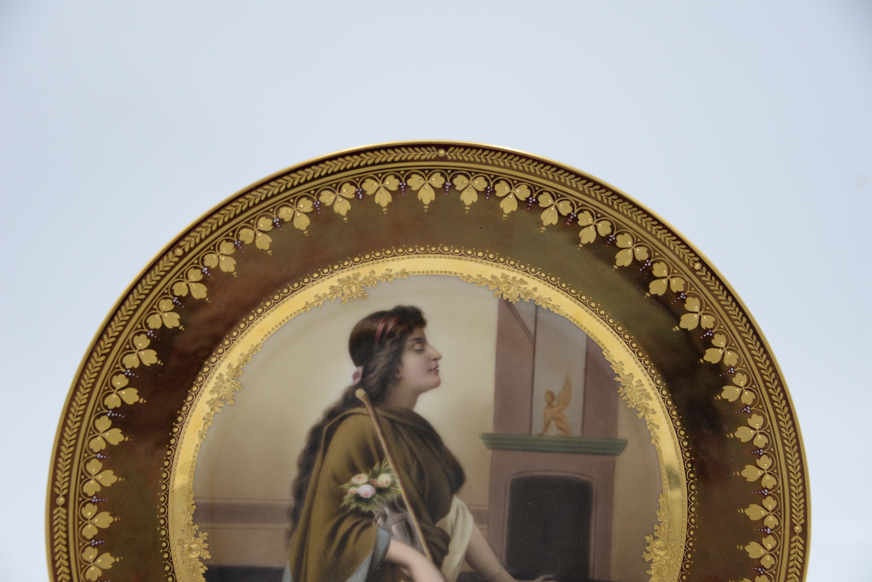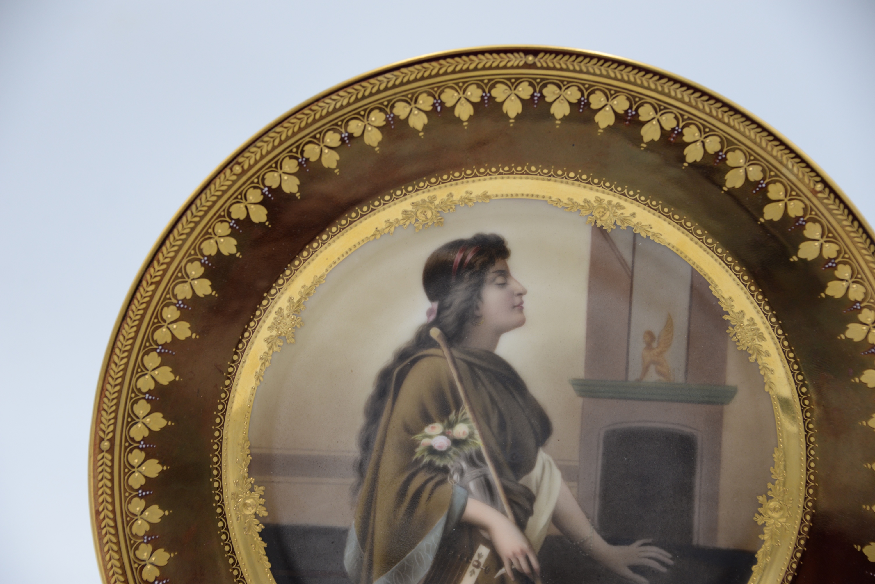 Royal Vienna Portrait Plate, “Nydia”, woman holding instrument, marked on bottom, diameter 9 1/2 inches.