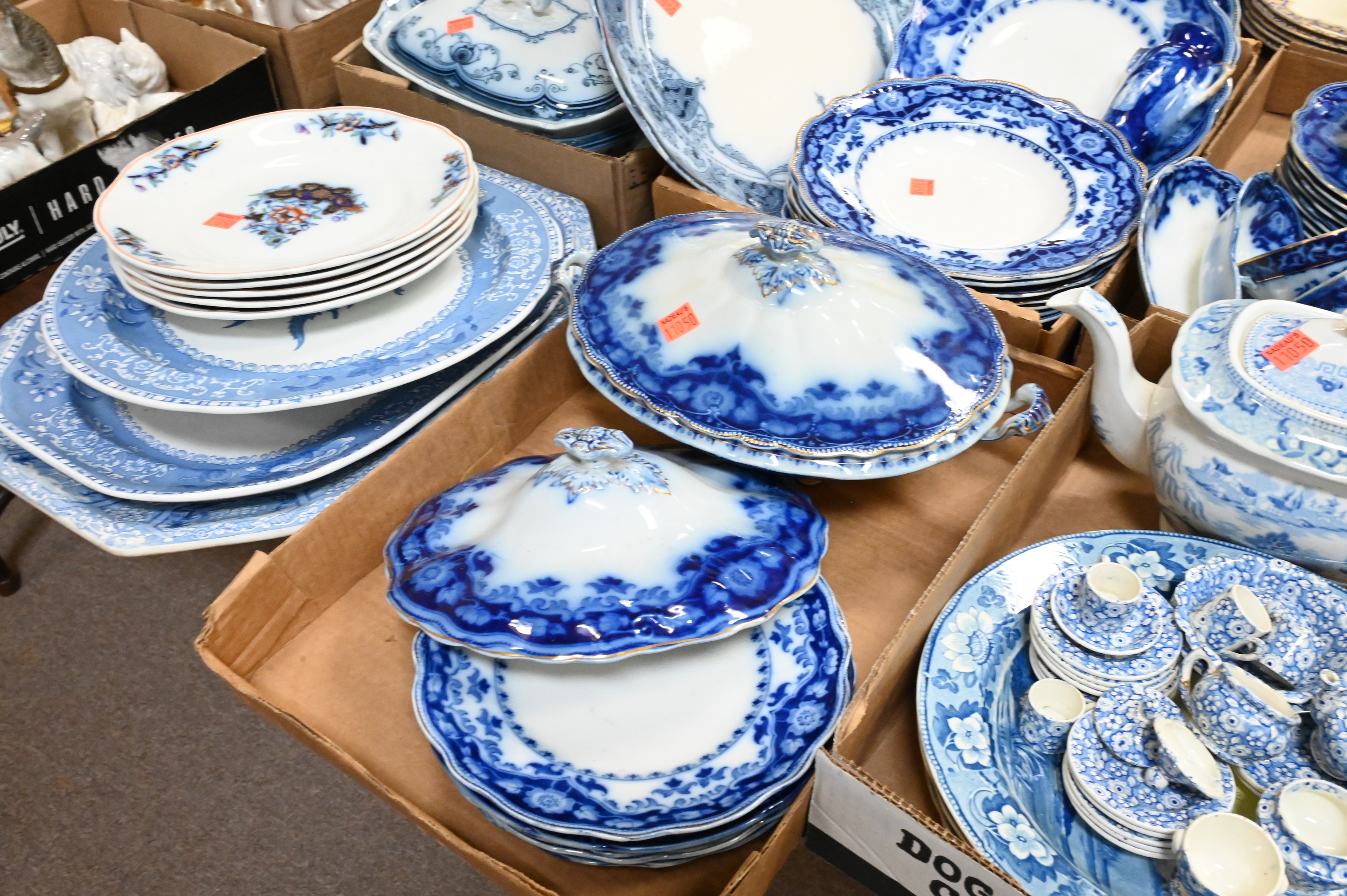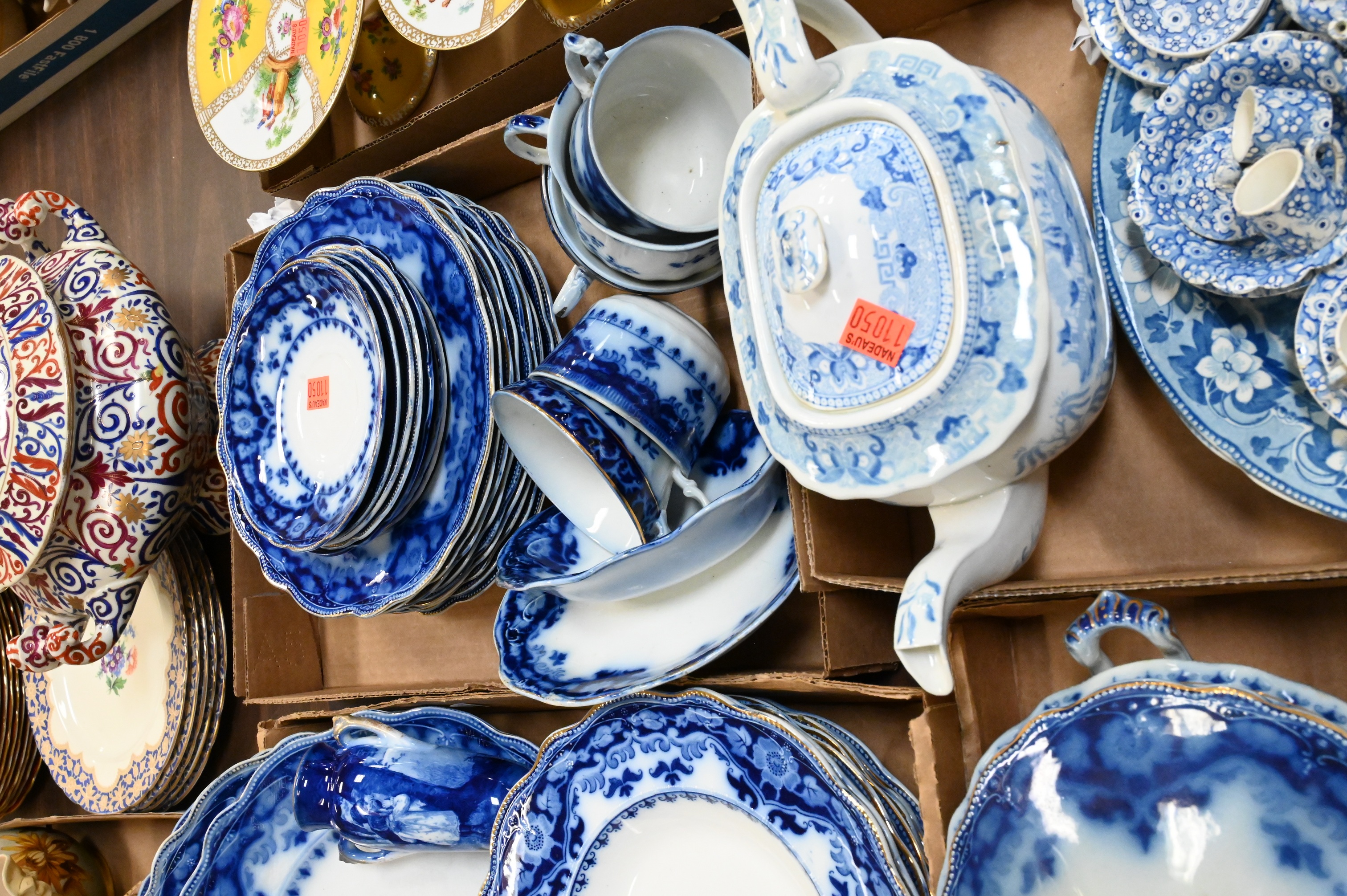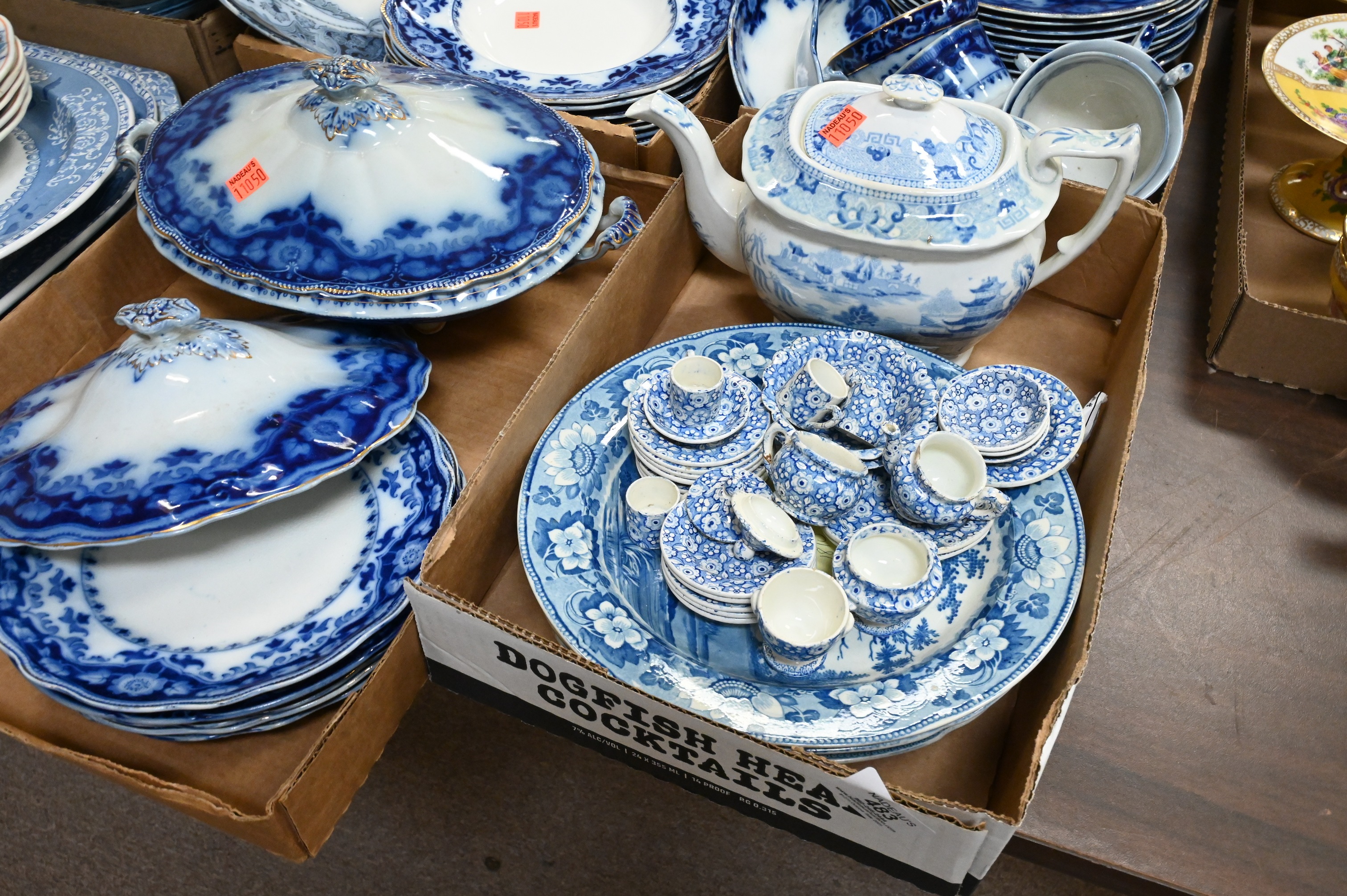 Lot 483: Six Tray Lots of Staffordshire Blue and White Transferware and Flow Blue