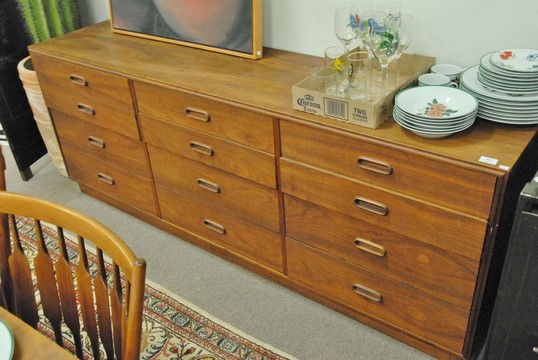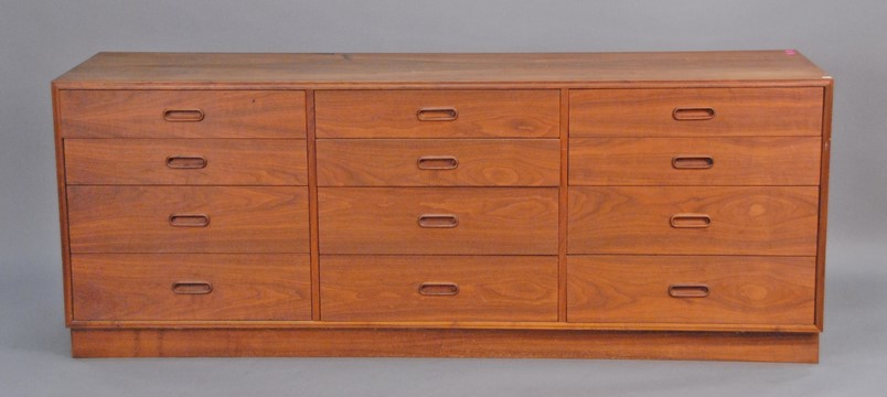 Twelve drawer walnut dresser, ht. 30in., lg. 77 1/2in., dp. 18in.