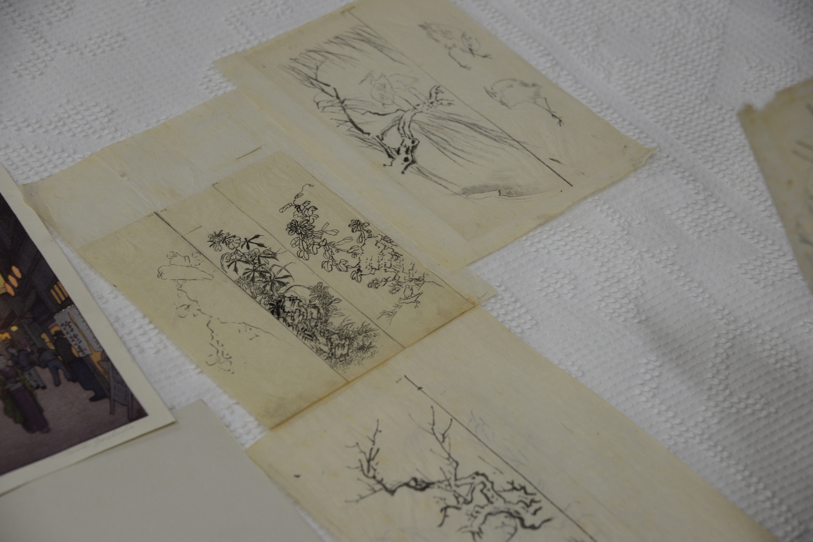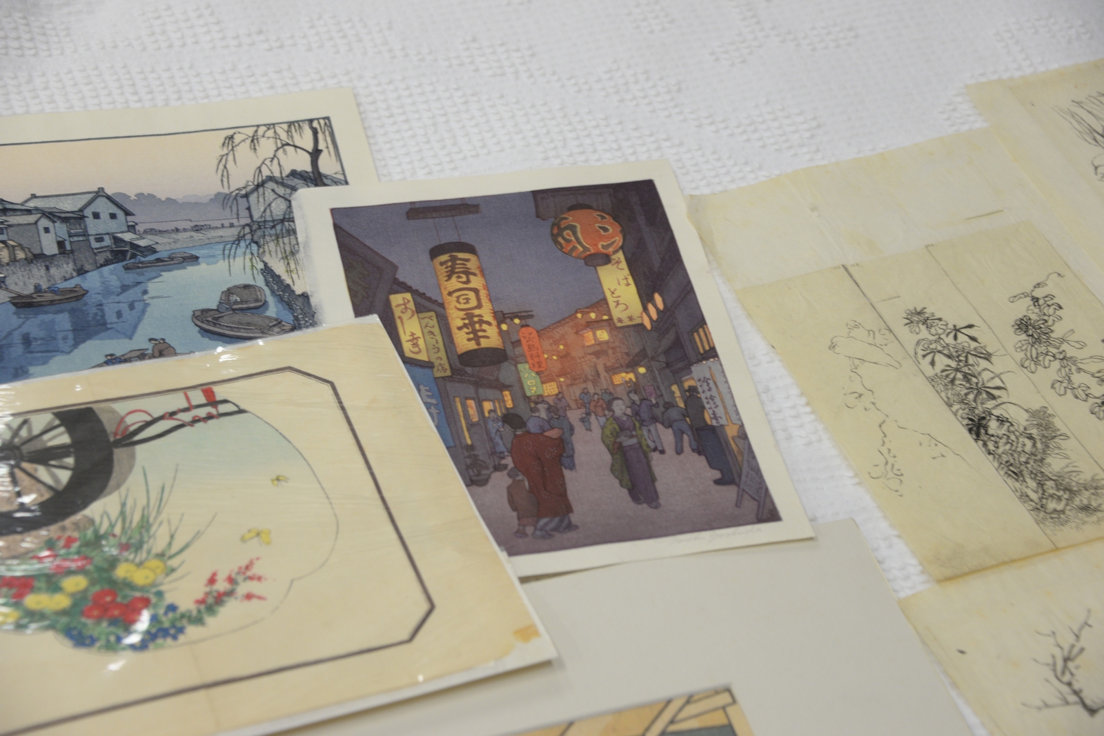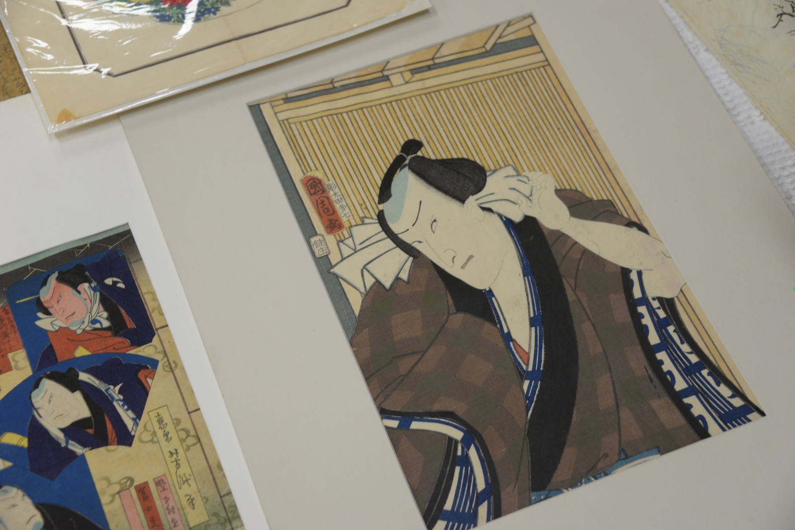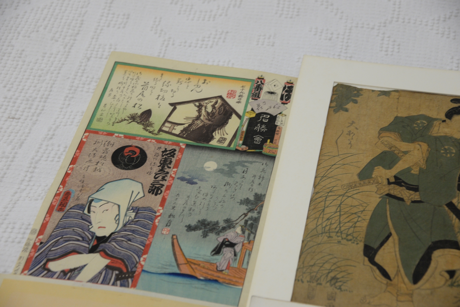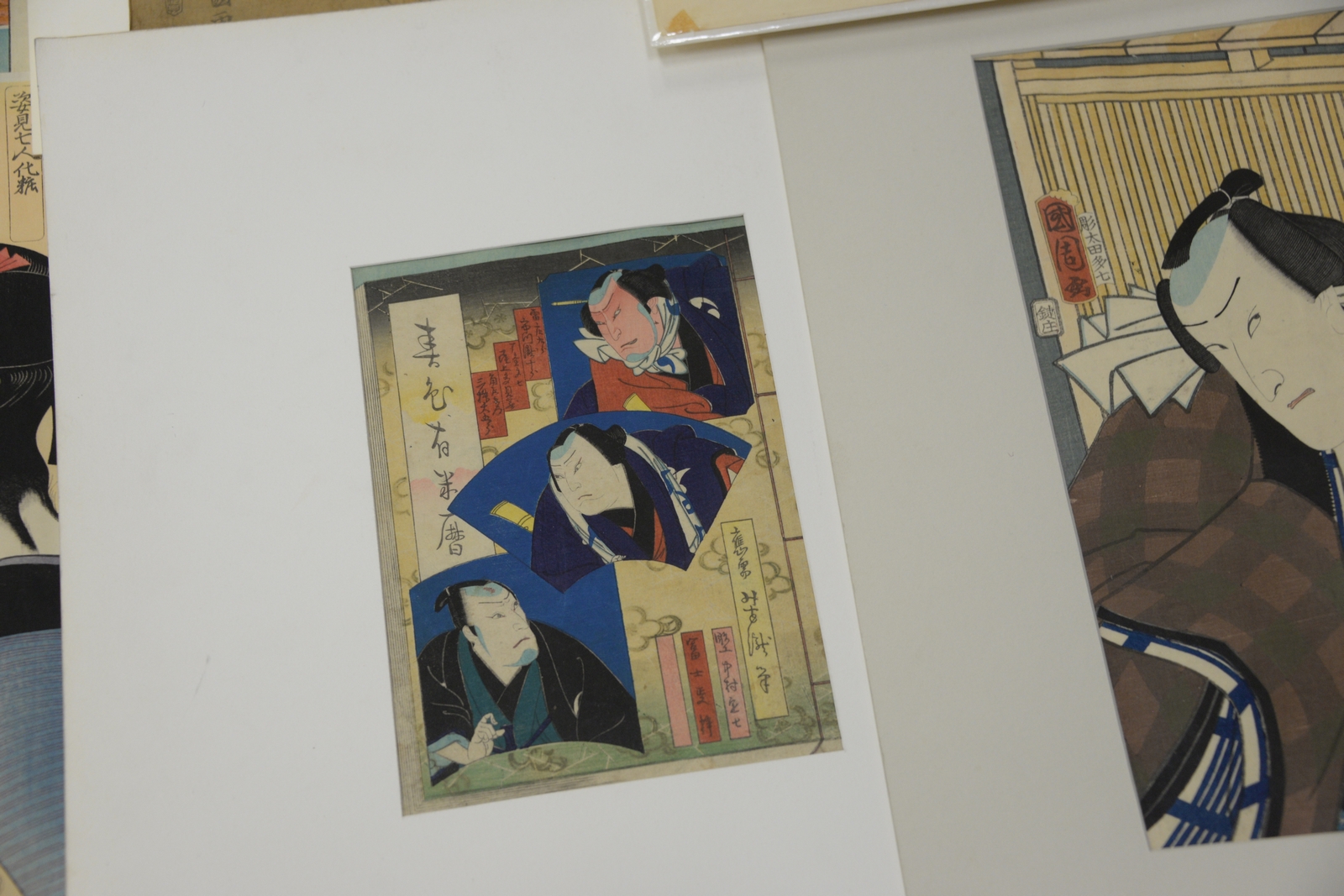 Lot 484: Group of twelve unframed woodblock prints, Yoshitaki Osaka School, Kunichika Japanese, etc. 10 1/2 x 8 to 15 1/4 x 10 1/4