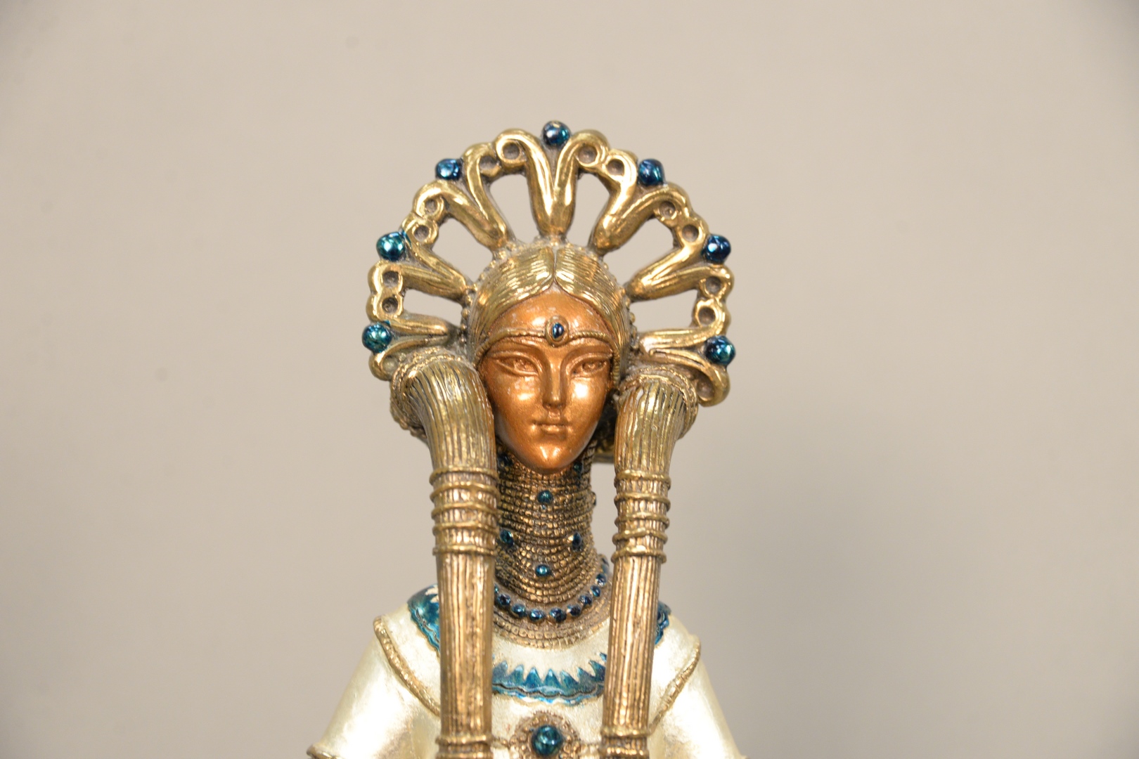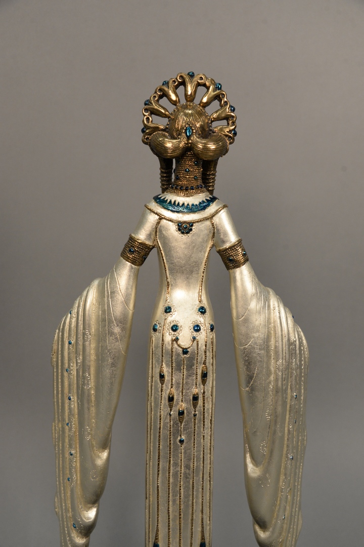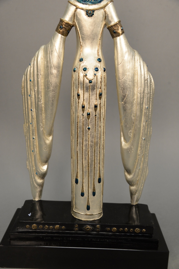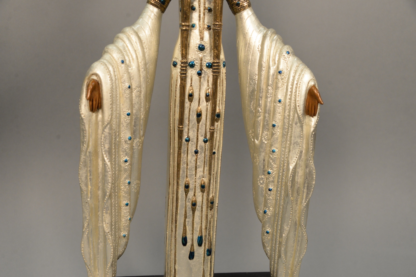 Lot 484: Romain Erte De Tirtoff 1892 – 1990 Byzantine painted bronze Art Deco female figure inscribed on the back of the base 1987 Chal…