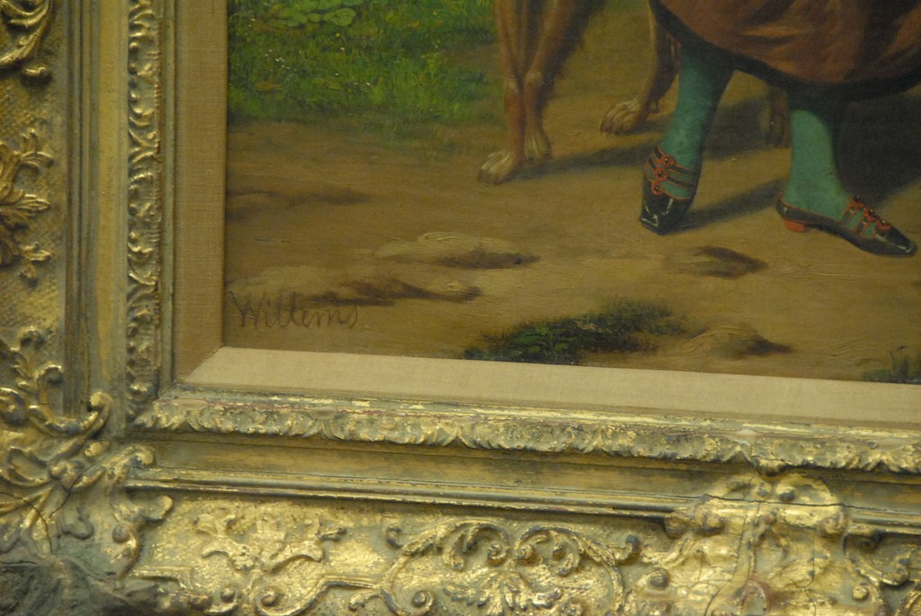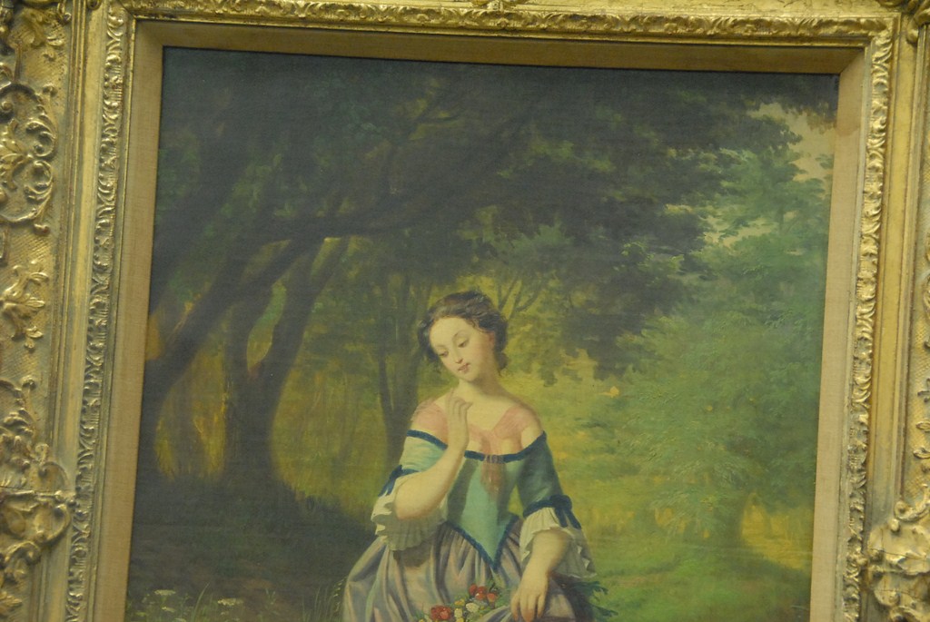 Lot 485: Louis Willems 1820-1899 PICKING FLOWERS oil on canvas signed lower left Willems old mark on stretcher L Willem…