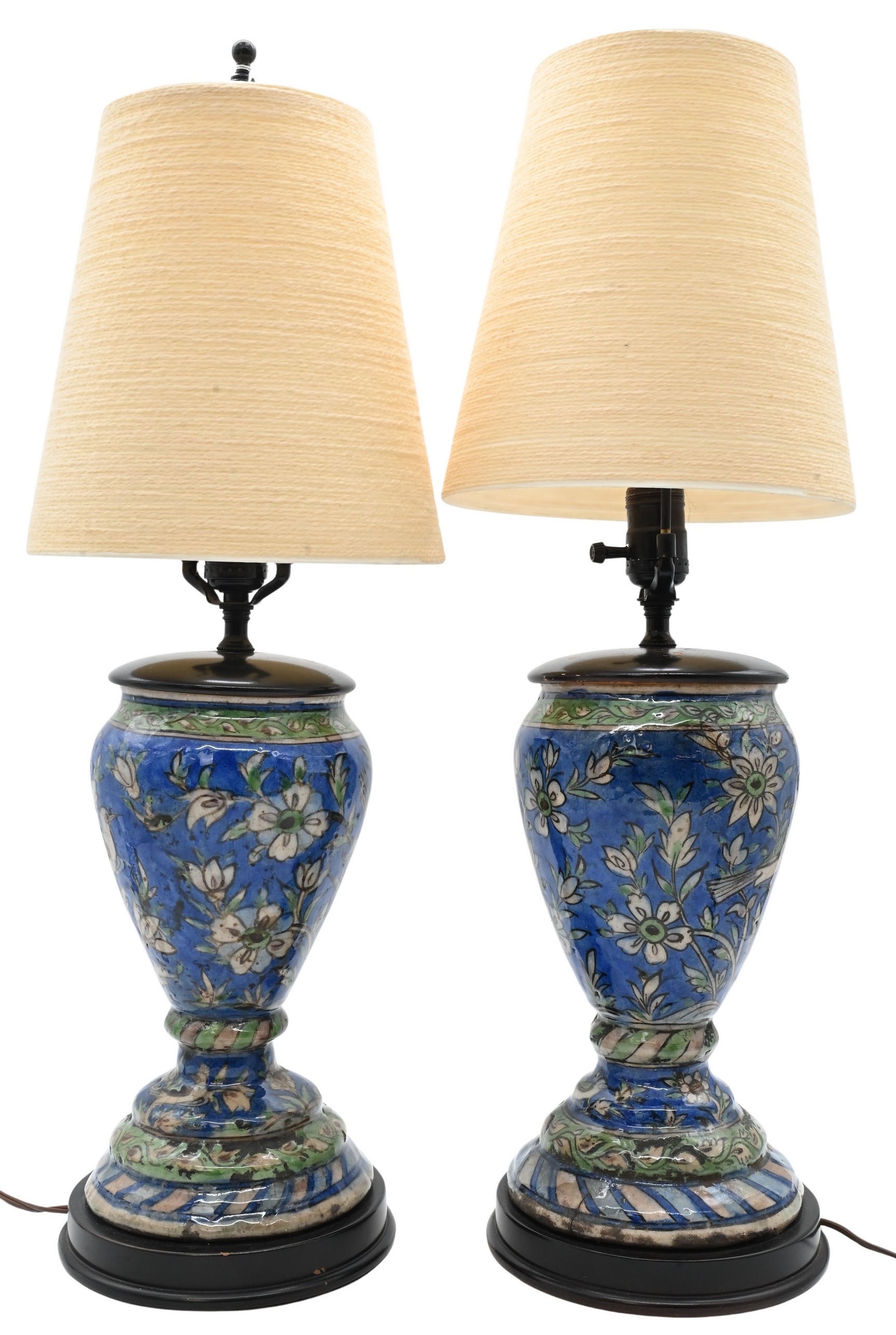 Pair of Iznik Style Pottery Vases Mounted as Lamps