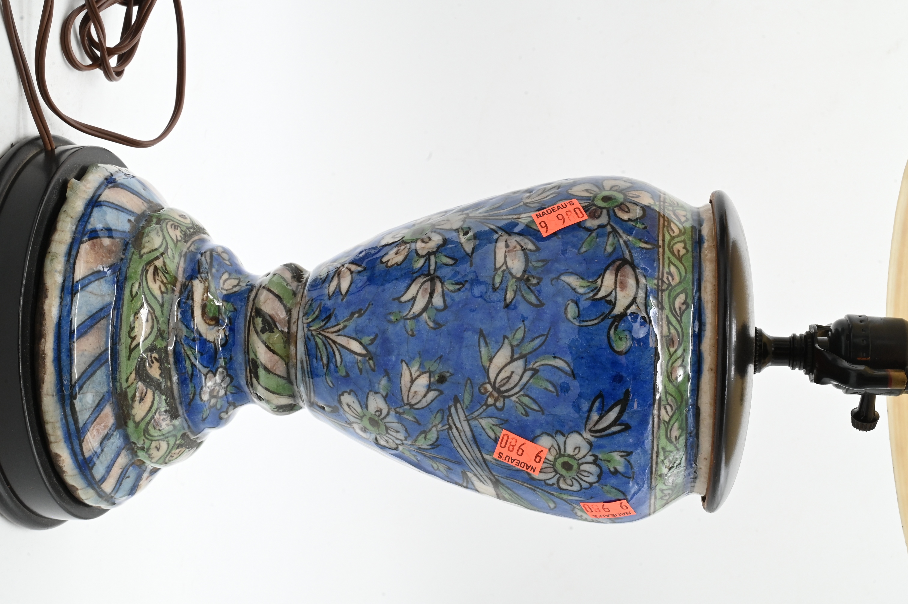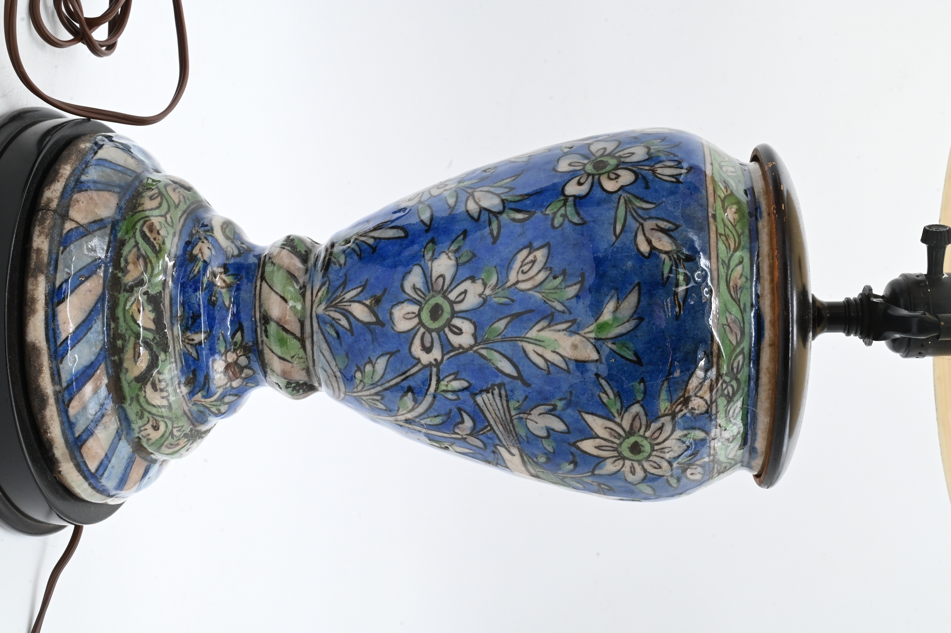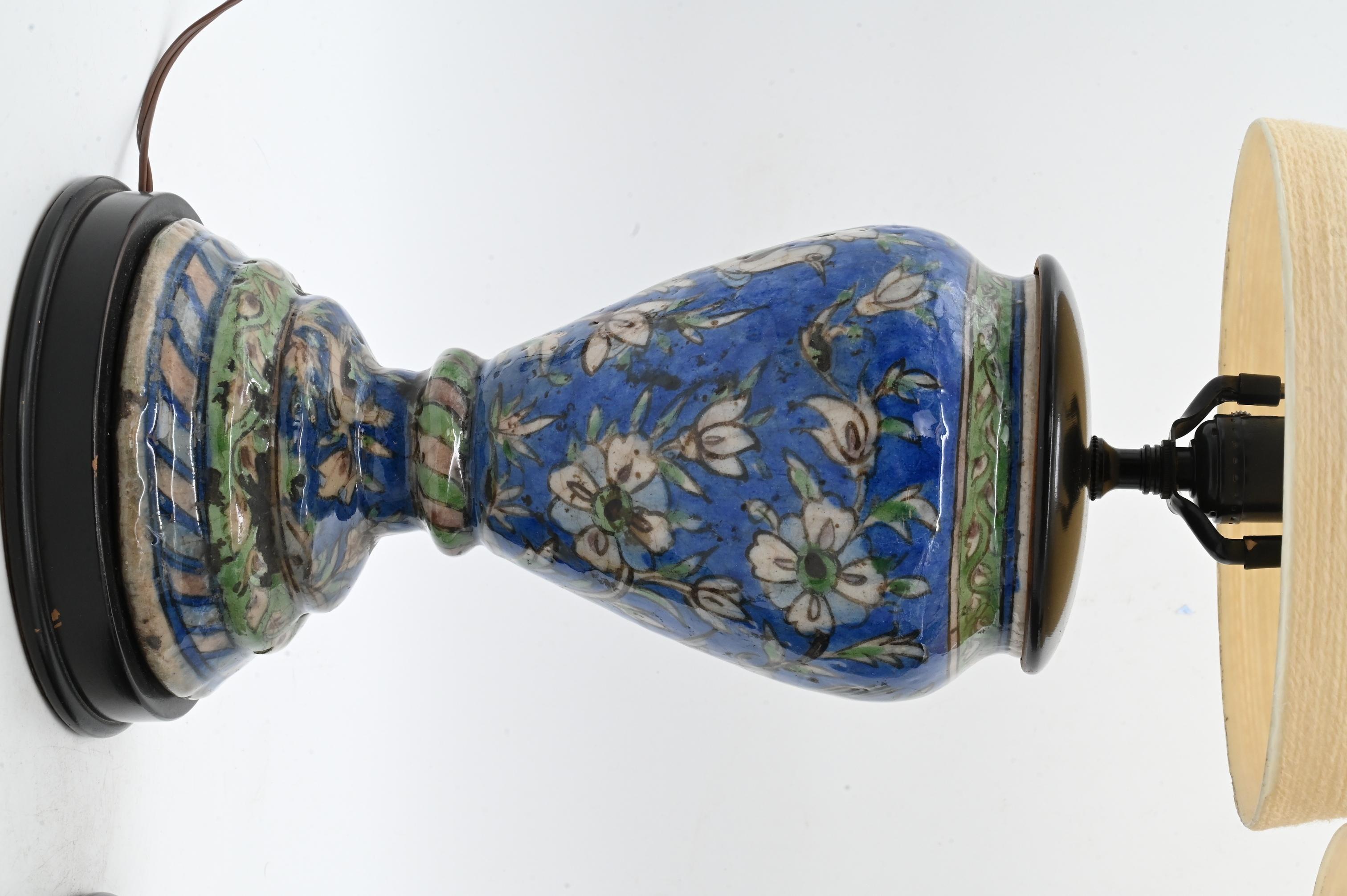 Lot 485: Pair of Iznik Style Pottery Vases Mounted as Lamps