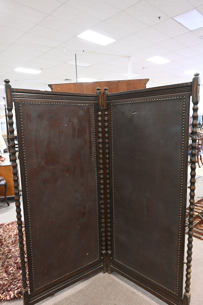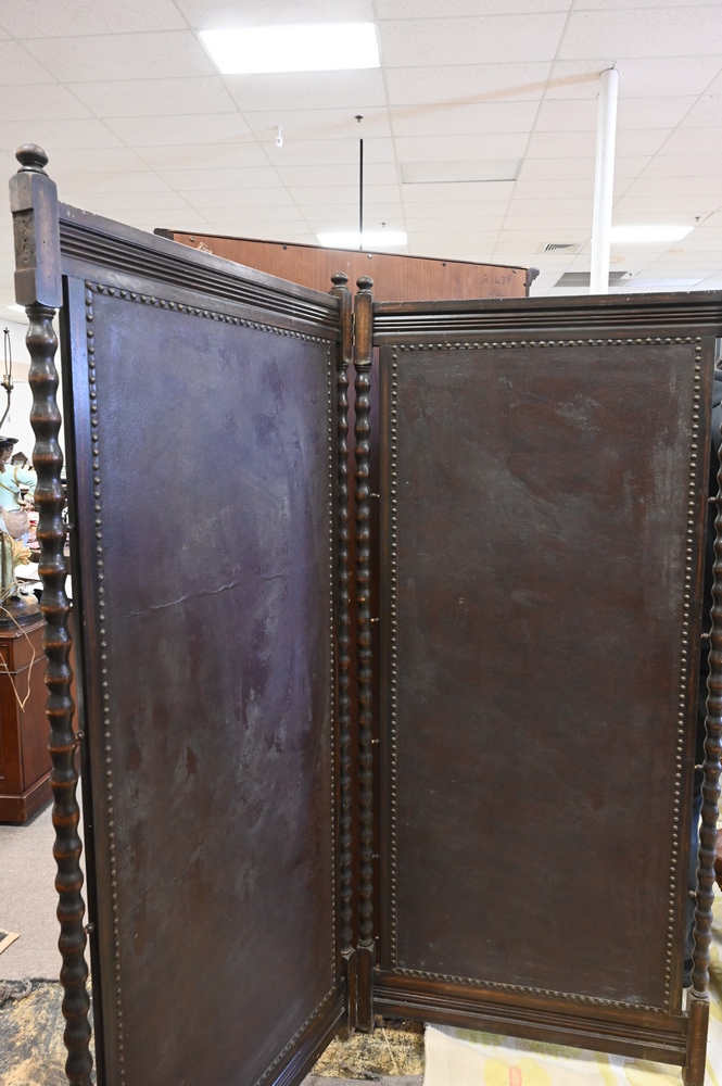 Victorian Four-Part Dressing Screen, having leather center, in two sections, height 73 inches, width 128 inches. Provenance: An estate from Redding, CT.