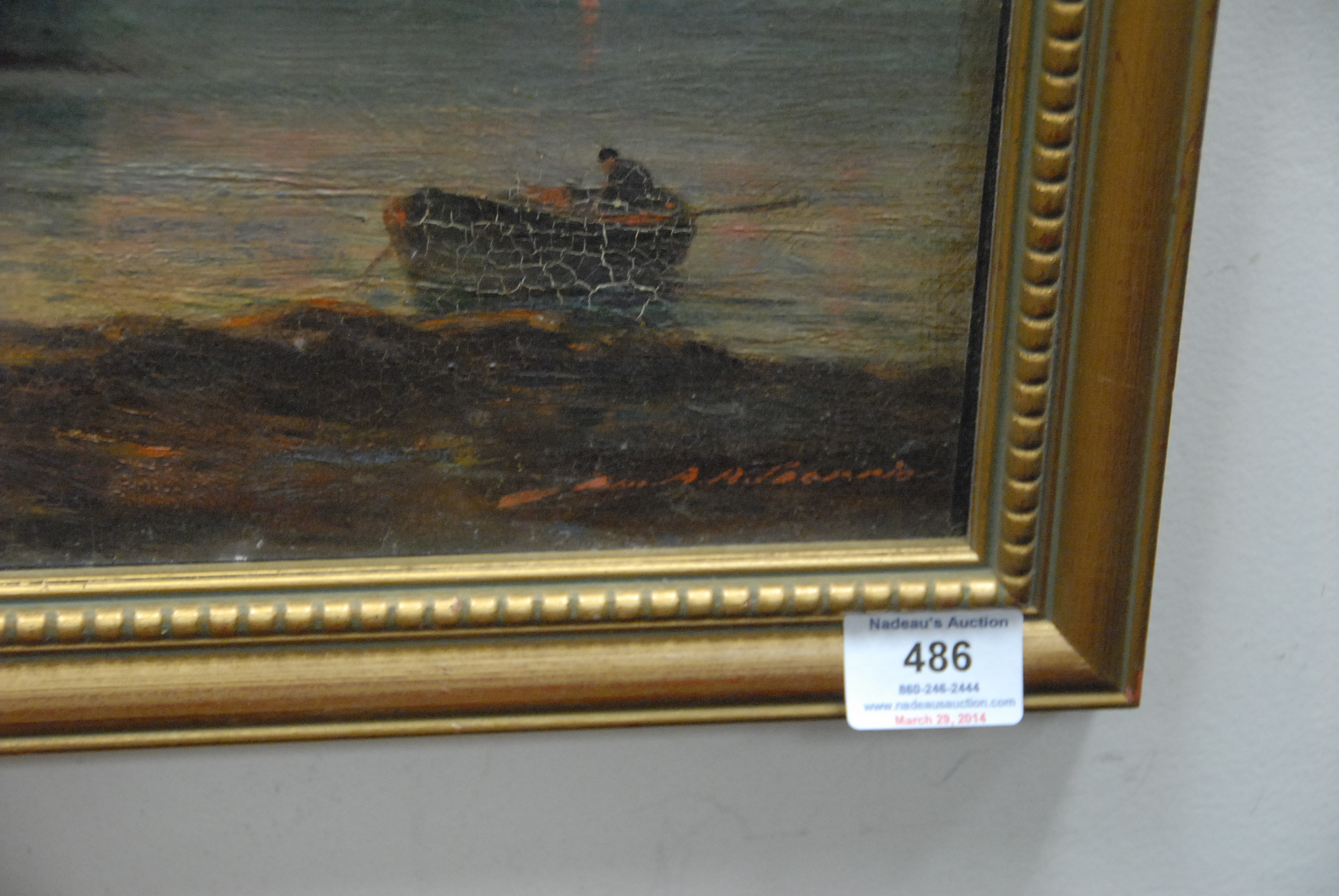 Lot 486: 19th Century CASTLE ON WATER’S EDGE oil on board signed lower right indistinctly 14 x 18 1/2