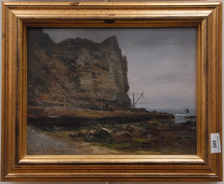 Lot 486: Gaston Marie Andtole Roullet 1847-1925 LECHAUDRON oil on board signed lower left Gaston Roullet 10 1/2 x 13 3/4