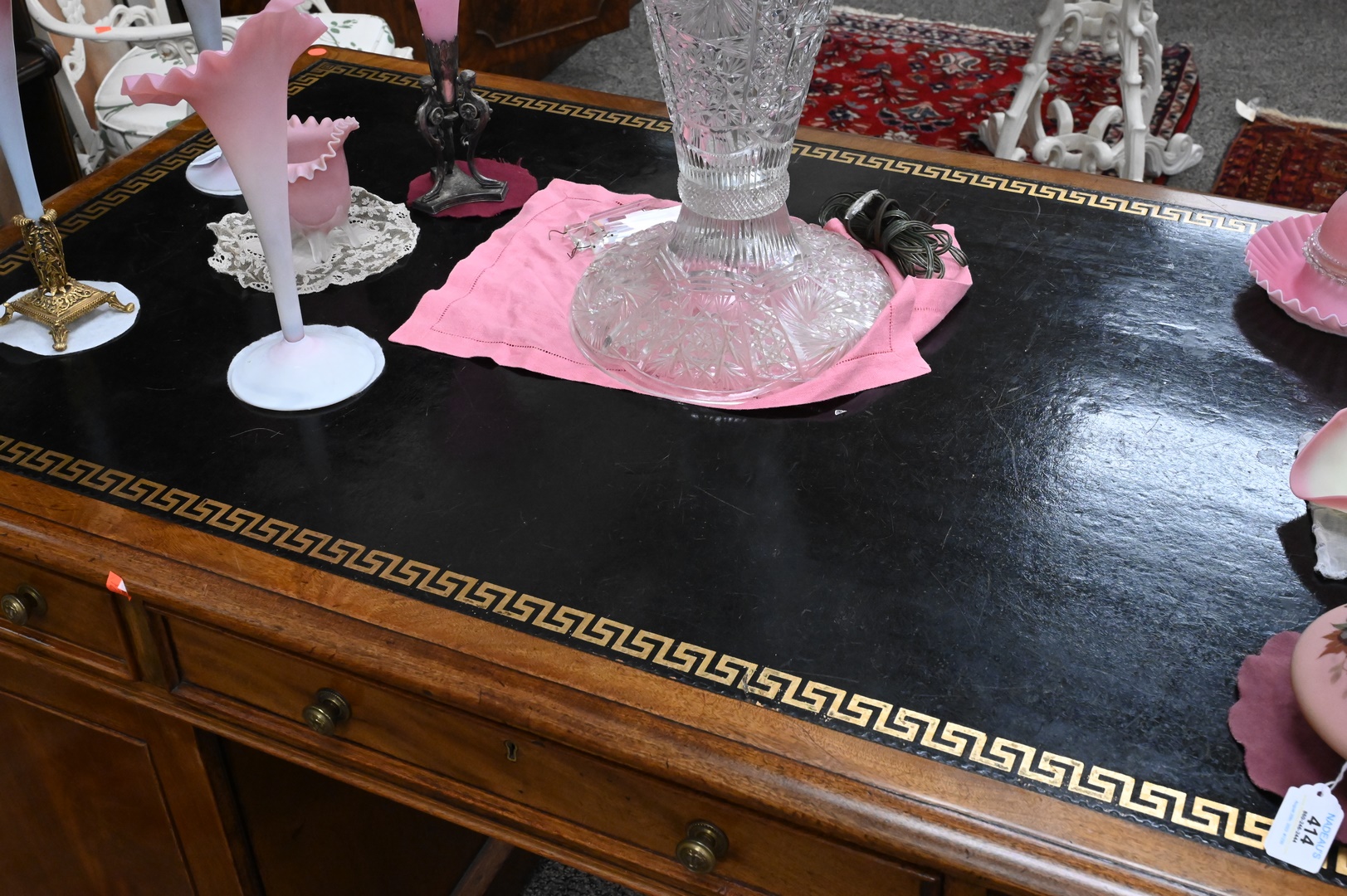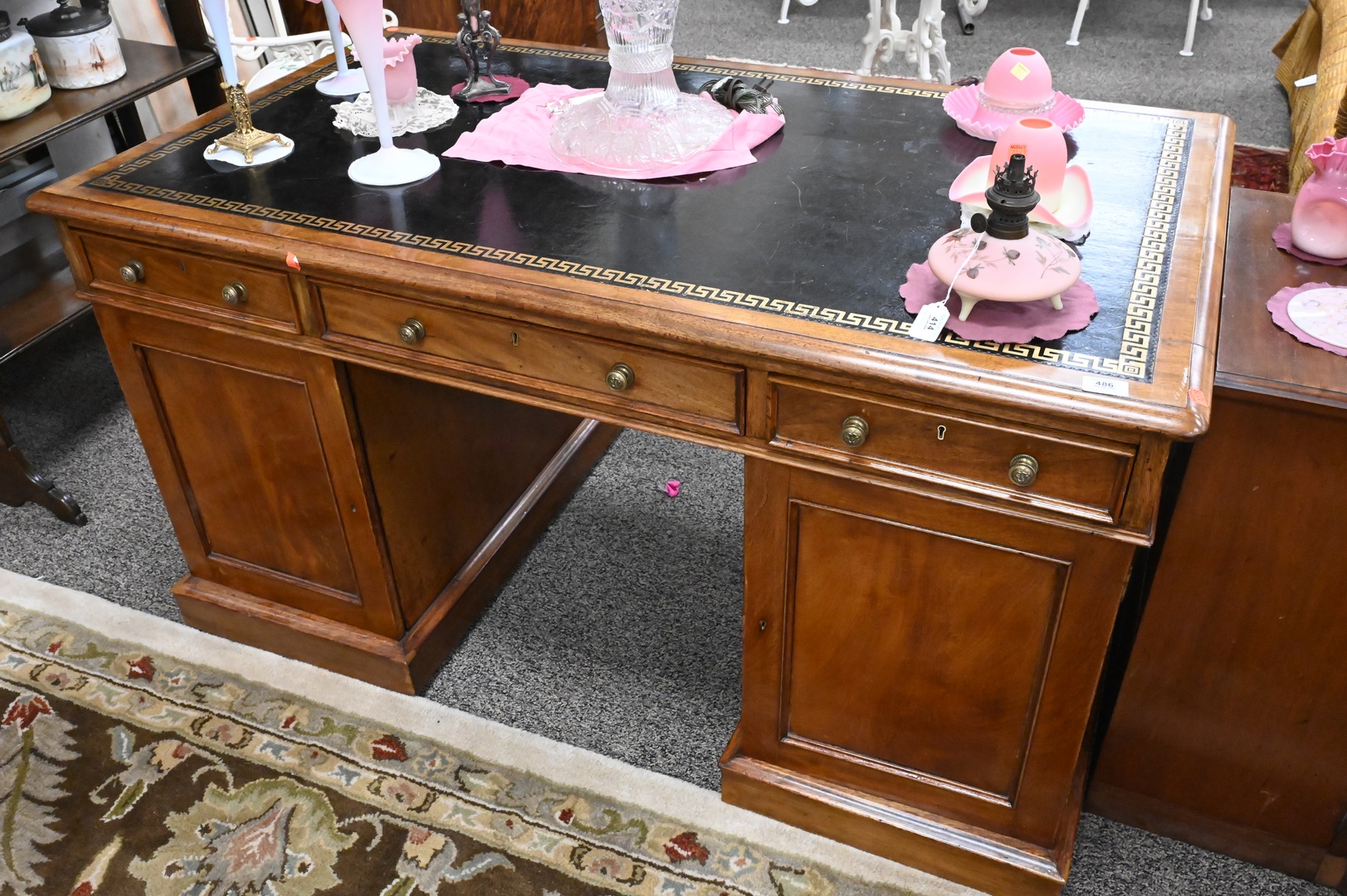 George IV Mahogany Kneehole Desk, having leather top, 19th century, height 29 inches, top 32″ x 54″.
